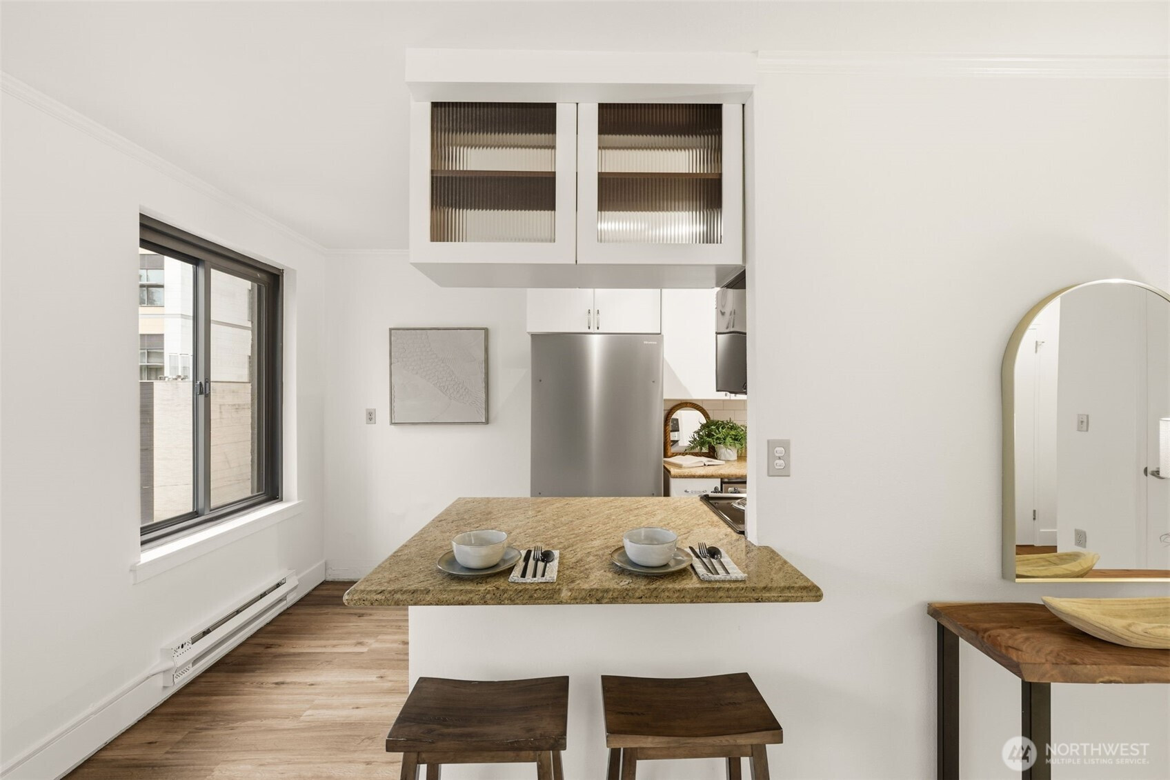 Meet your new sanctuary in The Decatur—Seattle’s classic mid-century tower by Space Needle architect John Graham Jr. Concrete + steel construction ensures a quiet, solid feel throughout. Residents enjoy access to a spectacular rooftop deck with panoramic city, mountain, & Sound views. The efficient layout features open living/kitchen area, generous closets, new fridge & dishwasher, granite counters, fresh paint, new carpet, LVP and reglazed tub. Building is pet-friendly w no rental cap, bike storage, laundry, new plumbing in 2019 & on-site manager. Vibrant First Hill places you steps from transit, Seattle U, world-class hospitals, Amazon Go, Whole Foods, great coffee, restaurants, bars, parks, live music & museums—city living at its finest!