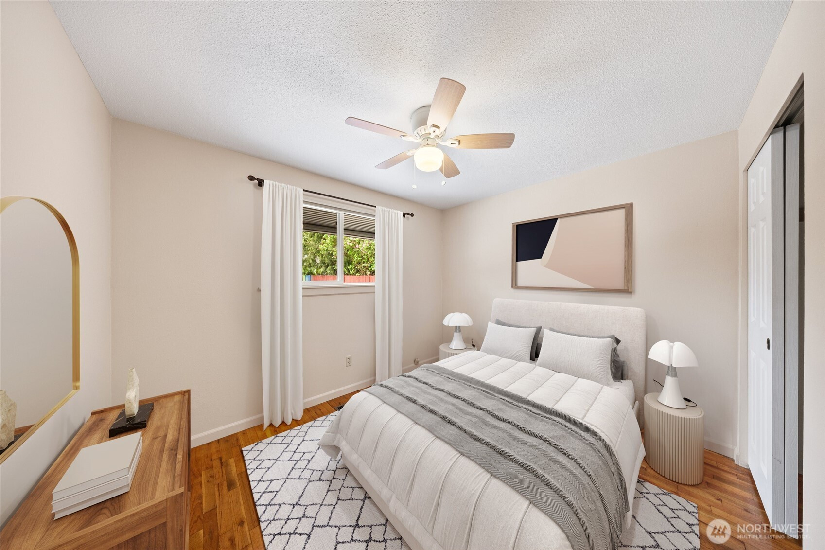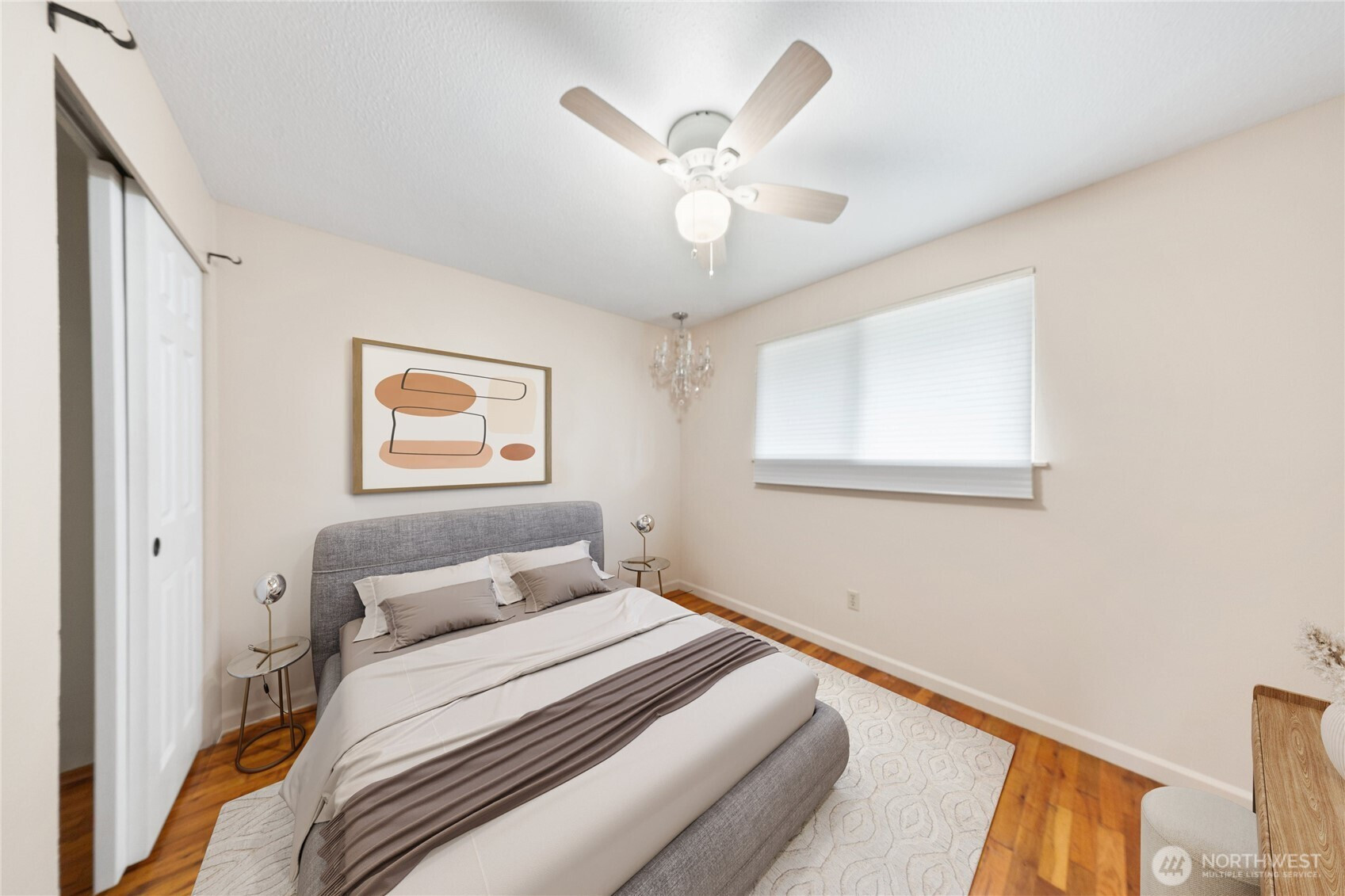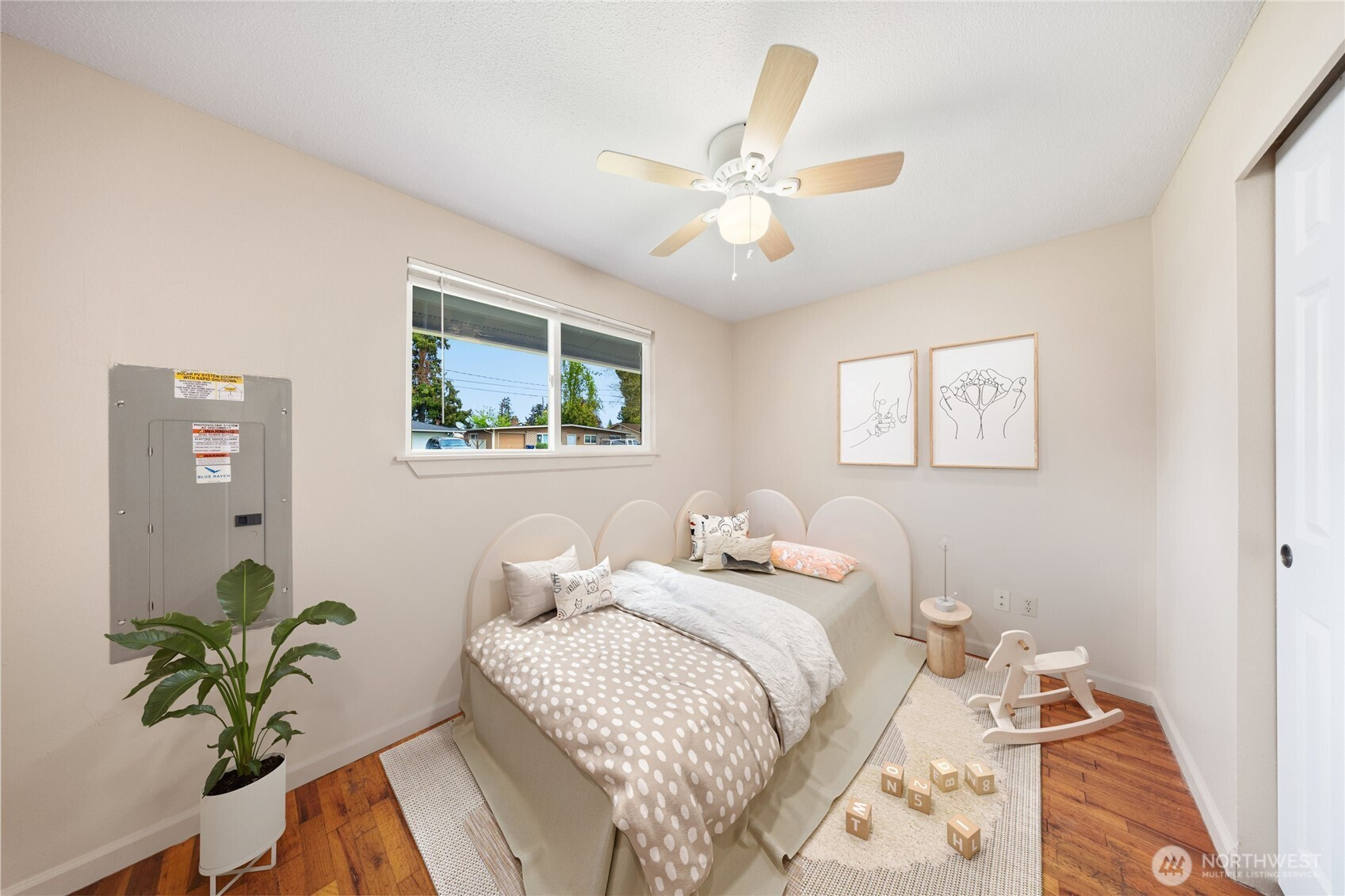 AMAZING RAMBLER HOME! Beautifully maintained 3 bed, 1 bath home with a bright, open living space, tucked away on a quiet dead-end street just steps from Cedar Lanes Park. The kitchen is thoughtfully laid out with newer stainless-steel appliances, brand new Quartz countertop, and great flow for everyday living. This home is packed with upgrades including a newer 50-year roof, vinyl windows, brand new electrical panel, security system, tile flooring, A/C, and a tankless water heater, plus new copper plumbing. Original hardwood floors that add warmth and character throughout. Energy-efficient SOLAR PANELS help keep electric bills close to nothing. Outside, enjoy a fully fenced backyard with a beautifully maintained and mature garden, covered patio, and a large shed perfect for relaxing, entertaining, or extra storage. Conveniently located near schools, parks, shopping, and with quick access to Hwy 18 & 167 for an easy commute. Must see!!!
