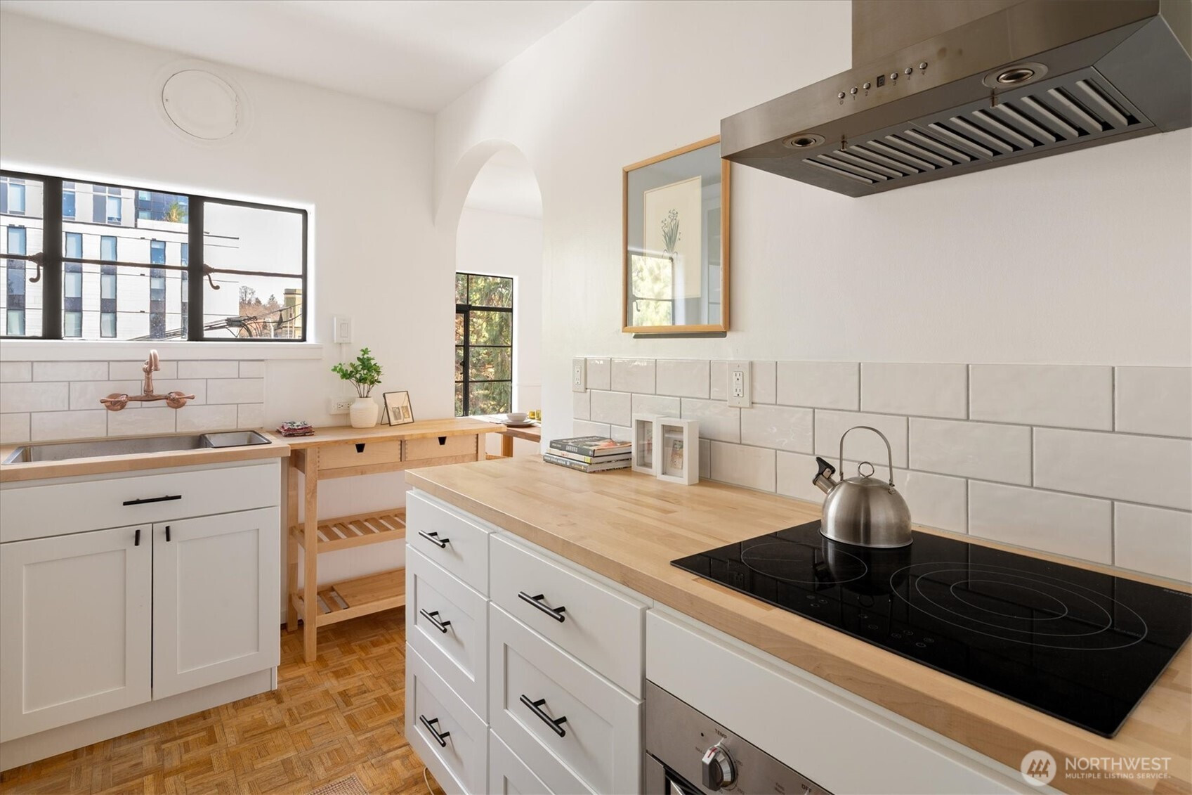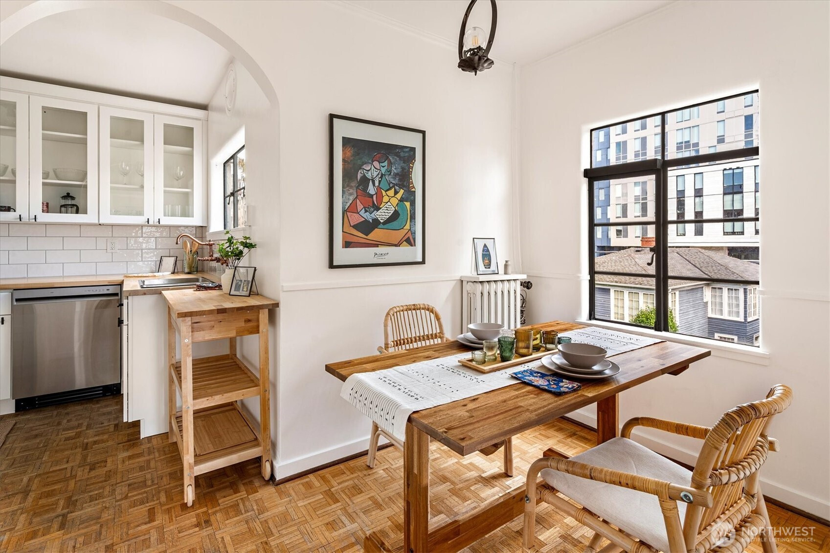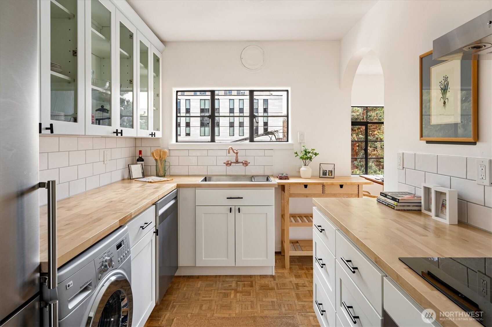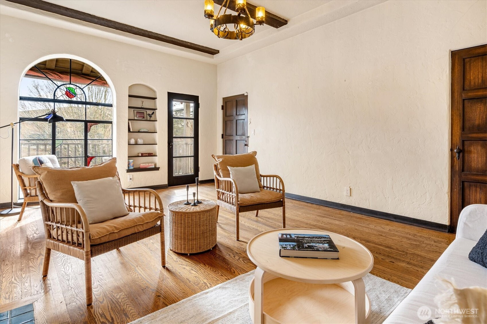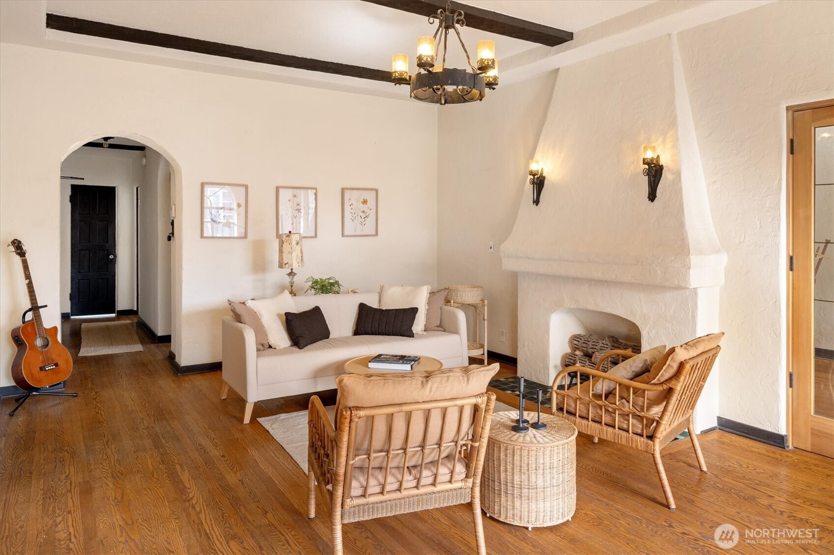 Timeless Spanish Colonial Revival architecture meets modern livability in this top-floor landmark residence. Coved ceilings, graceful archways, balconies, and garden surroundings showcase the craftsmanship of another era. This spacious two-bedroom home lives beautifully with a light-filled living room anchored by a striking fireplace. The updated kitchen blends seamlessly with the home’s historic character. A versatile front room easily functions as a study, dining room, or guest retreat, while the serene rear bedroom offers privacy near the bath. Rare top-floor, end unit provides abundant natural light and quiet. Long cherished by writers and artists—perhaps your next manuscript begins on the balcony. Includes rare small car garage.