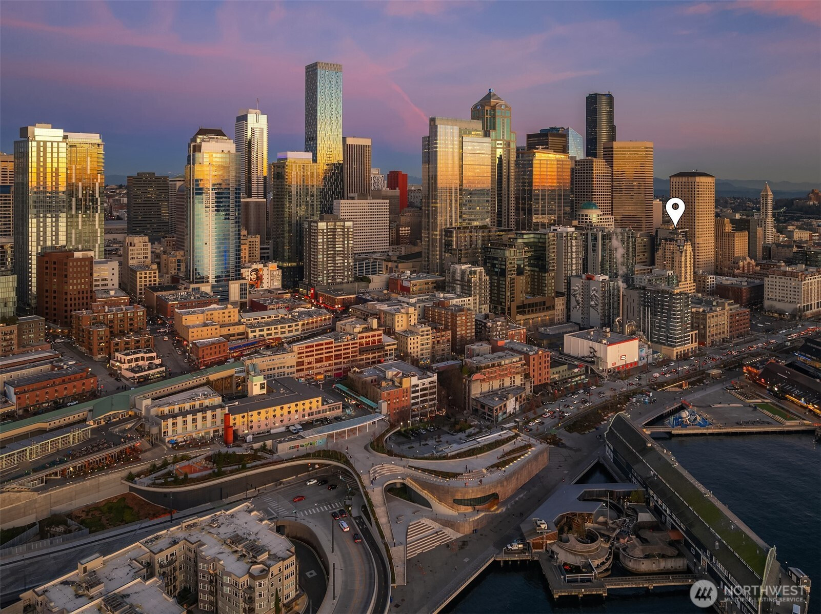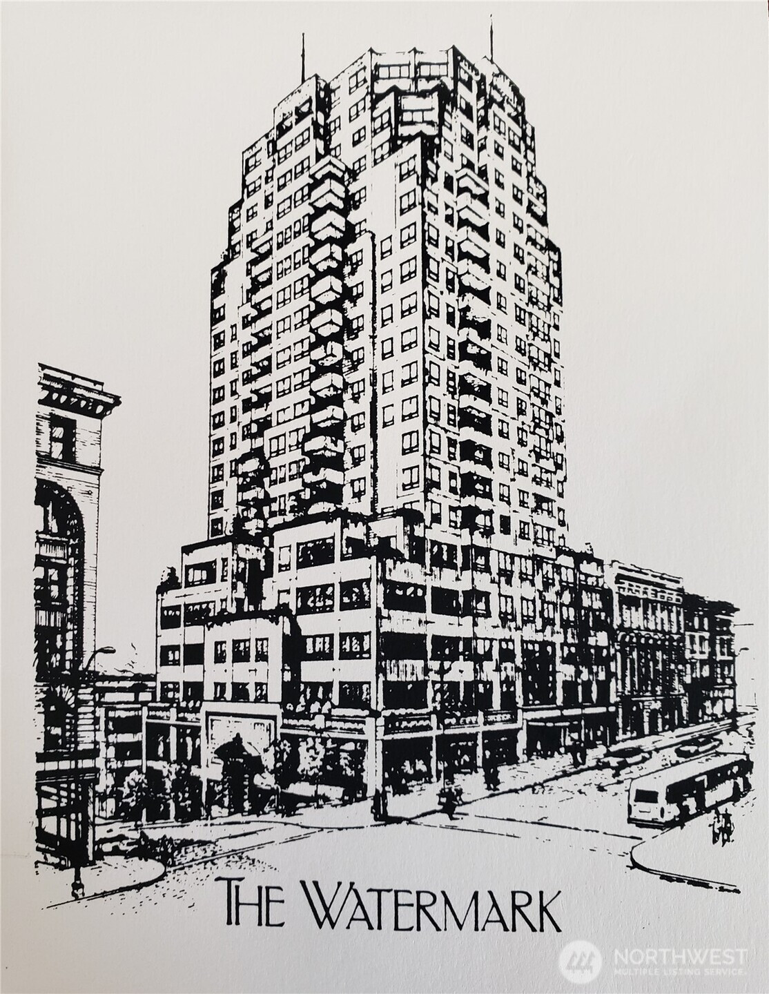 Sophisticated immaculate partial-view home in Seattle's Historic, highly sought after, West Edge Community. This pristine condo offers Dual-Aspect Balconies, Incredible city & partial Sound views. Light Bright & spacious w/ abundant windows, high ceilings, gracious dining & living spaces. Updated throughout, luxurious kitchen cabinets, cork flooring, full tile walk in shower, abundant storage and ample room to entertain. The Watermark Tower is a Classic Historic Boutique condo community with only 95 homes. A true sense of community with long time owners, No short term rentals or hotel atmosphere; the Watermark is your private sanctuary, exceptionally well-maintained offering secure lobby entrance, on site management, secure parking, gym, sauna, community room, library & roof top gathering spaces. All located just steps from the Waterfront, Market & Pioneer Square yet quiet & serene.