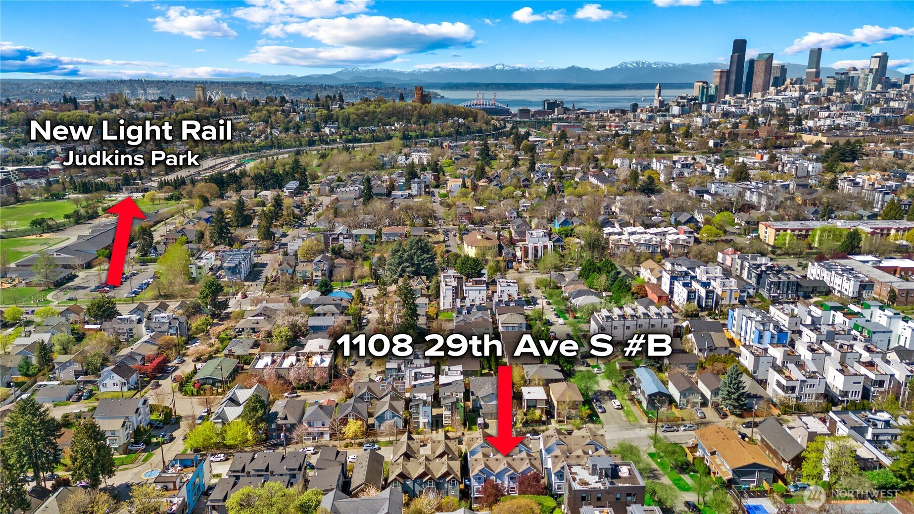 Just a short walk to the brand-new Judkins Park light rail station, offering easy access to the Eastside and downtown Seattle. 3-bedroom, 2.5-bath townhome with an attached garage and super functional layout. Main floor offers kitchen, living and dining space with a fully fenced backyard and patio—perfect for pets, gardening, or relaxing outdoors. Upstairs are 2 good size bedrooms w/full bathroom and laundry. The top floor primary bedroom features big vaulted ceilings and a western facing private deck with beautiful sunsets. Mini split system throughout offers year-round comfort for heating and AC. Brand new carpet, freshly painted inside and out. Commuter-friendly location and low maintenance, NO HOA.