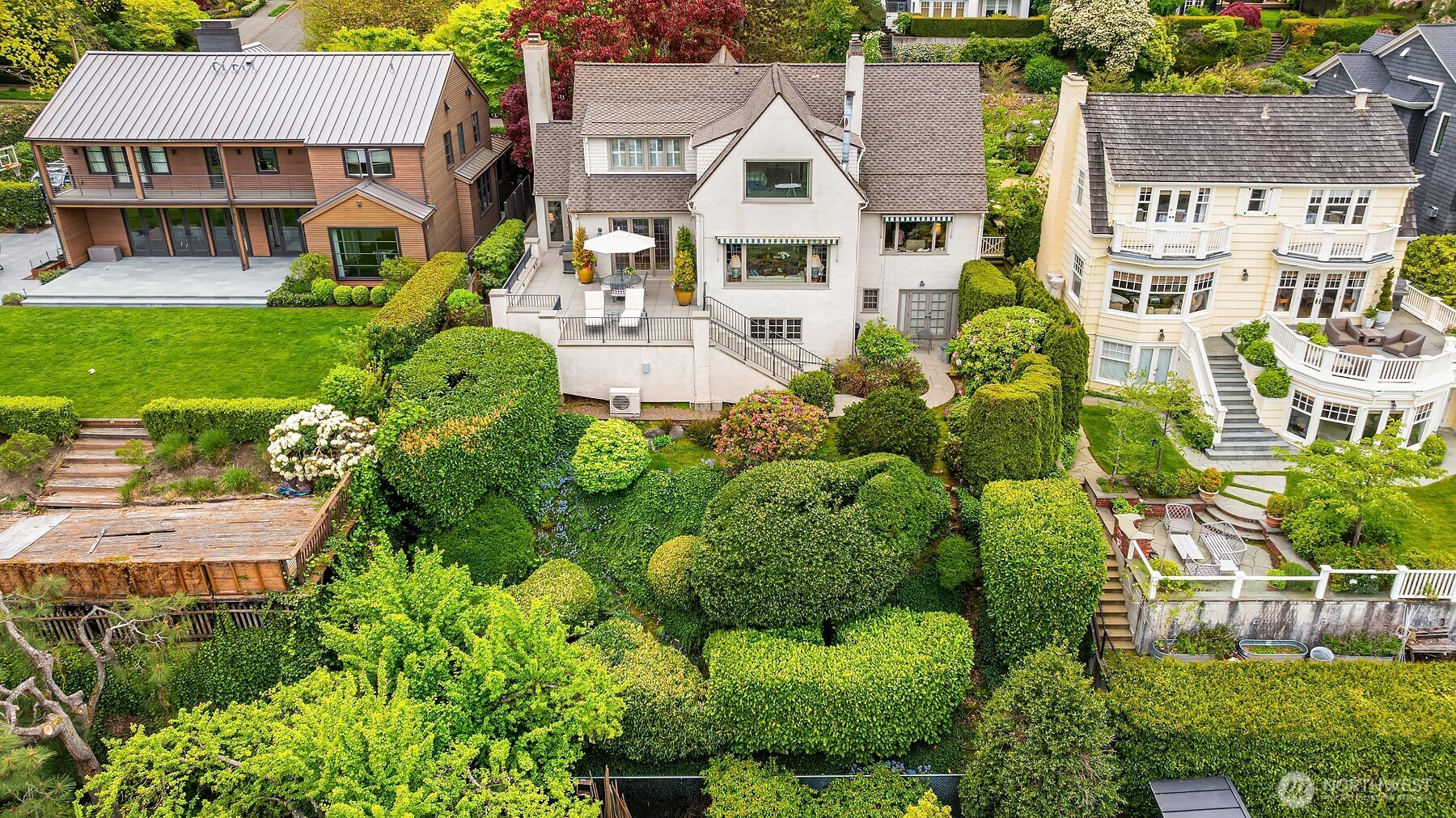 Offered for the first time in 53 years—an iconic Washington Park showpiece, where legacy, architectural presence & breathtaking, cinematic views harmonize! Set on one of the most desired streets in Washington Park, this striking residence channels the quiet glamour of the Hollywood Hills within one of Seattle’s most coveted locations. Spanning a beautifully proportioned 8,450-sq ft parcel, this beauty delivers an unforgettable arrival with unparalleled curb appeal—architectural, luminous & magnetic! Walls of glass frame sweeping vistas of Lake Washington, Mount Rainier & the Cascade Mountains, with light moving through the interiors from sunrise to sunset. Gracious living & dining spaces flow seamlessly for elevated entertaining. French doors open, creating a fluid indoor-outdoor experience, while a cozy den with a built-in bar offers a more intimate retreat. Upstairs, three bedrooms & two baths include a stunning primary suite—spacious & serene—anchored by a wood-burning stove & framed by panoramic, far-reaching, dazzling views. Below, a private guest suite is complemented by generous storage. A sun-drenched terrace invites effortless lounging, dining & golden-hour gatherings, all set against the ever-changing light over the water. Impeccably maintained & absolutely immaculate, with a two-car EV-ready garage & just moments from the Madison Park Village. An extraordinary offering—iconic, elevated, unforgettable.