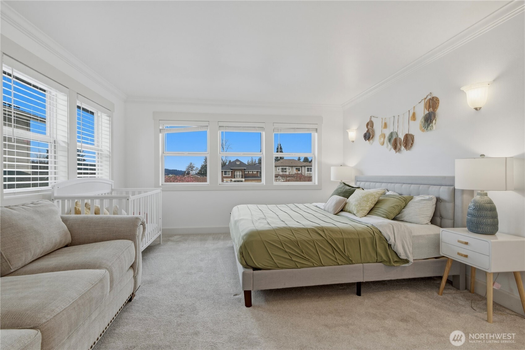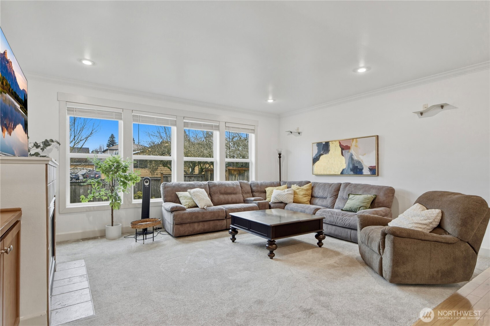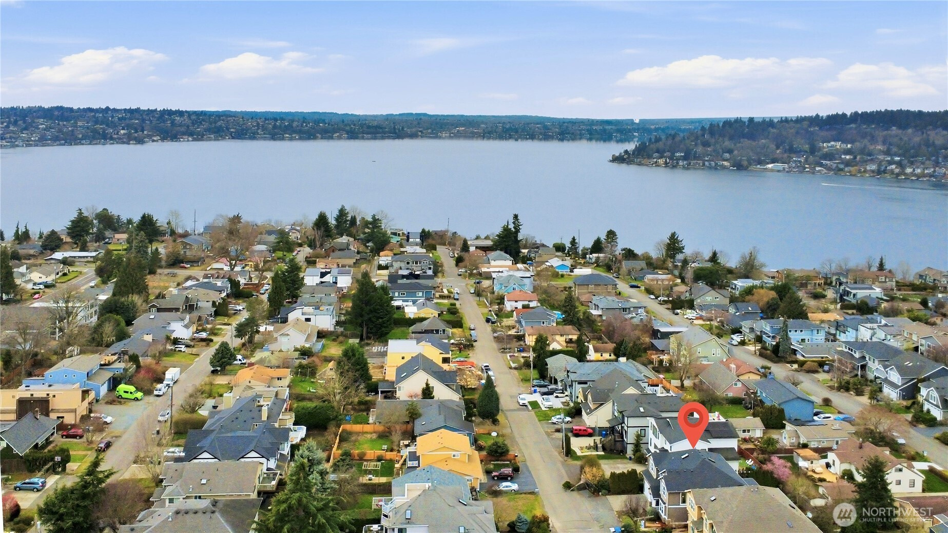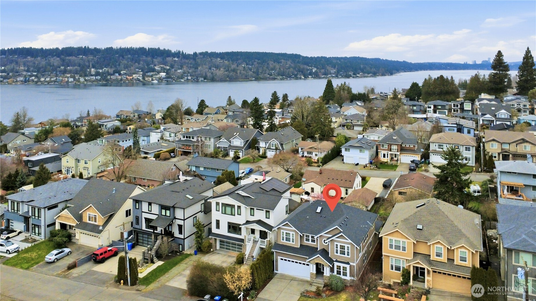 Bright and spacious 4-bedroom, 2.5-bath home featuring an open, light-filled layout with skylights, large windows, and partial Lake Washington views. The gourmet kitchen with island and breakfast nook opens to an inviting family room with a gas fireplace and built-ins, while the formal dining room with crown molding adds a refined touch. All bedrooms and the laundry room are located upstairs, including an oversized primary suite with a 5-piece bath and walk-in closet. Enjoy a fully fenced backyard with deck and patio, perfect for relaxing or entertaining. Brand-new 30-year roof and fresh interior paint. Quiet neighborhood with no HOA, zoned for a top-rated elementary school, and conveniently located minutes to Gene Coulon Beach Park, The Landing, and the Seahawks Training Center, with easy access to I-405 and transit to Seattle, Bellevue, and SeaTac.