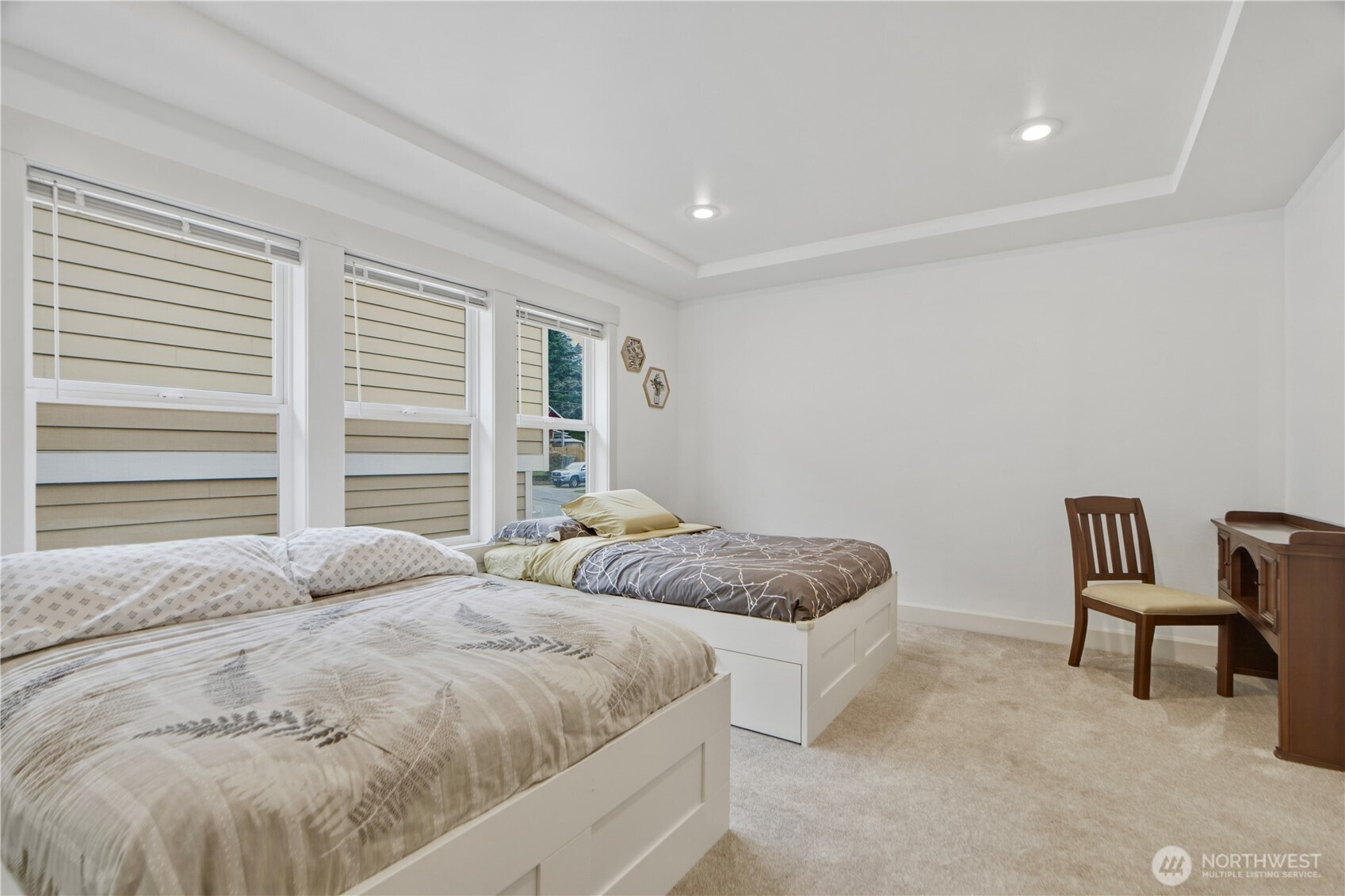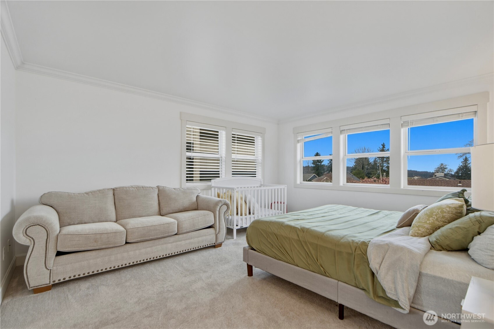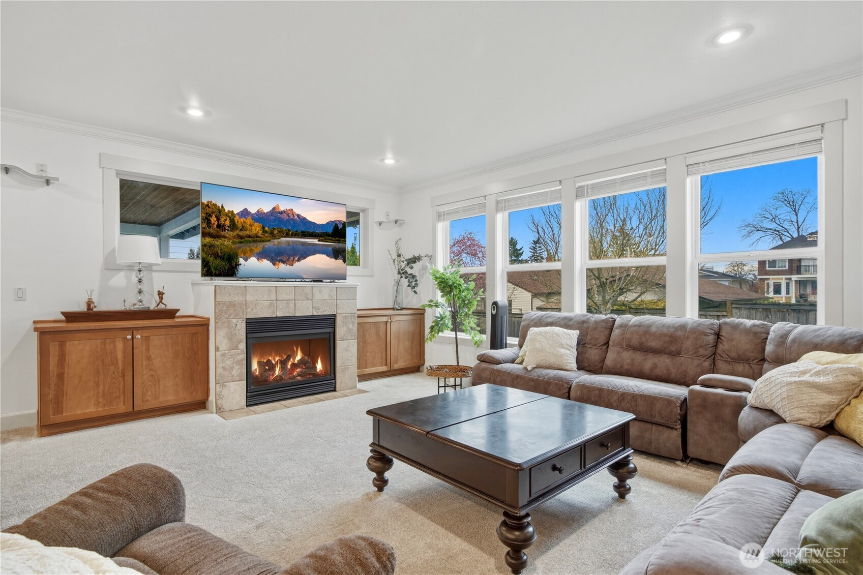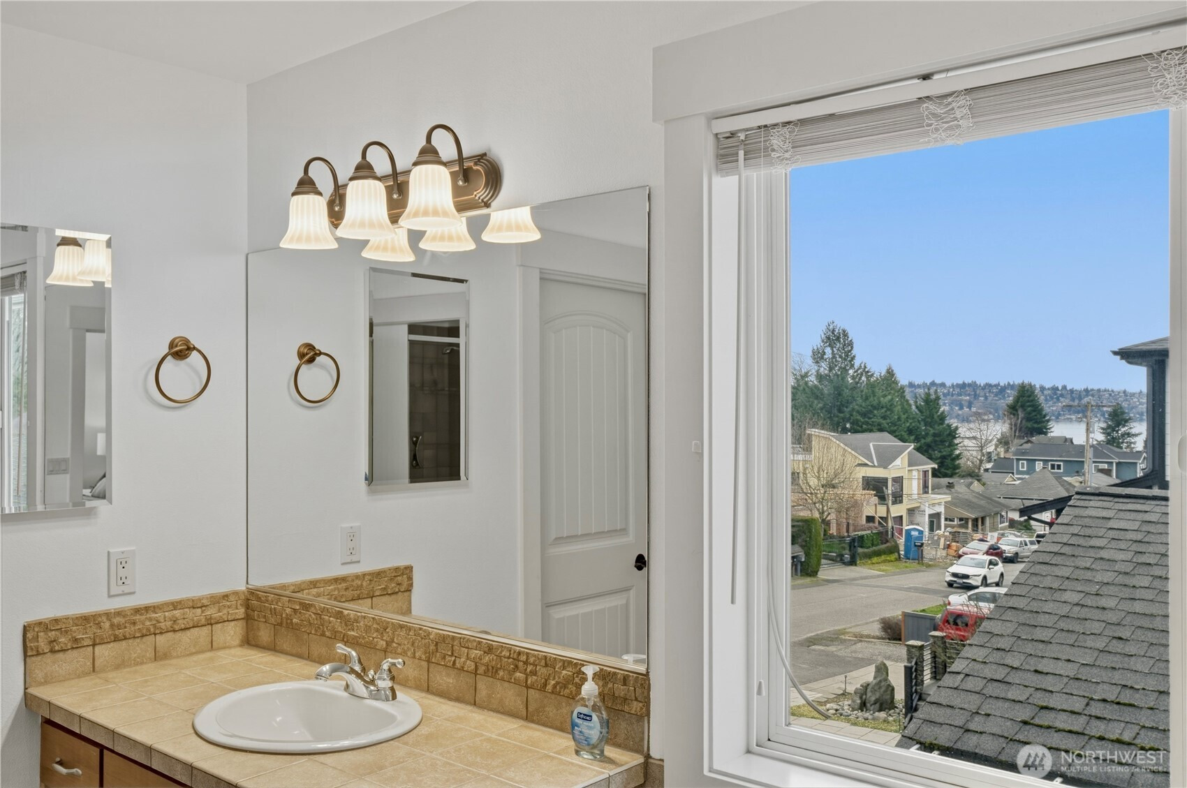 Bright and spacious 4-bedroom, 2.5-bath home featuring an open, light-filled layout with skylights, large windows, and partial Lake Washington views. The gourmet kitchen with island and breakfast nook opens to an inviting family room with a gas fireplace and built-ins, while the formal dining room with crown molding adds a refined touch. All bedrooms and the laundry room are located upstairs, including an oversized primary suite with a 5-piece bath and walk-in closet. Enjoy a fully fenced backyard with deck and patio, perfect for relaxing or entertaining. Brand-new 30-year roof and fresh interior paint. Quiet neighborhood with no HOA, zoned for a top-rated elementary school, and conveniently located minutes to Gene Coulon Beach Park, The Landing, and the Seahawks Training Center, with easy access to I-405 and transit to Seattle, Bellevue, and SeaTac.