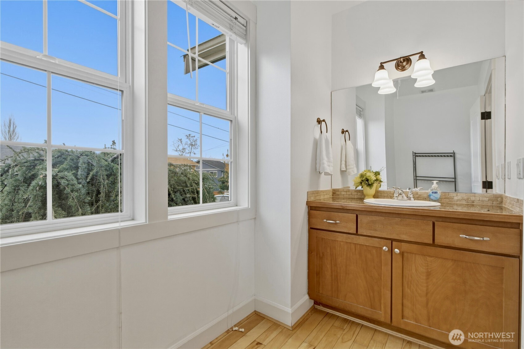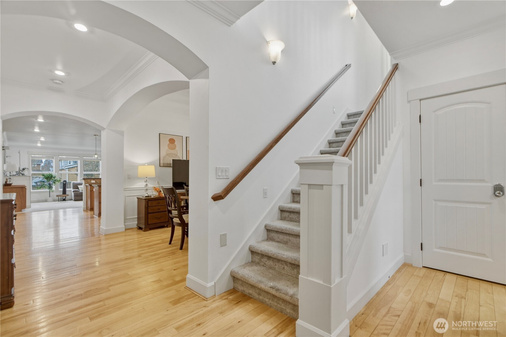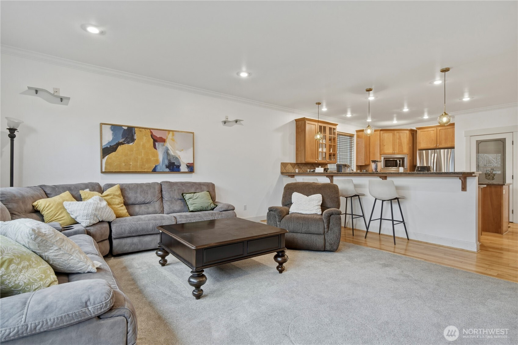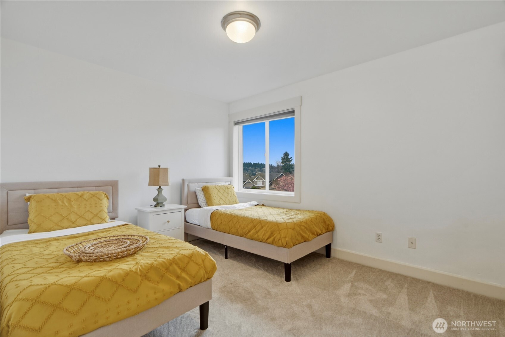 Bright and spacious 4-bedroom, 2.5-bath home featuring an open, light-filled layout with skylights, large windows, and partial Lake Washington views. The gourmet kitchen with island and breakfast nook opens to an inviting family room with a gas fireplace and built-ins, while the formal dining room with crown molding adds a refined touch. All bedrooms and the laundry room are located upstairs, including an oversized primary suite with a 5-piece bath and walk-in closet. Enjoy a fully fenced backyard with deck and patio, perfect for relaxing or entertaining. Brand-new 30-year roof and fresh interior paint. Quiet neighborhood with no HOA, zoned for a top-rated elementary school, and conveniently located minutes to Gene Coulon Beach Park, The Landing, and the Seahawks Training Center, with easy access to I-405 and transit to Seattle, Bellevue, and SeaTac.