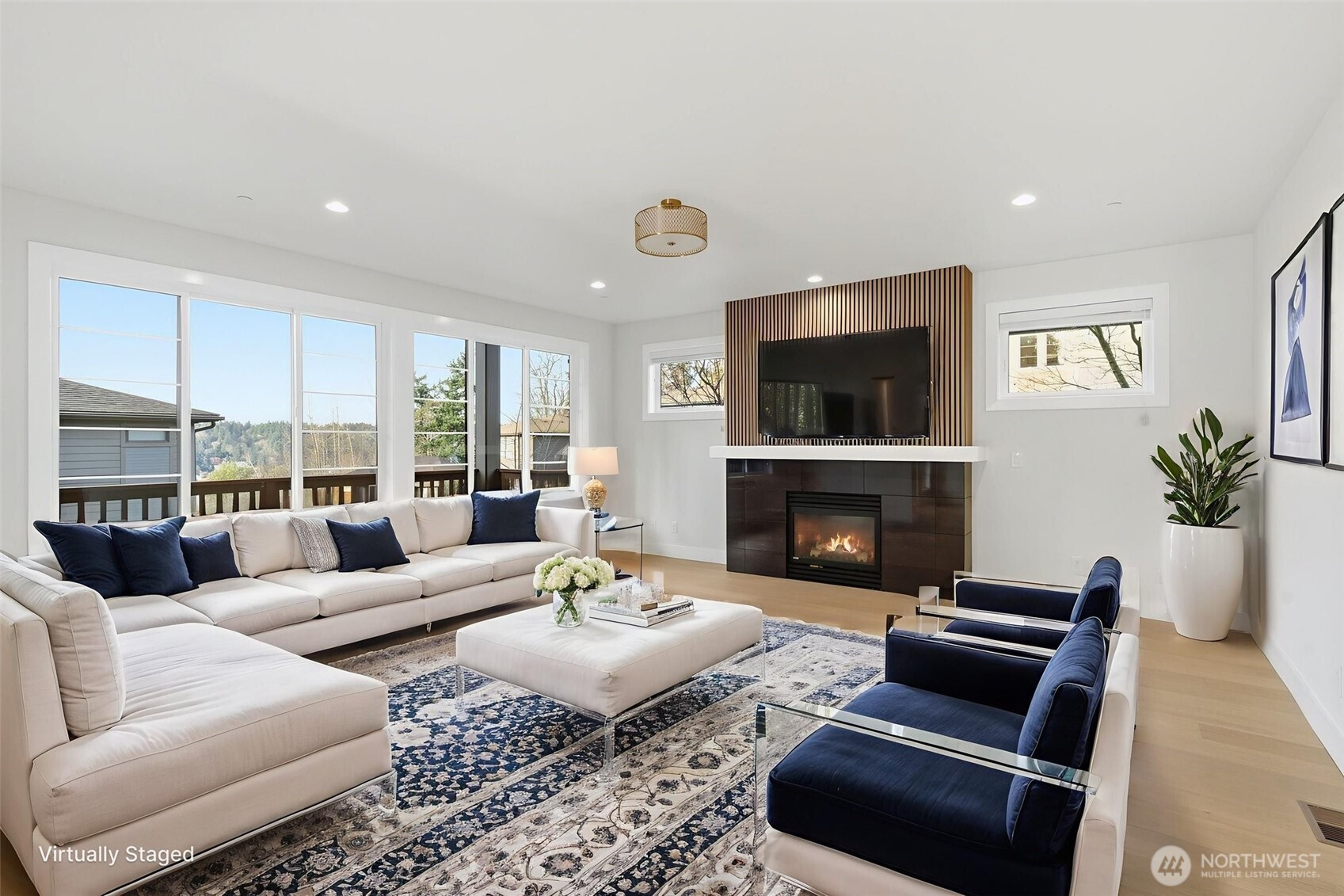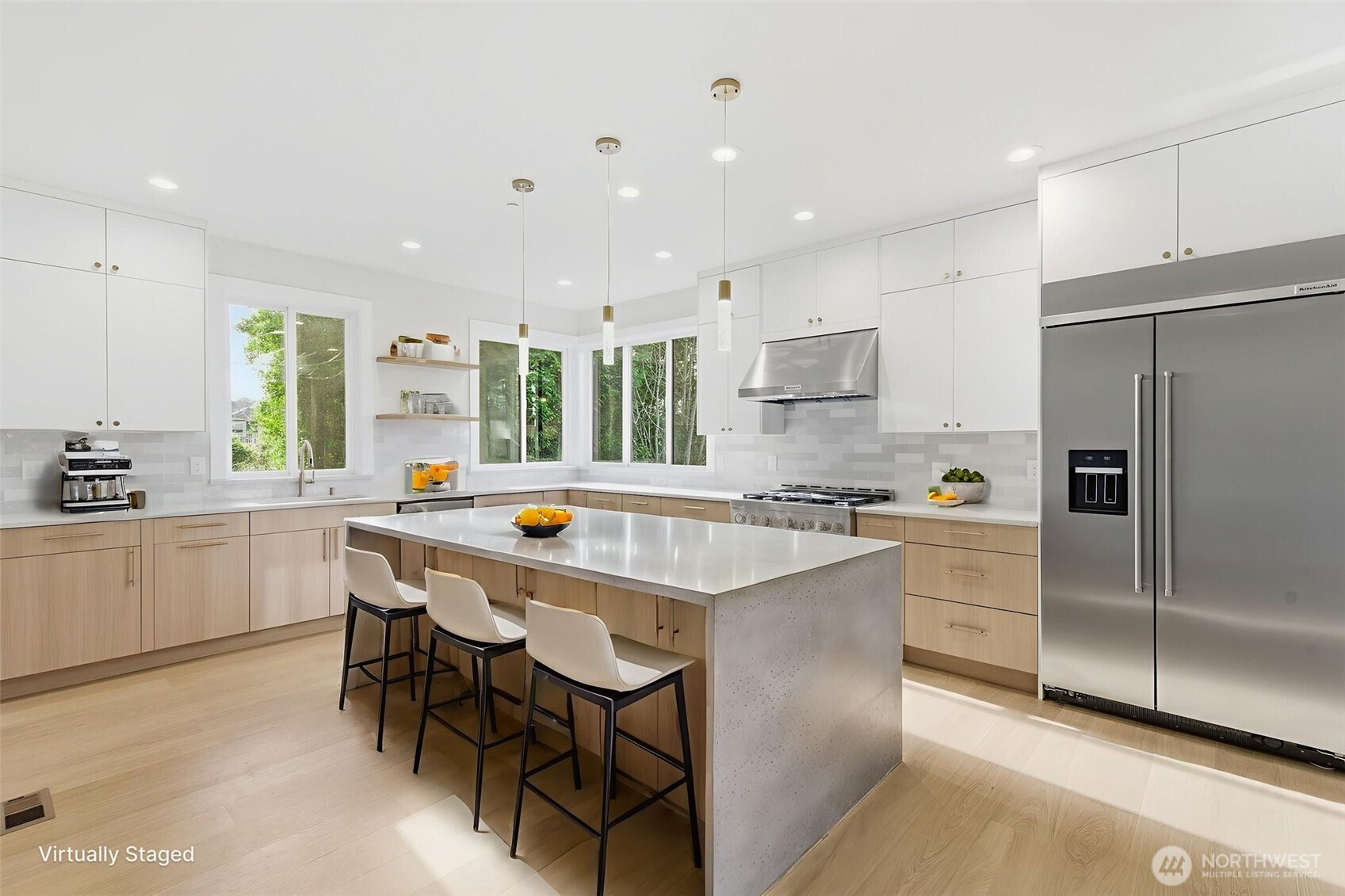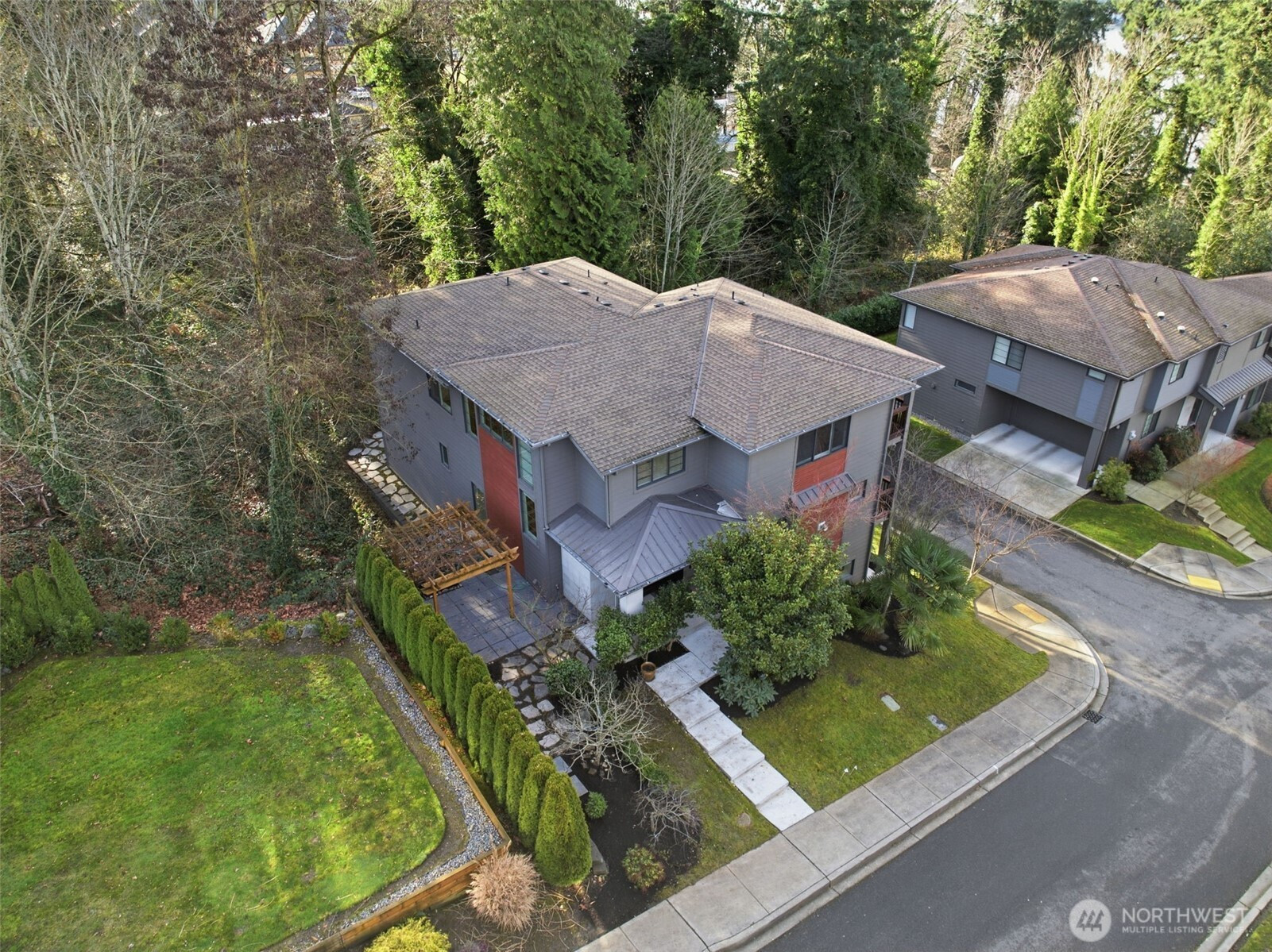 ABOUT THIS HOMEThe Home Features: Step into this newly updated Bellevue home that looks and feels like new. Nestled on a serene cul-de-sac, next to a lush open-space buffer with Lake Washington views; this gorgeous three-level residence combines comfort and elegance with generous space and flexibility for today's lifestyle.From the grand entrance to the bright, open-concept main level, you'll love the rejuvenated interior with a green belt and the lake as its backdrop. The spacious living room features a newly painted interior, engineered oak hardwood floors and all-new light fixtures. Fully reimagined kitchen with brand-new cabinetry, quartz countertops, and all-new high-end appliances. The dining room's sliding door leads to a spacious lake-view deck, ideal for outdoor gathering. A dedicated office provides a quiet, functional workspace.A bright and charming loft, suitable for a sitting area and additional living space, leads to the upper level. With lake views, the primary suite includes a walk-in closet and a fully remodeled 5-piece bathroom. Two additional bedrooms are well-sized, quiet, and comfortable, with new carpet throughout. Designed for multigenerational living or added flexibility, the lower level features a newly added 2nd kitchen and laundry, making it ideal for guests, or extra rental income. Oversized garage with epoxy-finished floors and ample storage. Conveniently located with easy access to major highways, DT Bellevue