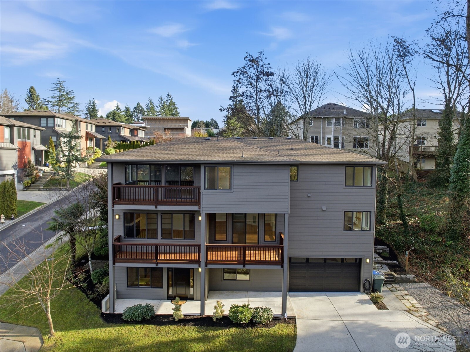 Step into this newly updated Bellevue home that looks and feels like new. Nestled on a serene cul-de-sac, next to a lush open-space buffer with Lake Washington views; this gorgeous three-level residence combines comfort and elegance with generous space and flexibility for today's lifestyle. From the grand entrance to the bright, open-concept main level, you'll love the rejuvenated interior with a green belt and the lake as its backdrop. The spacious living room features a newly painted interior, engineered oak hardwood floors and all-new light fixtures. Fully reimagined kitchen with brand-new cabinetry, quartz countertops, and all-new high-end appliances. The dining room's sliding door leads to a spacious lake-view deck, ideal for outdoor gathering. A dedicated office provides a quiet, functional workspace.A bright and charming loft, suitable for a sitting area and additional living space, leads to the upper level. With lake views, the primary suite includes a walk-in closet and a fully remodeled 5-piece bathroom. Two additional bedrooms are well-sized, quiet, and comfortable, with new carpet throughout. Designed for multigenerational living or added flexibility, the lower level features a newly added 2nd kitchen and laundry, making it ideal for extended family, guests, or extra rental income. Oversized garage with epoxy-finished floors and ample storage. Conveniently located with easy access to major highways, DT Bellevue