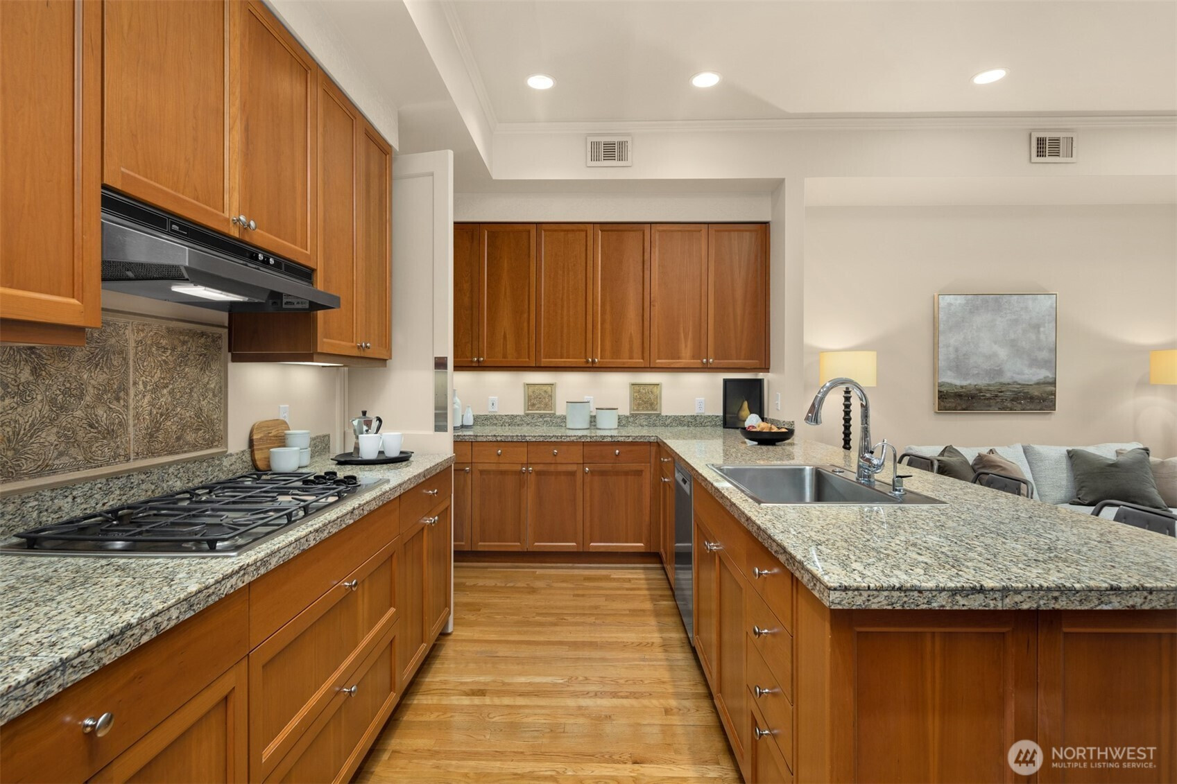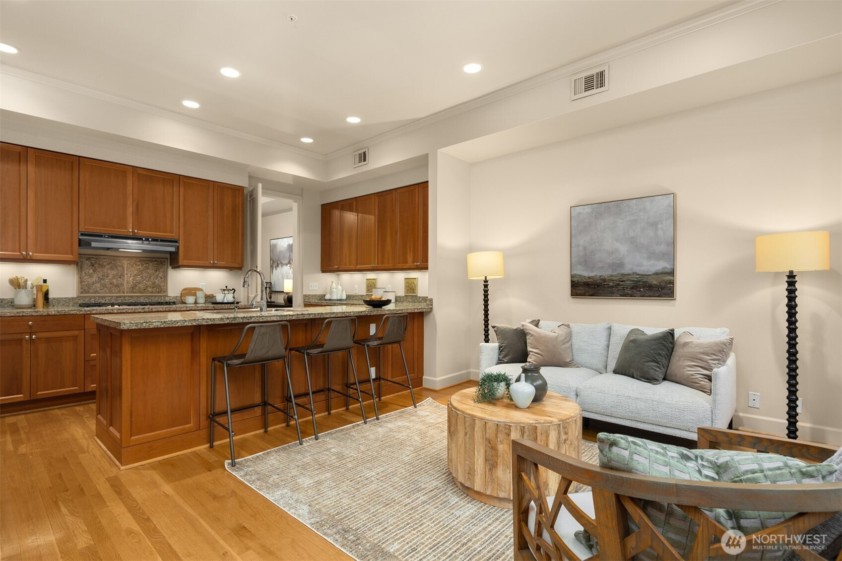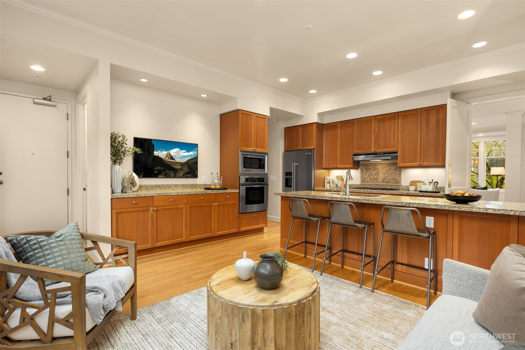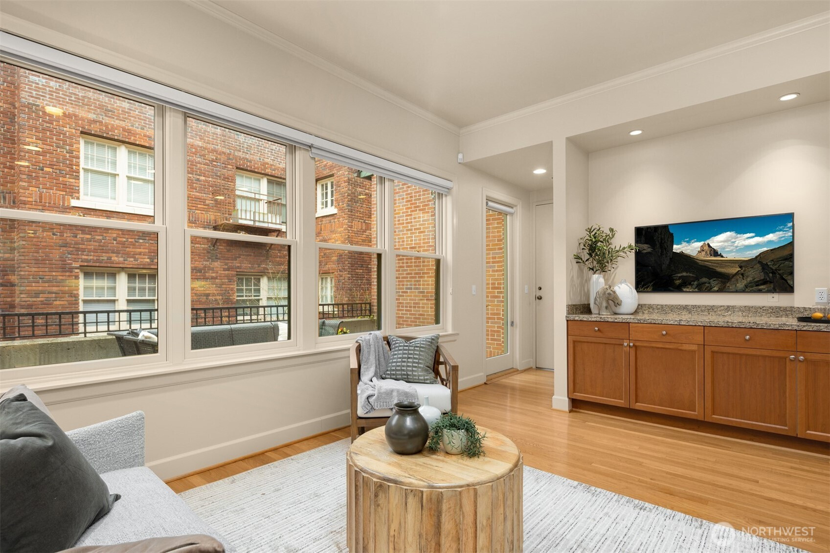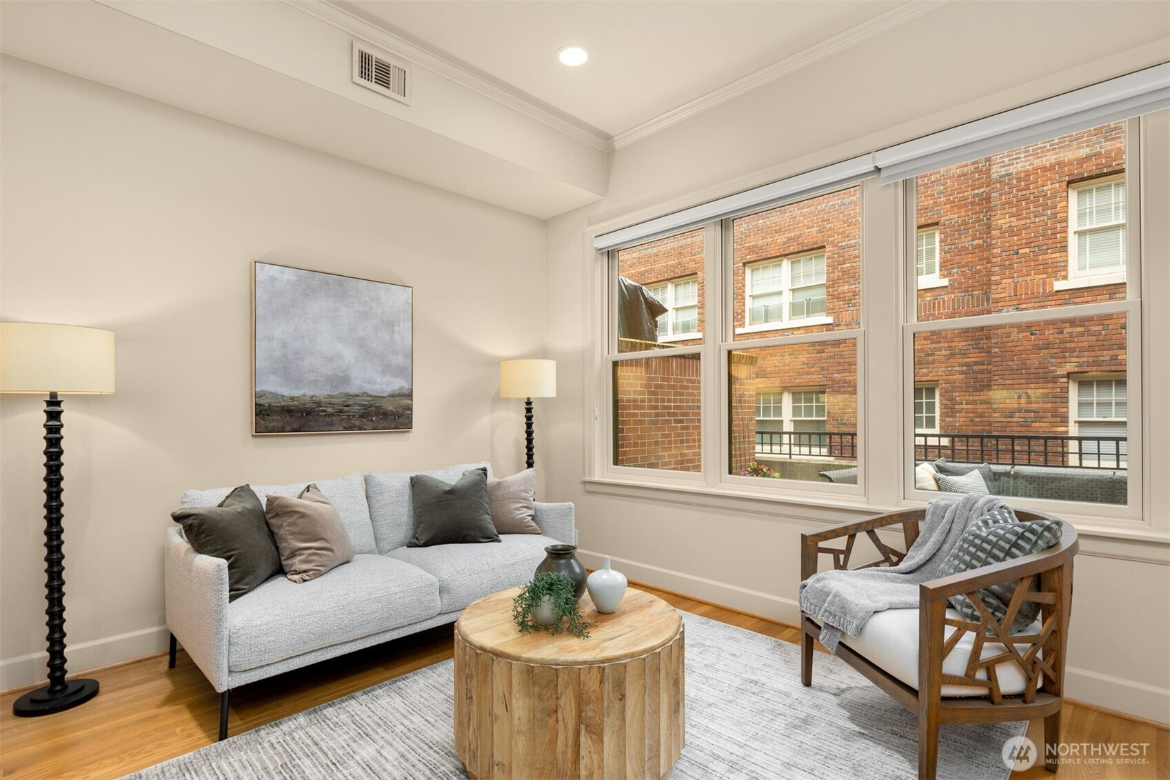 Experience true elegance at The Victoria; an award-winning townhome designed by Mithun Architects. Classic brick styling & superior build quality make this building one of the most coveted properties in the city; located just one block from the iconic Kerry Park. Ageless brownstone design set over two floors. The main floor sets the tone for modern living; combining traditional style cues with comfortable open spaces. The living & dining rooms are dominated by lofty ceilings, sash windows and refined woodwork to create an atmosphere of elegant grandeur. At the rear, the kitchen & family room offers a cozy space creating a convivial flow between cooking & entertaining. Meal prep is effortless with a gas cooktop, wall oven and generous cabinetry for superior storage. Beyond, a laundry/boot room & guest powder room complete the floor. From here, doors open to a private terrace offering a secure space to relax and enjoy the warm summer months, or stay indoors comfortably with central air conditioning. The upper floor offers 3 generous bedrooms, 2 bathrooms & tons of closets including a primary suite with romantic gas fireplace, fully-organized walk-in closet & a graciously-styled bath with soaking tub, walk-in shower and dual vanity. Convenient lifestyle with 2-car garage parking, gated private entry & on-site property manager. Comstock Street lies at the heart of the Queen Anne commercial district, moments from boutiques & cafés; all within easy reach of downtown Seattle.