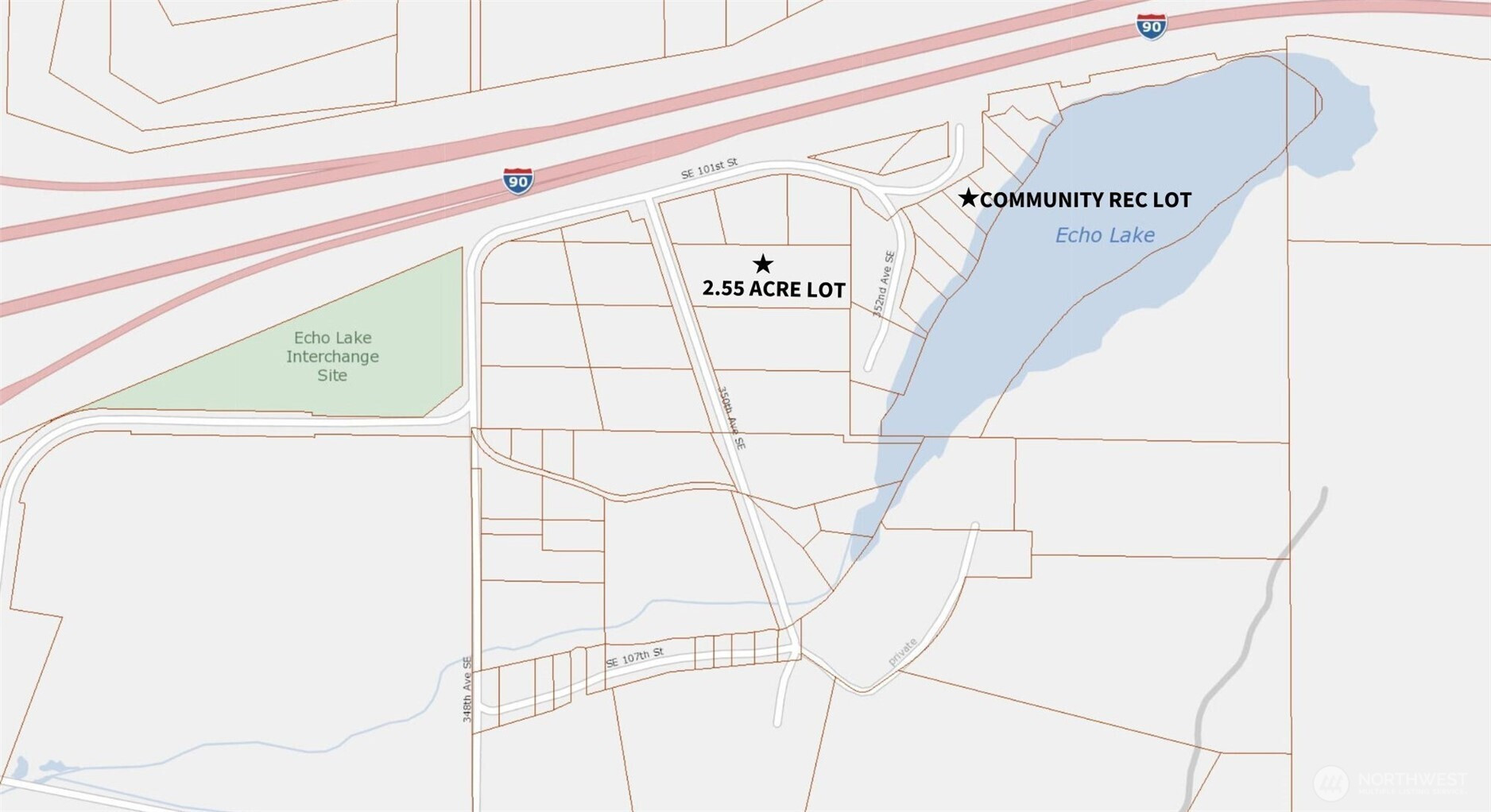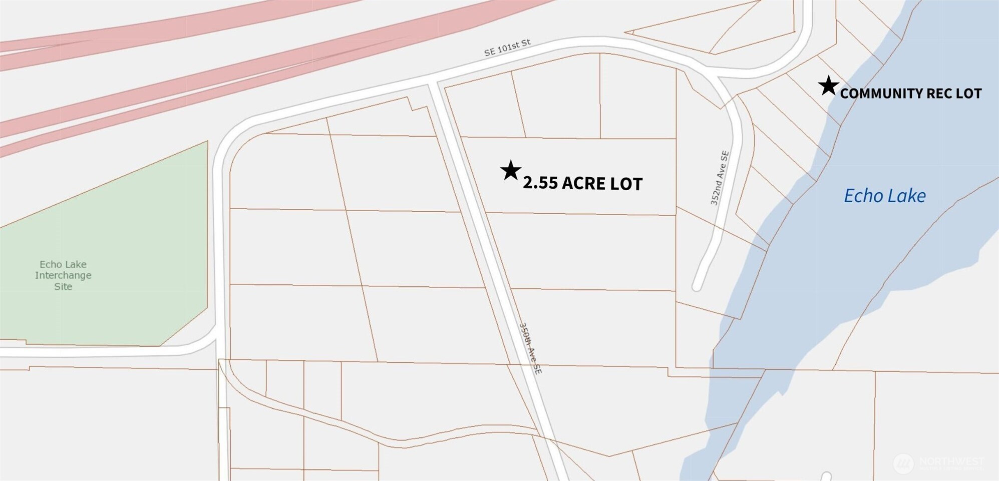 Build your dream home in Echo Lake Estates-a private enclave of luxury homes with deeded lake access. 2.5-acre lot features a large, flat building area with no critical areas-CAD approved. Well already drilled & supports a main home plus detached ADU, if desired. Power at street. Septic test holes are in & 4-bedroom septic design is submitted to County. Survey complete. Sunrises over Cascades & sunsets over Tiger Mountain. Just 1/4 mile to private lakefront rec lot for swimming, kayaking, & fishing. No HOA. Call co-listing agent Cliff Mull with questions or to walk the lot with you (go for a boat ride). New I-90 diverging diamond is completed and Echo Lake is now the best spot for easy on/off access to I-90. Don't forget to check out the video in the virtual tour link for a guided tour of Echo Lake and to learn more about this charming community!