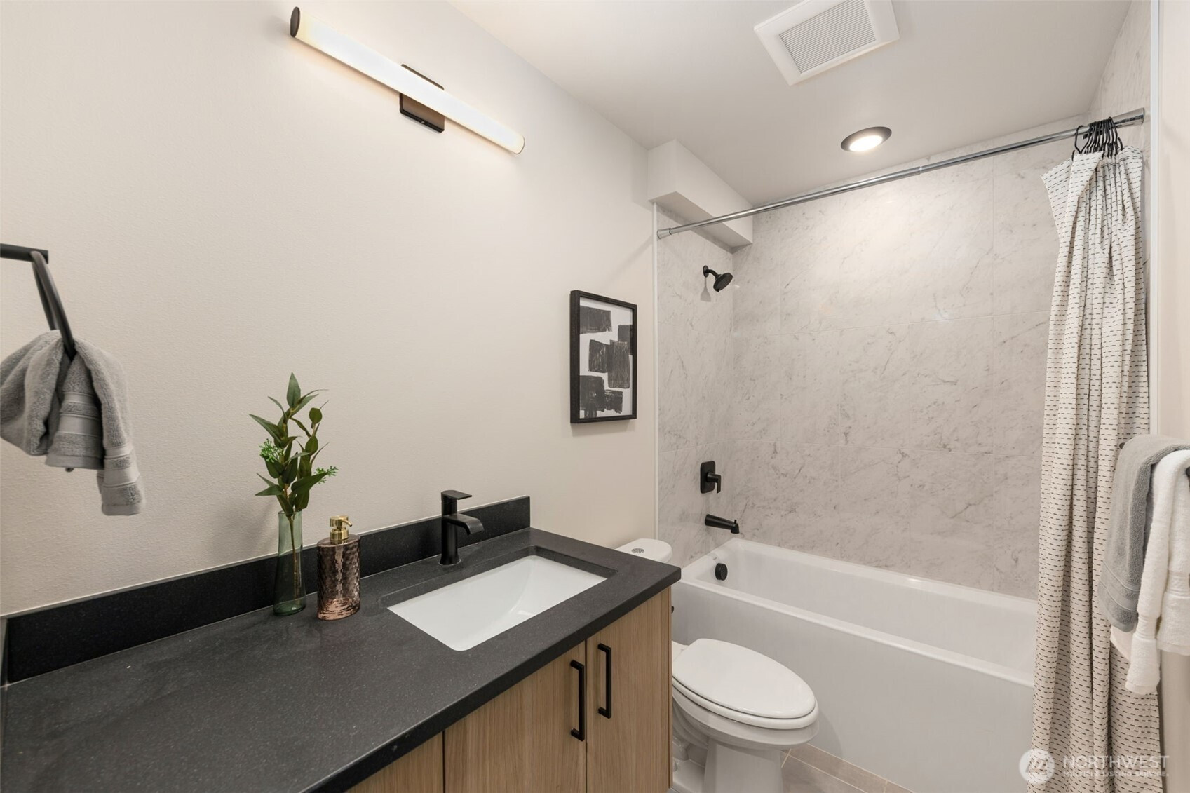 Builder rates starting as low as 1.99% Welcome to a vibrant retail neighborhood. This collection offers the perfect blend of a serene residential neighborhood with all the conveniences of top-notch dining, shopping, and entertainment just outside your doorstep. Guest living on the entry floor with full bed & bath-opens into an L-shaped kitchen, seamlessly connected to a stunning living and dining space flooded with natural light. Above that, the primary suite encompasses an entire level for maximum privacy, including a dual vanity bath and a pass-through walk-in closet. All this coupled w/ a roof deck with beautiful views of the sound (get ready for Sea Fair!). All this + a 90 walkscore! This isn't just a new home, it's a lifestyle upgrade.