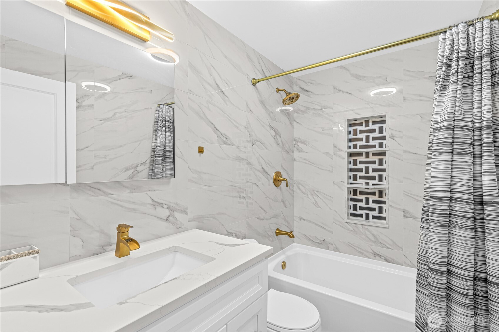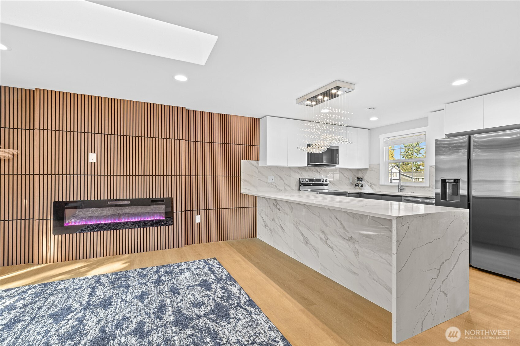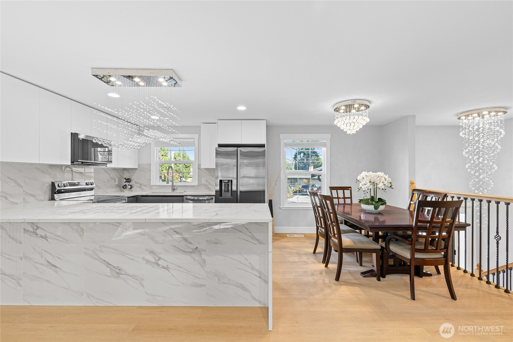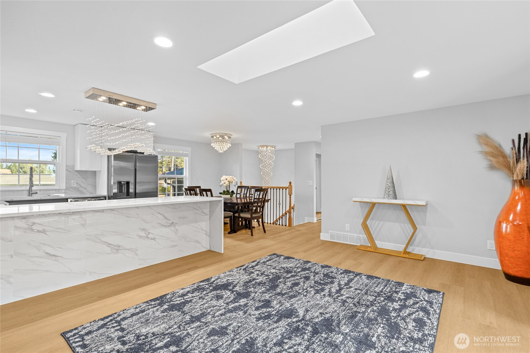 Welcome to this beautifully updated modern split-level home offering 2,020 sq. ft. of stylish living space on an 8,541 sq. ft. corner lot in the desirable Renton Highlands neighborhood. Upper level featuring a fully remodeled kitchen with sleek stainless steel appliances, quartz countertops, and contemporary cabinetry that seamlessly connects to the bright and spacious living and dining areas. The upper floor also offers 3 comfortable bedrooms and a modern full bathroom. On the lower level, enjoy a generous family room, a fourth bedroom, a second bathroom, and an additional bonus room. This home has been extensively updated with new roof, windows, flooring, siding, and much more. Attached 3-car garage equipped with an electric car charger. Just minutes from HWY-405 and the shopping center at the Landing!