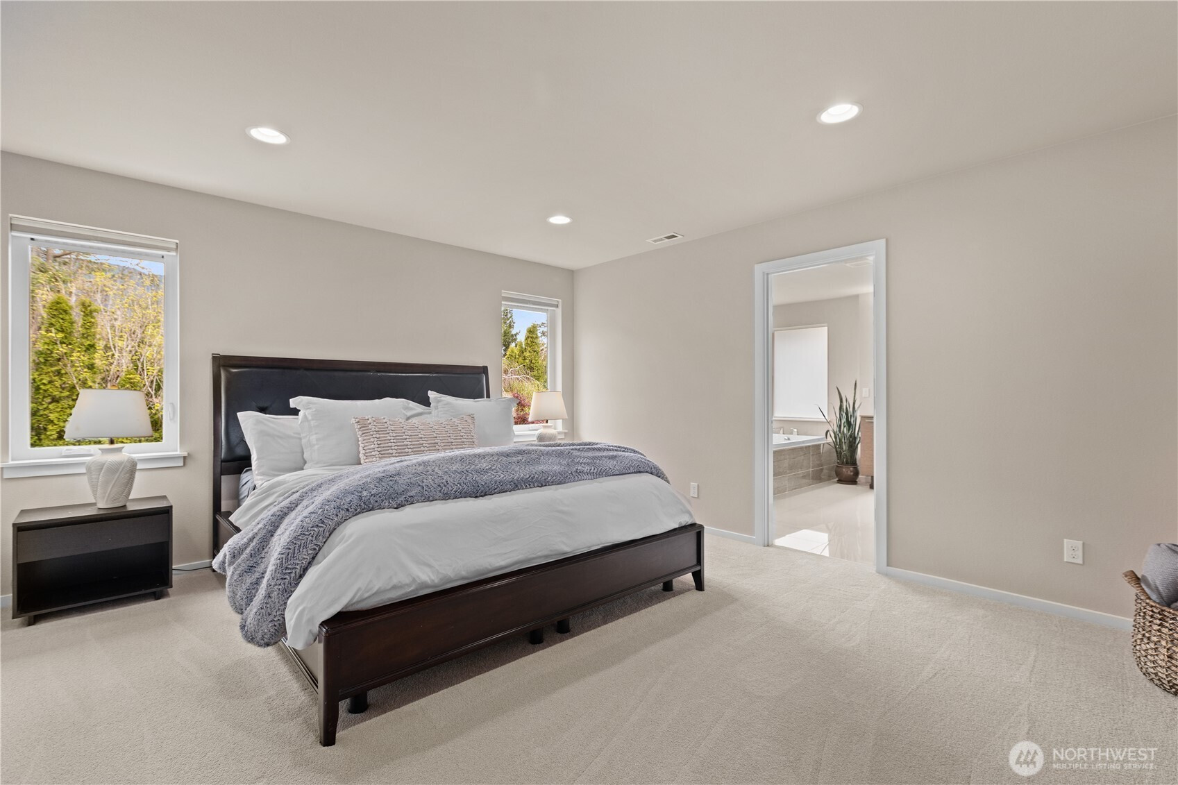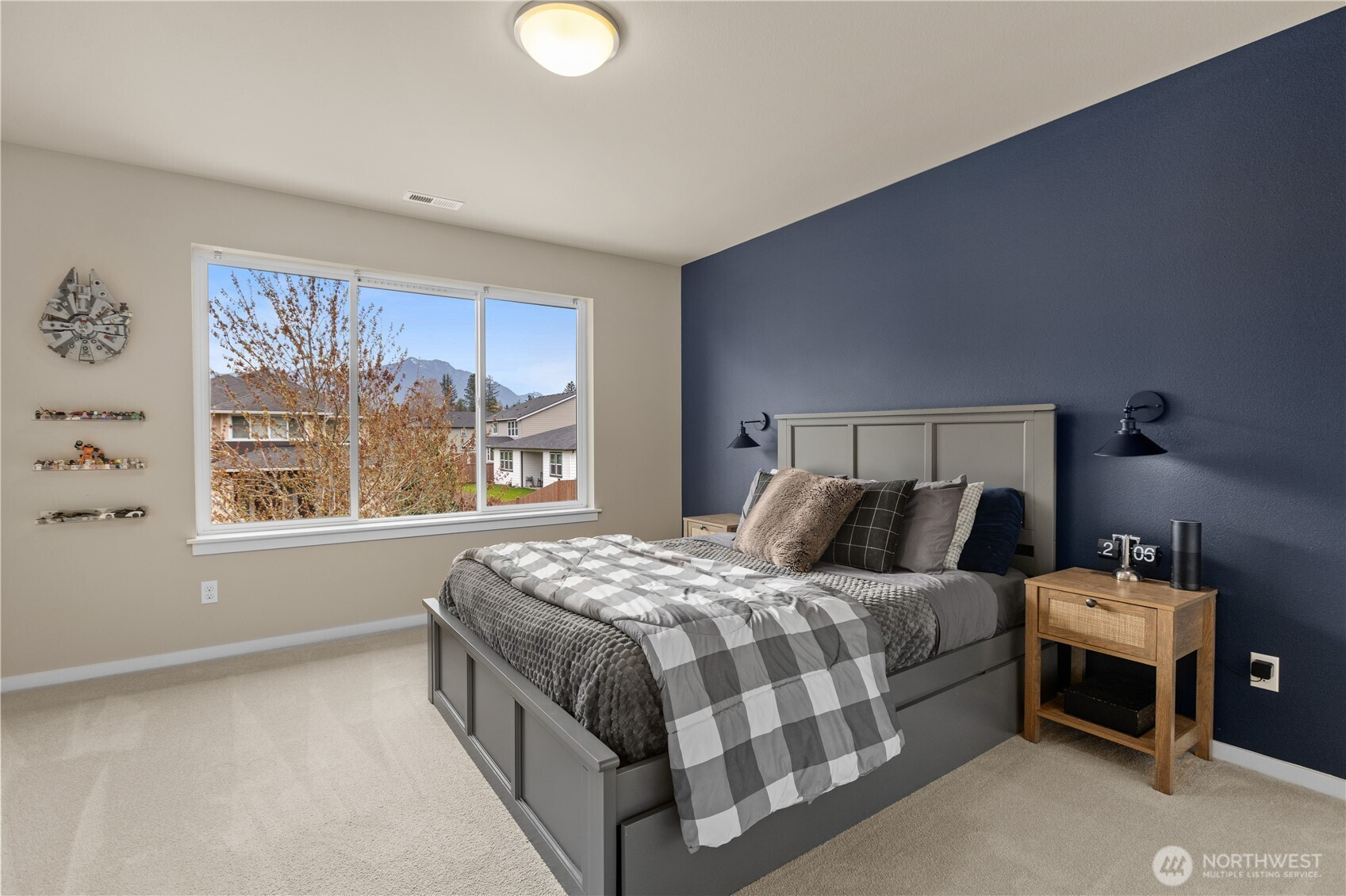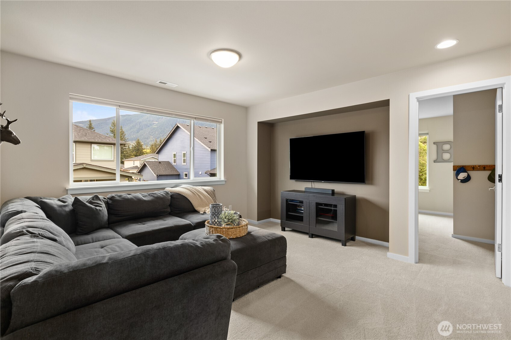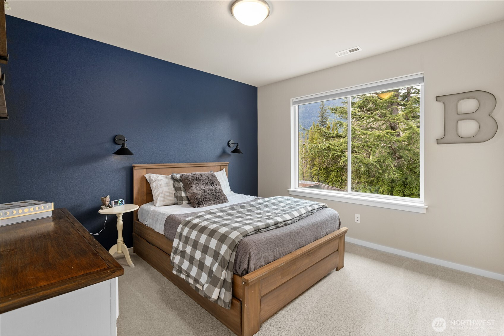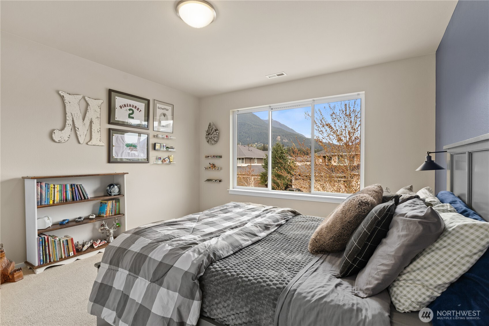 Wake up each morning to breathtaking mountain views in this stunning, 3,012 sq. ft. home in Si View Estates. On the main floor you’ll find the family room with cozy gas fireplace, open-concept kitchen & dining spaces great for hosting, 1/2 bath for guests, & a den with custom built-ins & French doors. The kitchen is a chef’s dream, with quartz counters, SS appliances, & a pantry with custom shelving. Beautiful laminate wood floors & new carpet & interior paint make this home move-in ready. Upstairs, 4 beds, 2 baths, a versatile loft, & a large laundry room provide comfort & space for all. The luxurious primary suite features a custom walk-in closet & spa-like 5-piece bath with a deep-soaking tub. Step outside on the covered deck & into the spacious & flat, fully-fenced yard. Mature landscaping creates a peaceful & picturesque setting. The extended deck is designed for year-round enjoyment with its own gas fireplace & electric heater. On the stamped-concrete patio, unwind in the 8-person hot tub or take advantage of the detached studio, a flexible space you may use for anything! Home office, exercise, art or something else? Complete with a mini-split for heat/AC & LVP floors, it’s perfect for any of your needs. Additional highlights include a 3-car garage, a generator capable of powering the whole home, EV charging, & a sought-after neighborhood with paved paths to downtown, nearby trails, & parks. Located within top-rated Sno-Valley Schools. Don’t miss this must-see home!