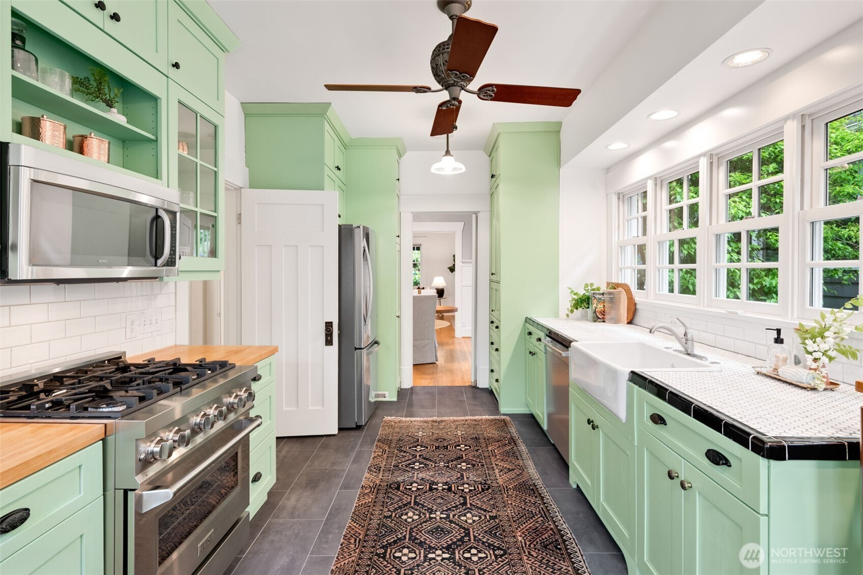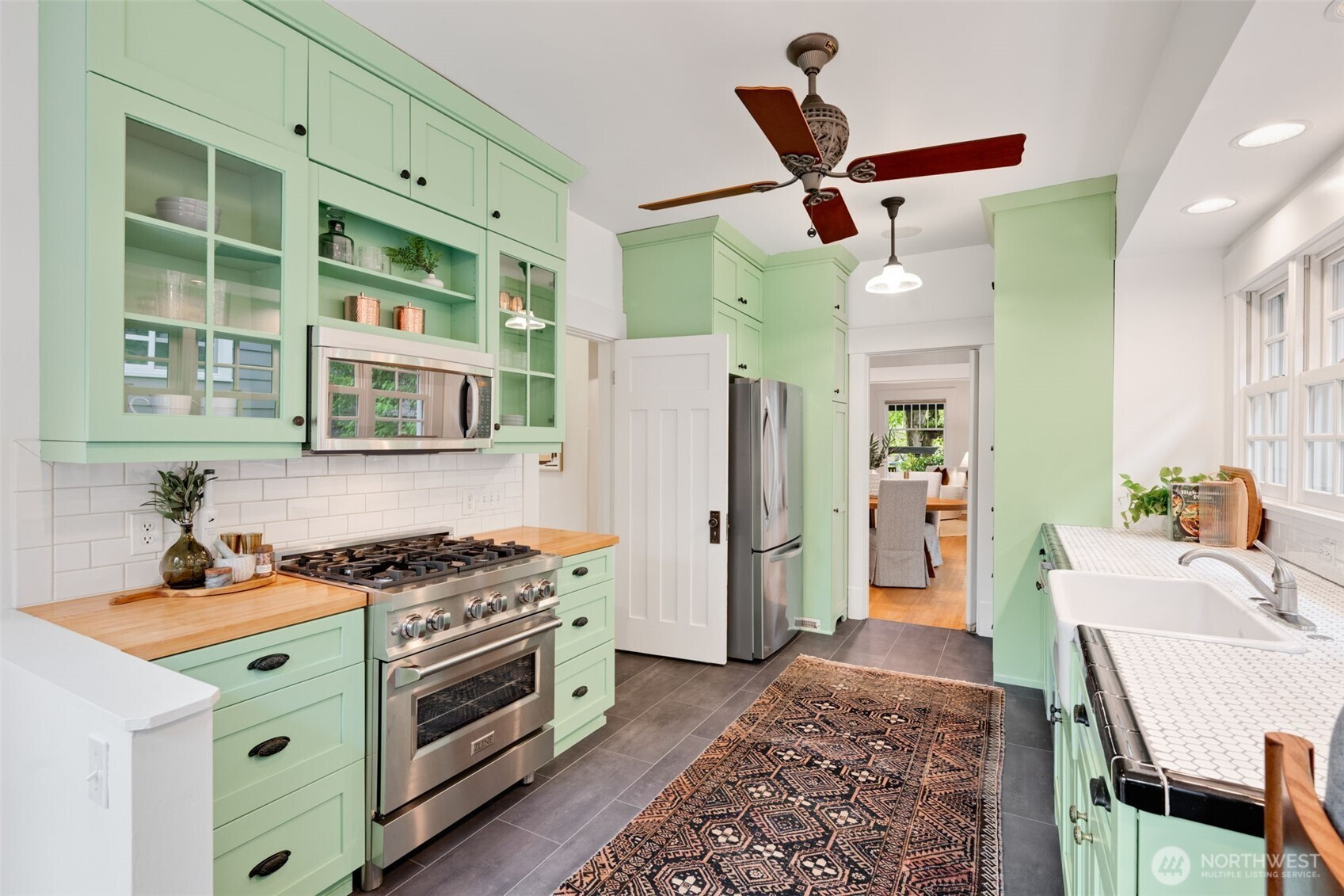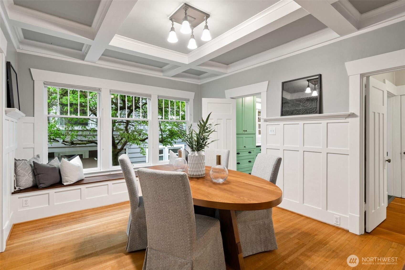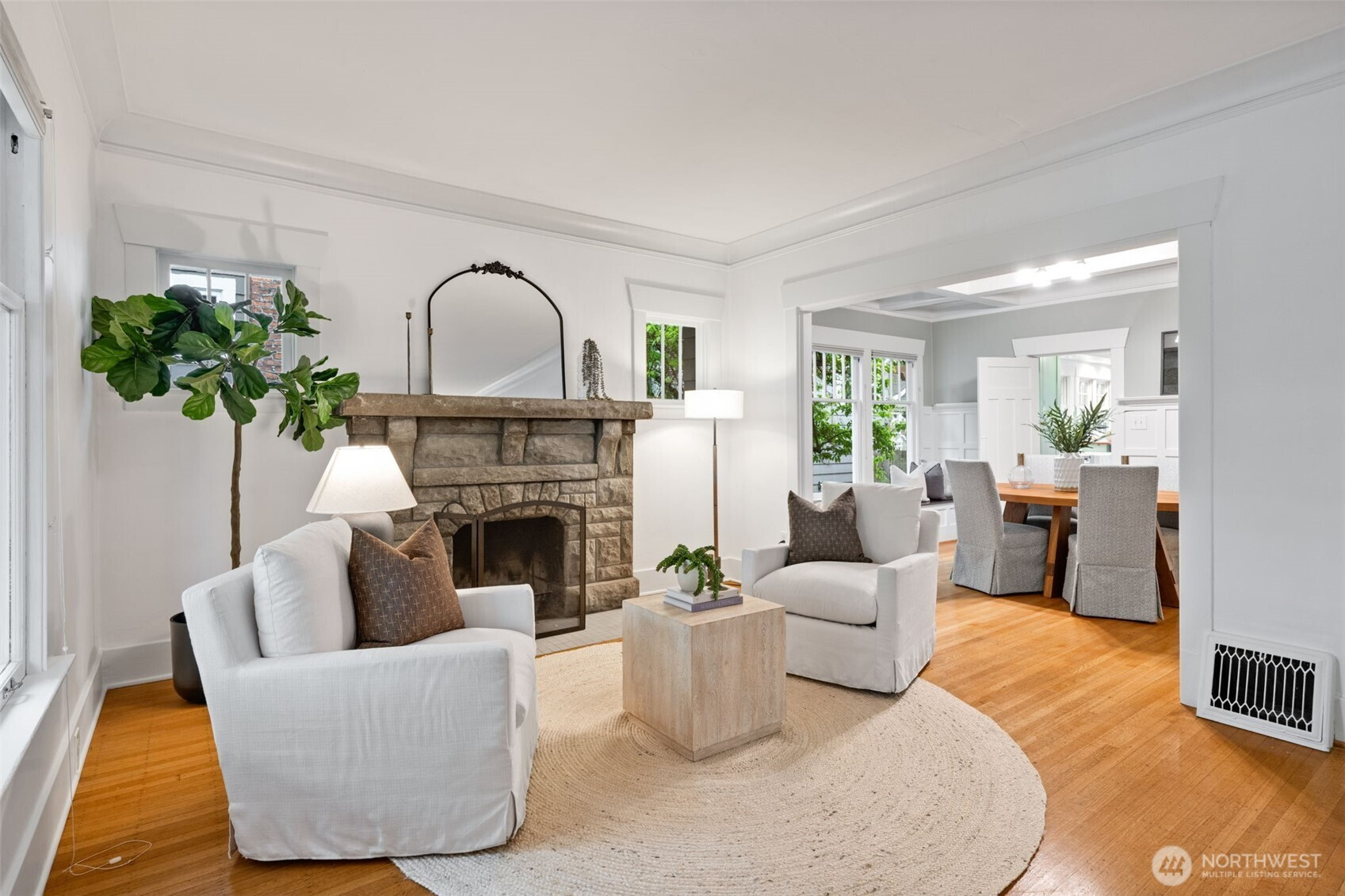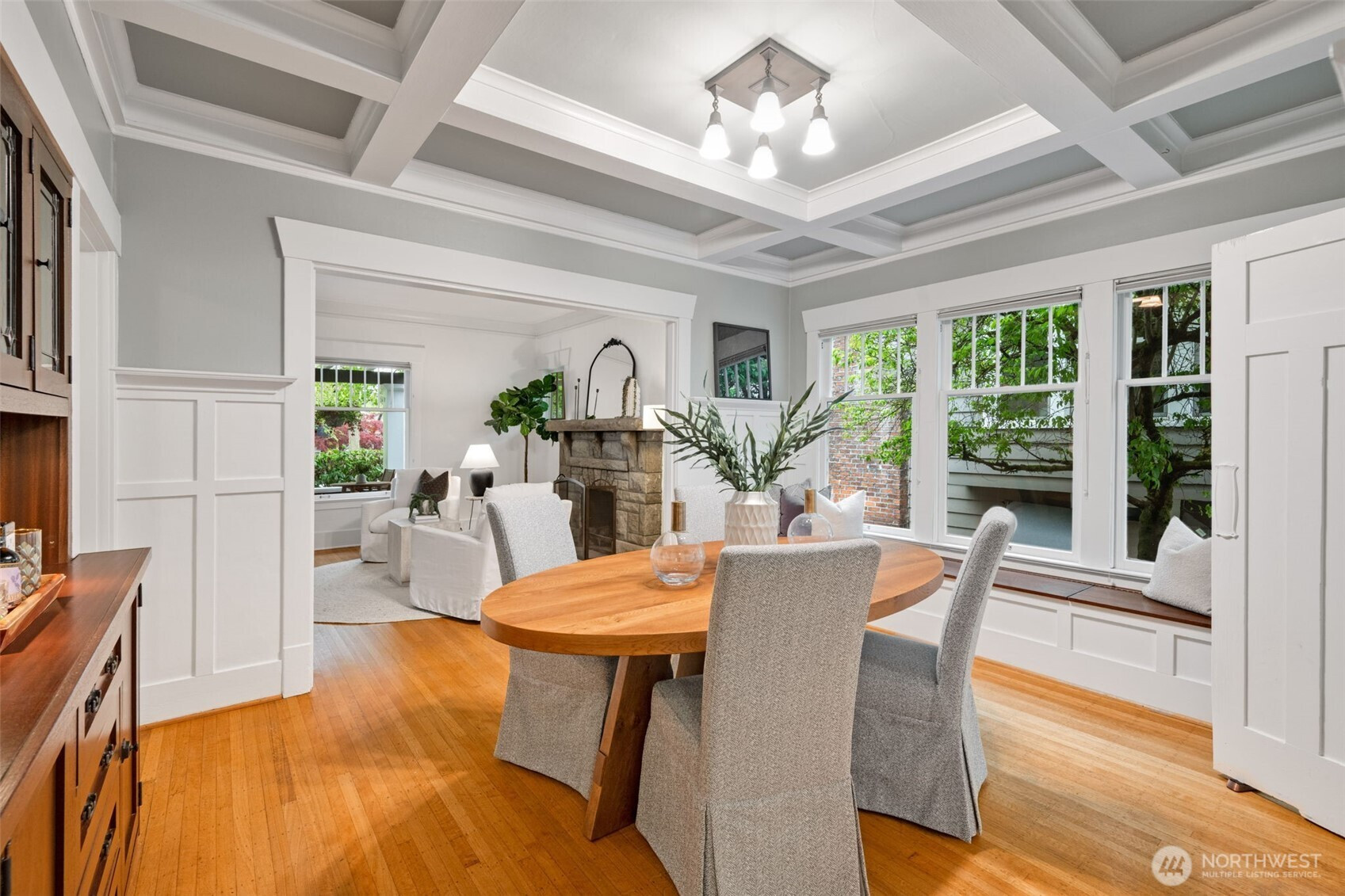 Set along a picturesque, tree-lined boulevard in Ravenna, this fully remodeled Craftsman offers the perfect blend of timeless character and modern comfort. From the moment you step inside, box beam ceilings, rich millwork, and warm hardwood floors create an inviting, light-filled atmosphere that feels both classic and refined. The kitchen is designed for everyday living and gathering, featuring a wall of windows that brings in abundant natural light and new stainless steel appliances. It opens to the backyard, creating an easy connection for morning coffee outdoors or hosting friends on summer evenings. The formal dining room, with wainscoting and a built-in mahogany buffet, is ideal for entertaining, while the living room’s stone fireplace offers a cozy place to unwind. With 3 bedrooms and a dedicated office, the home offers a flexible layout suited to a variety of lifestyles. Thoughtful updates, including refreshed bathrooms, enhance comfort while maintaining the home’s original charm. Enjoy close proximity to University of Washington, Cowen Park, Ravenna Park, and Green Lake. Nearby shops, dining, and the Roosevelt light rail station provide easy access to everything the city has to offer, along with access to highly rated public schools.