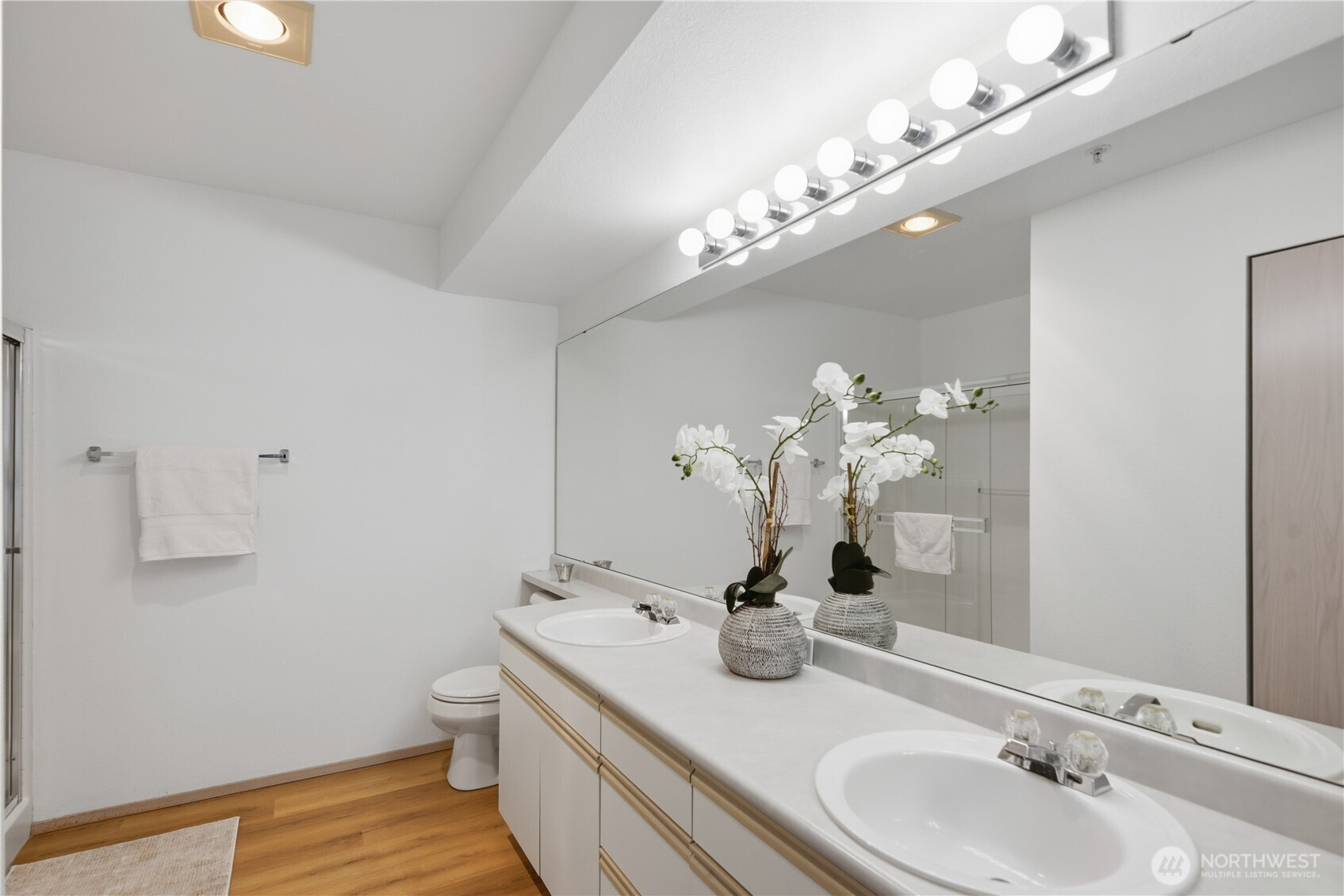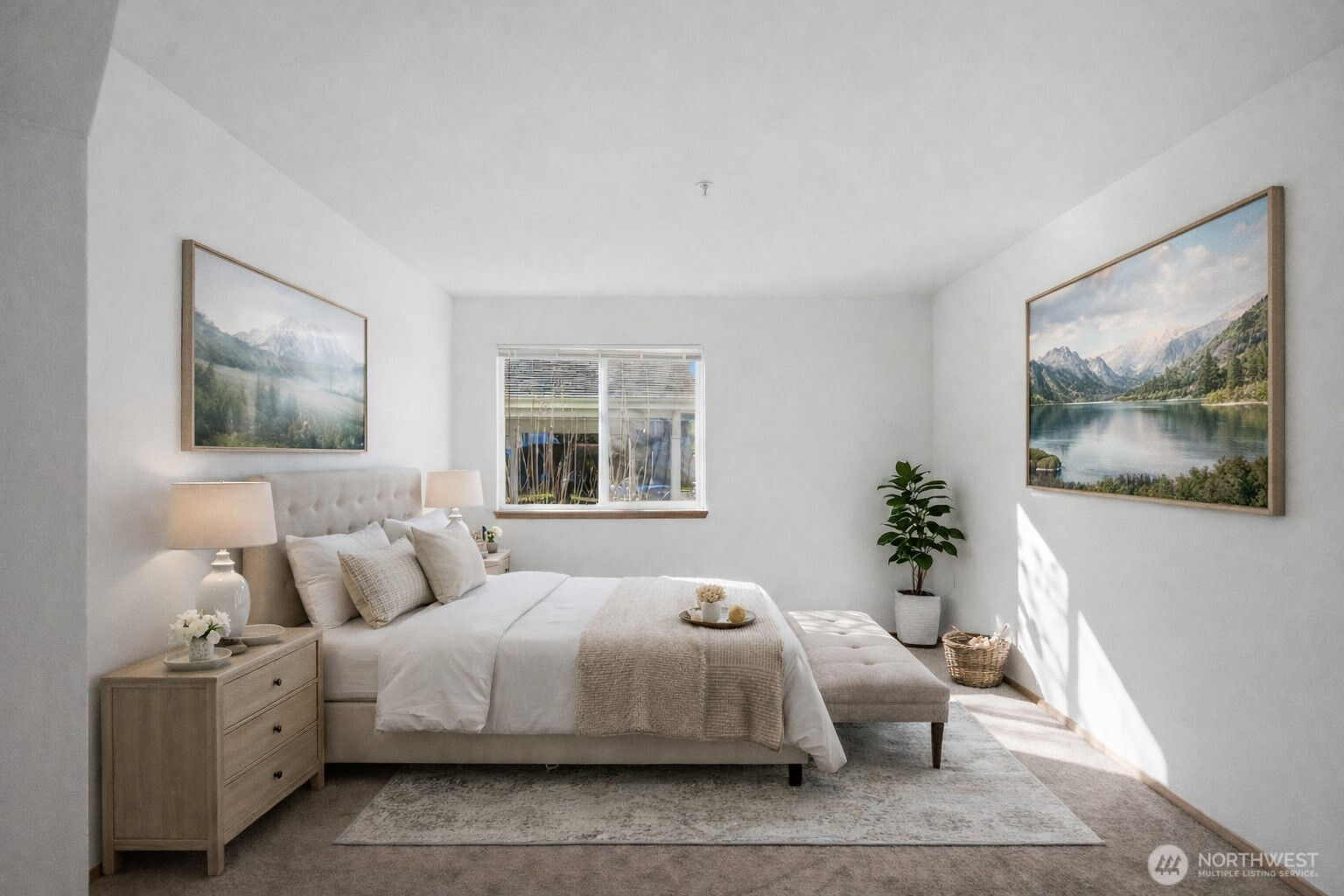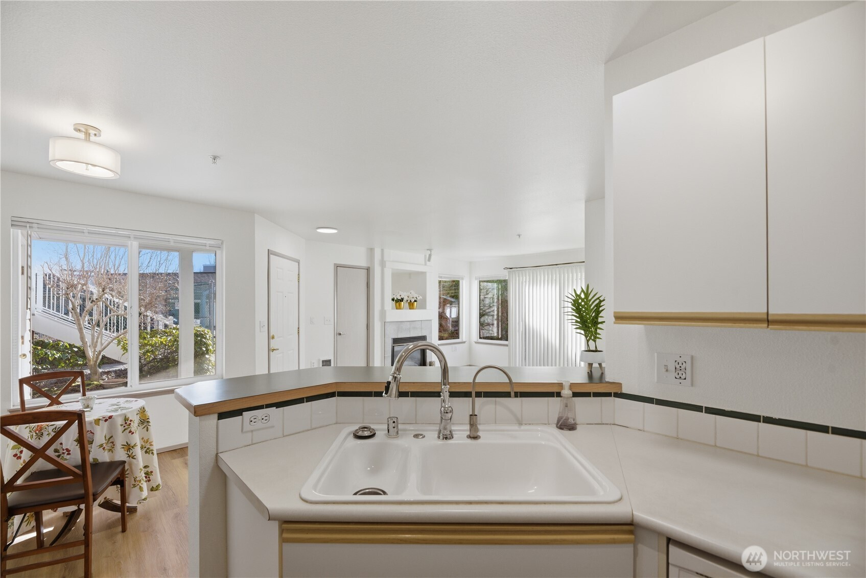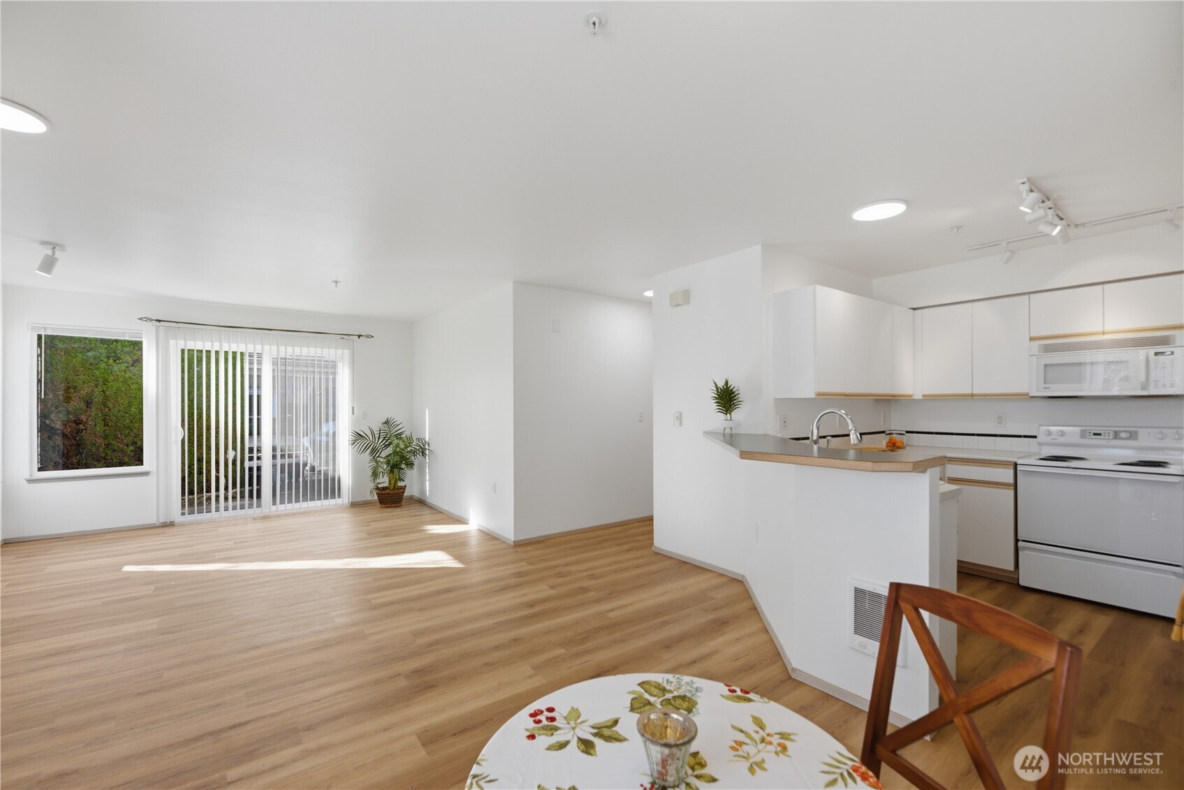 Charming first-floor condo in the gated Windsong Arbor community. Ideally located just minutes from Hwy 167 with easy access to schools, shopping, dining, and transit. This light-filled home features an open, functional floor plan, a private patio, and an updated kitchen with built-in water filtration system at the sink. Recent upgrades include fresh interior paint, brand-new laminate flooring throughout the main living areas, and new carpet in both generously sized bedrooms. The primary suite offers an ensuite bathroom with a walk-in shower and built-in bench. Additional features include a full-size washer and dryer, one reserved carport space, and extra storage. Enjoy secured, gated community & amenities such as a clubhouse, fitness center, gathering space, sports court, and pet-friendly areas. HOA dues include water, sewer, garbage, and gas for the fireplace.