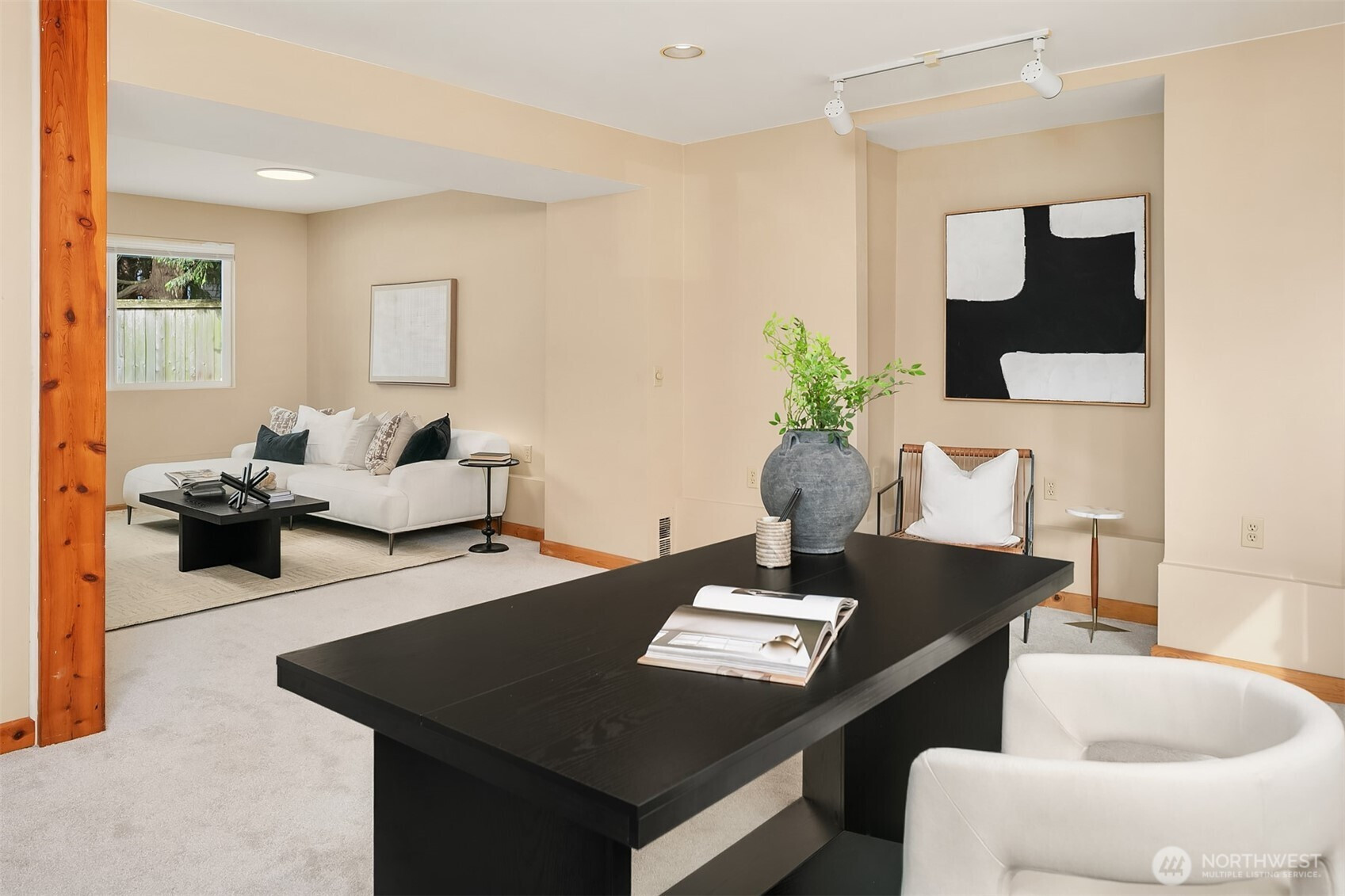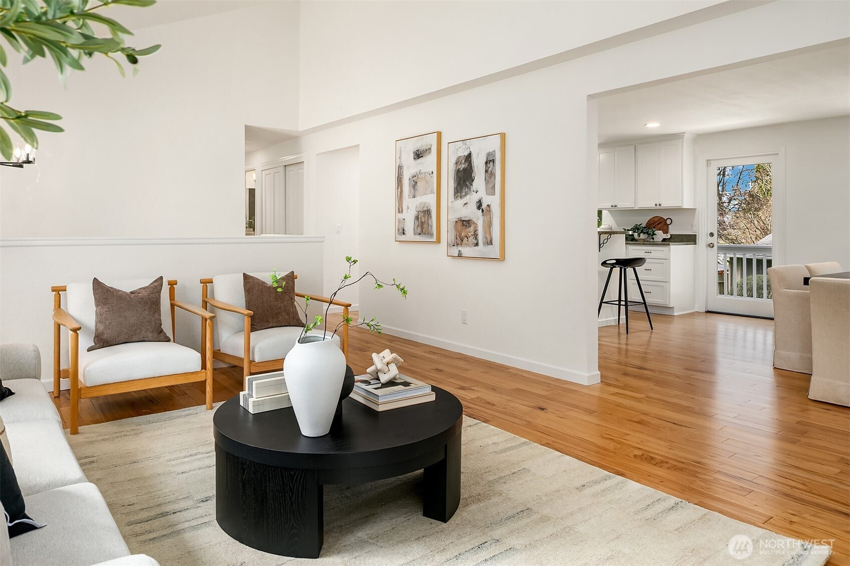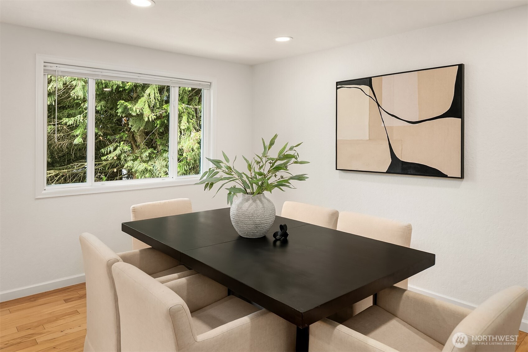 Thoughtfully refreshed and move in ready, this Rose Hill home pairs classic character with modern updates throughout. The home is elevated by all new interior and exterior paint, new windows, updated millwork, fixtures, 30 year roof, and new recessed lighting that brings warmth and dimension to every space. Hardwoods flow throughout the upstairs, with vaulted ceilings in the living room that create an airy sense of volume, centered around a charming wood burning fireplace. The refreshed kitchen features stainless steel appliances, new lighting, updated cabinetry with abundant storage and flows seamlessly to the dining area, spacious deck, and fully fenced backyard with irrigation, creating an effortless indoor-outdoor connection. Three bedrooms on the main level, including a large primary with attached 3/4 bath. The lower level offers flexibility with a large rec room and potential 4th bedroom with new carpet, along with a bathroom and utility room. Complete with a two-car garage and set on a quiet cul-de-sac near Mark Twain Elementary School, this home offers both convenience and a sense of neighborhood, just minutes from Totem Lake Village, downtown Kirkland, and major tech hubs.
