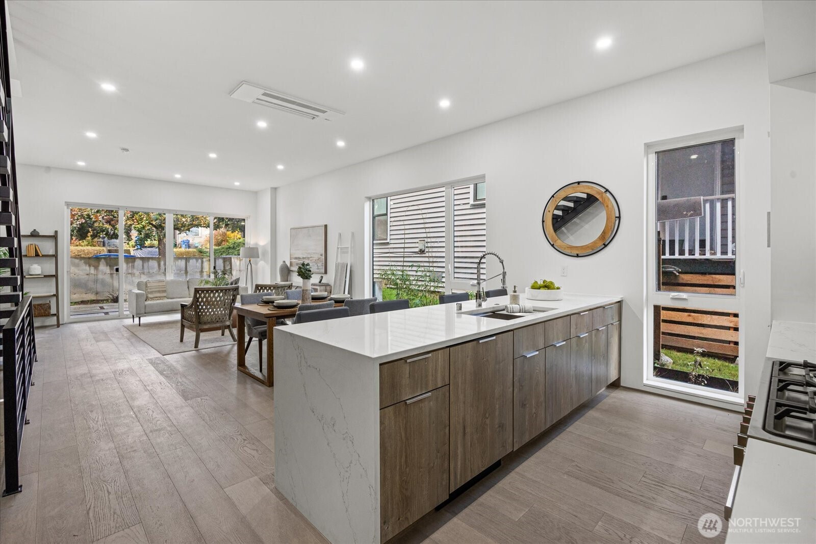 Limited Time:1.99% Interest Rate(Qualifications Apply)- Experience modern Seattle living in this sleek 3-bedroom, 2-bath home blending contemporary style with eco-friendly living. The floor plan is open and filled with natural light, featuring smooth walls and built-in closets in each bedroom. This home offers both comfort & sophistication with energy-efficient systems and premium sound insulation for quiet comfort. A chef-inspired kitchen featuring panel-ready appliances that blend seamlessly with sleek cabinetry. Enjoy a private rooftop deck for entertaining, EV-ready alley parking, and a prime location surrounded by award-winning restaurants, new shops, and vibrant neighborhood energy in one of the city’s most cultured neighborhoods.