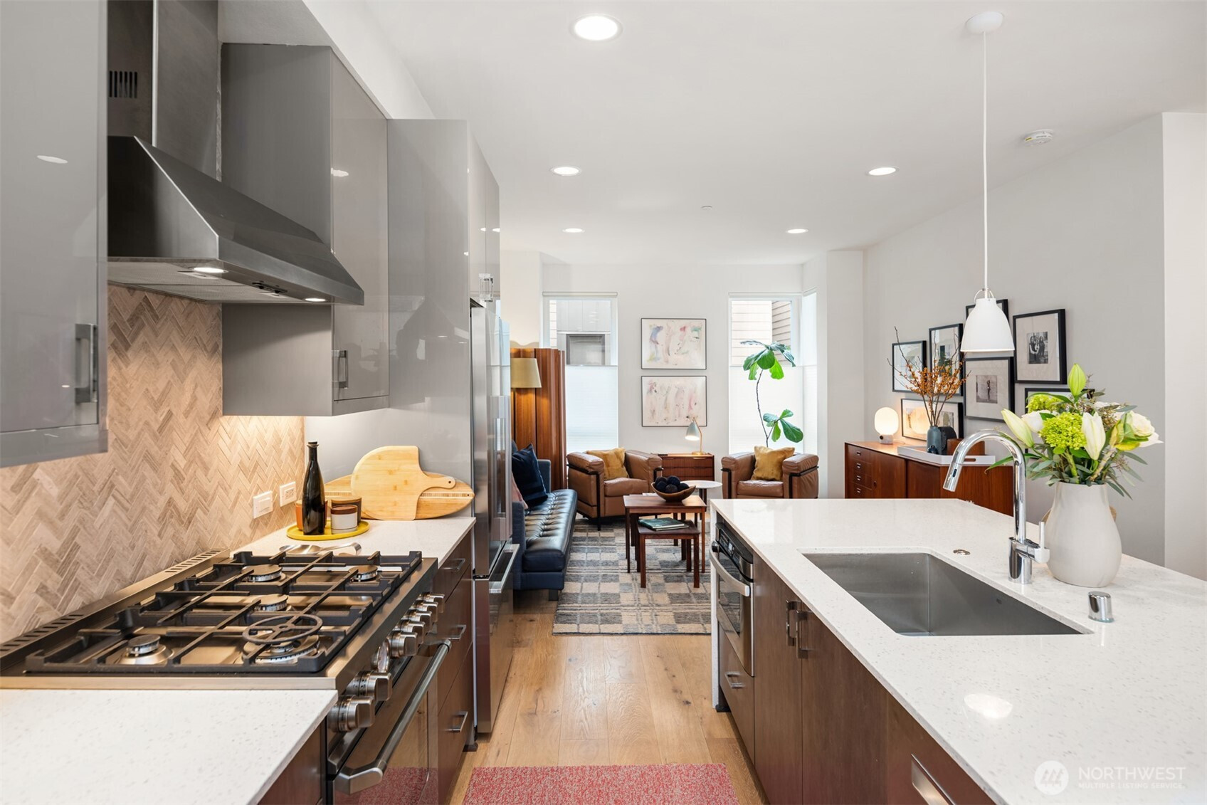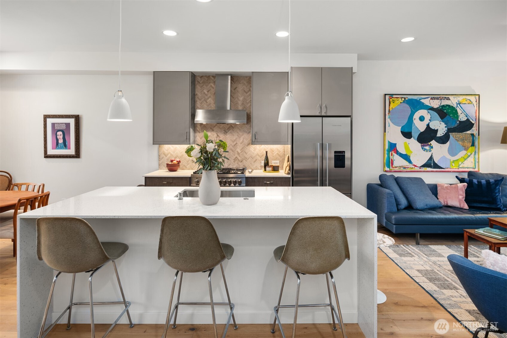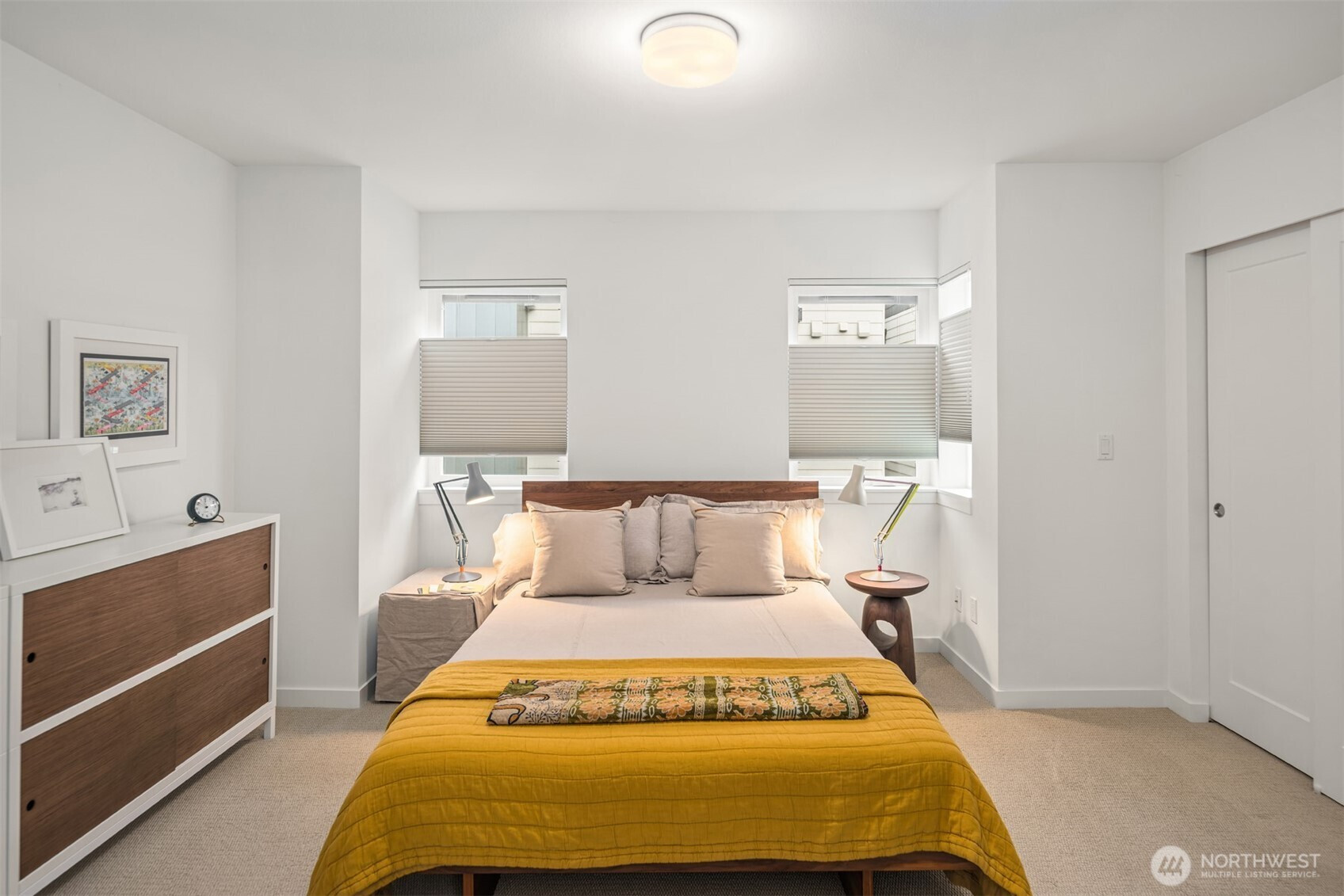 Experience the best of Madrona in this stunning 2019 built contemporary townhouse. The open-concept layout flows seamlessly from the living room to a spacious kitchen with a large island, bar seating, ample storage, and premium finishes. The light-filled primary bedroom features a walk-in shower, dual vanity, and modern touches. Enjoy the convenience of an in-unit washer/dryer, radiant bathroom floors, and efficient mini-split systems. Relax on your private rooftop deck or enjoy vibrant dining and coffee shops just steps away. Built Green 4-Star certified with a smart home system, attached carport, and extra storage. Stylish, sustainable, and perfectly located, this is Madrona living at its finest.
