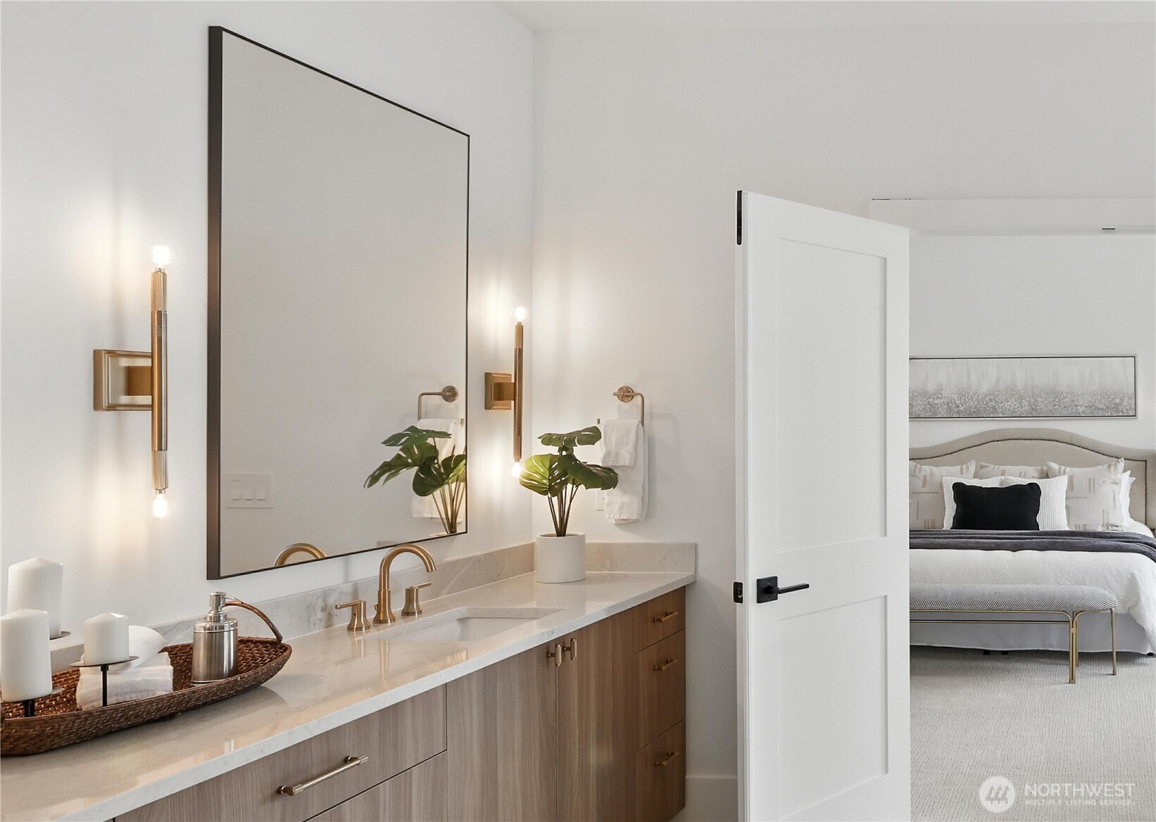Welcome to The Sinclair - an exquisite new home by American Classic Homes, renowned across the Eastside for architectural excellence, now available in Lower Kennydale - Elegant and light-filled, this home showcases peekaboo views of Lk WA w/10' main-floor ceilings & an open design centered on a chef's kitchen and great room. A large island, walk-in pantry & Thermador appliances highlight the kitchen, while a main-floor guest suite & private den offer flexibility for work/multigenerational living. Enjoy entertaining on the covered back yard patio. Upstairs, retreat to a luxe primary suite w/ 2 walk-in closets and a spa-style bath. Complete with A/C, sprinklers, and a large garage, this home perfectly balances elegance and everyday comfort.