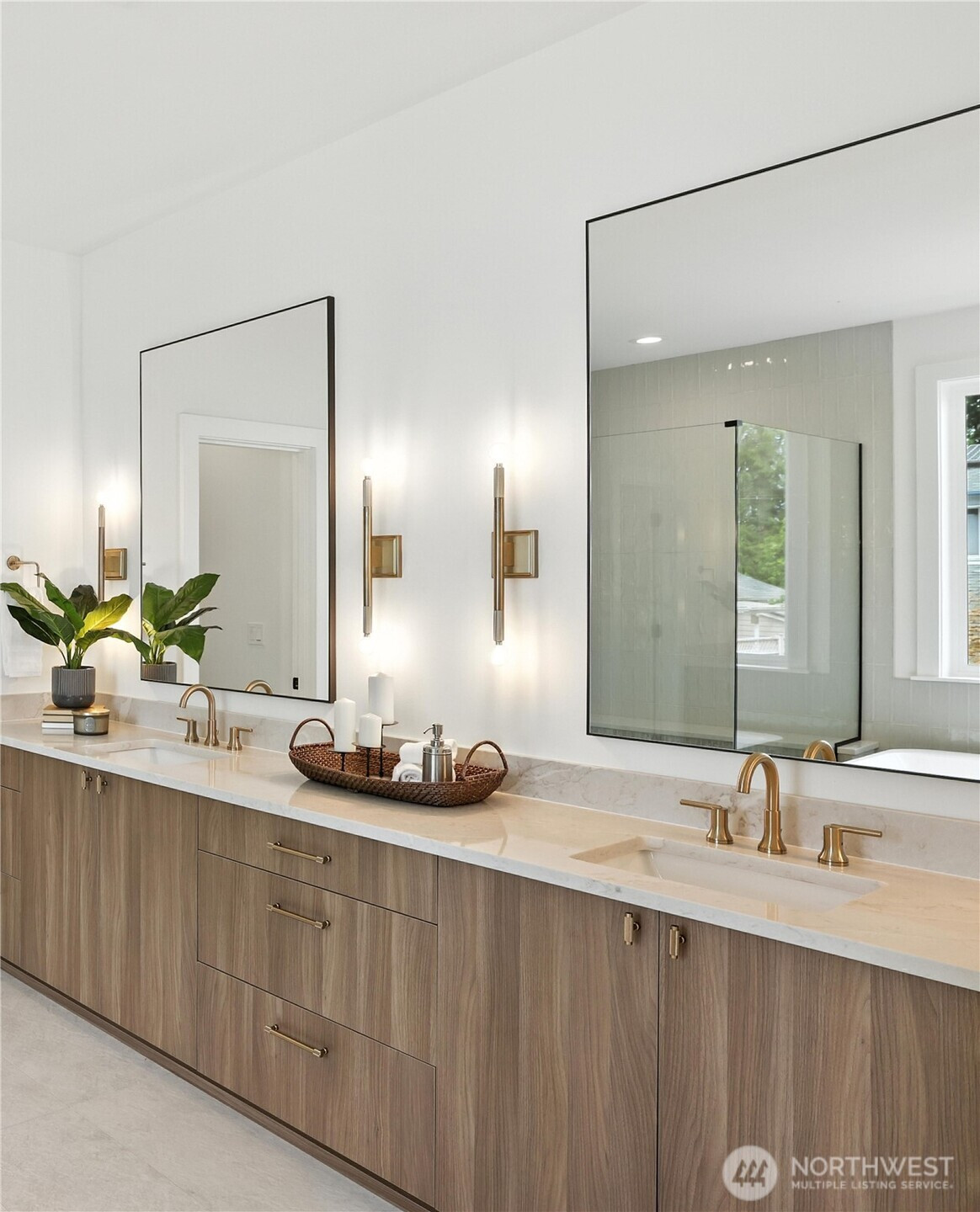 Welcome to The Sinclair - an exquisite new home by American Classic Homes, renowned across the Eastside for architectural excellence, now available in Lower Kennydale - Elegant and light-filled, this home showcases peekaboo views of Lk WA w/10' main-floor ceilings & an open design centered on a chef's kitchen and great room. A large island, walk-in pantry & Thermador appliances highlight the kitchen, while a main-floor guest suite & private den offer flexibility for work/multigenerational living. Enjoy entertaining on the covered back yard patio. Upstairs, retreat to a luxe primary suite w/ 2 walk-in closets and a spa-style bath. Complete with A/C, sprinklers, and a large garage, this home perfectly balances elegance and everyday comfort.