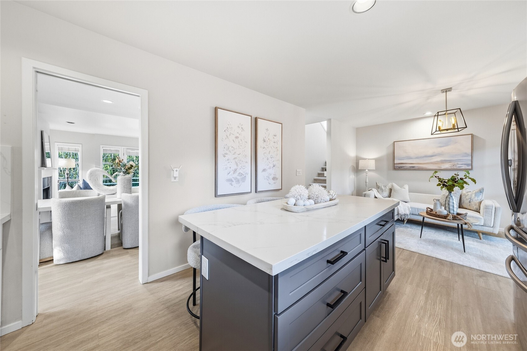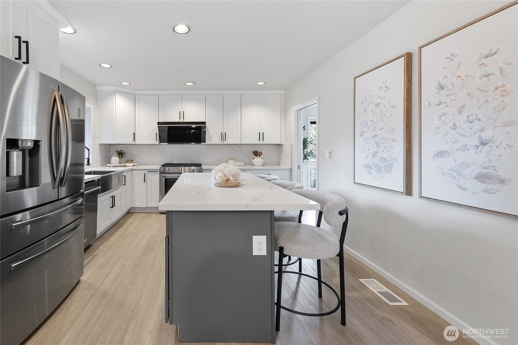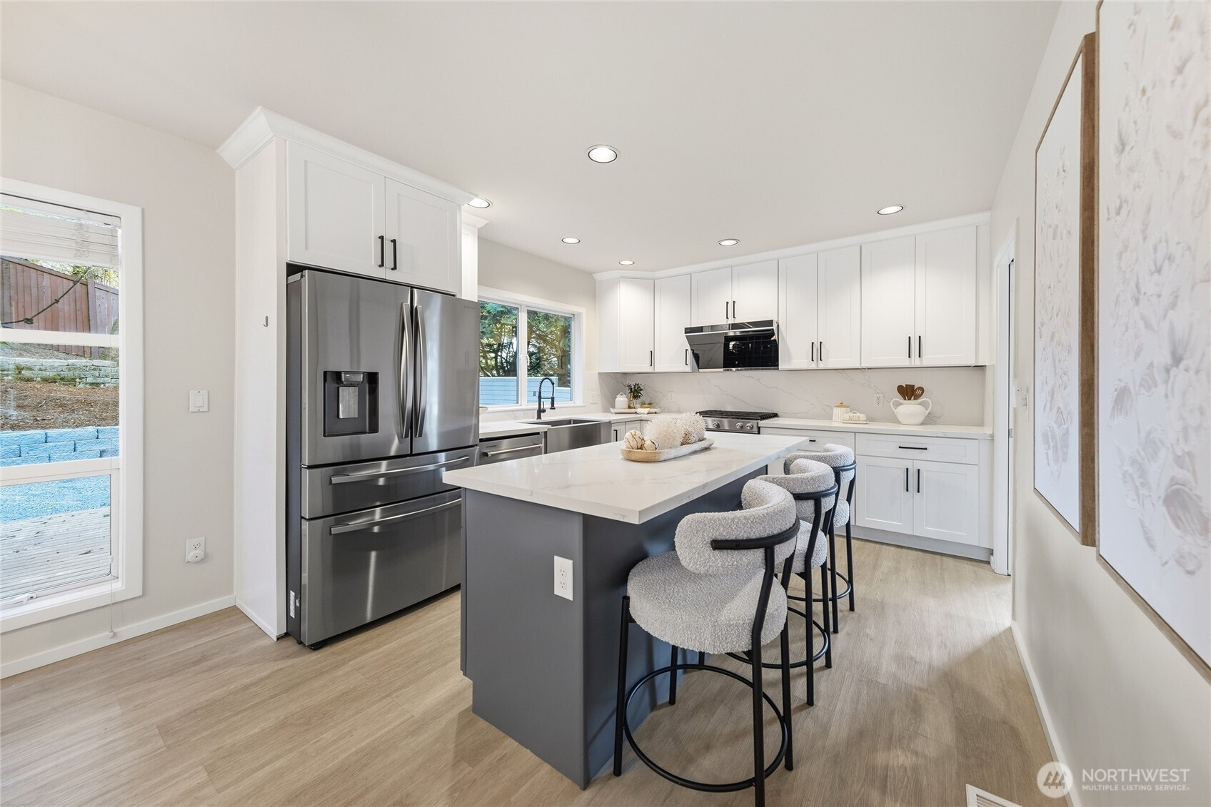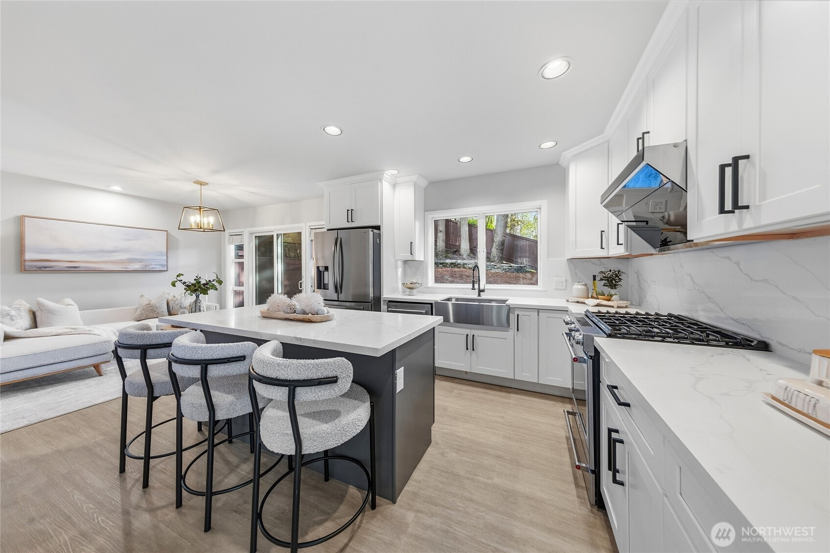 Beautifully maintained home in a prime Kirkland location! Tucked away on a quiet street, this light-filled home offers a functional layout with inviting living spaces ideal for everyday living and entertaining. The main level features expansive picture windows that bring in abundant natural light. The spacious eat-in kitchen includes updated cabinetry, stainless steel appliances with a gas range, and a peaceful backyard view from the kitchen sink, flowing seamlessly into the dining and living areas. Upstairs offers a generous primary suite with a bright en-suite bath, two additional bedrooms, a full hall bath, and convenient upper-level laundry. Enjoy a private backyard with a large patio, perfect for entertaining, plus beautifully terraced garden beds. A fully finished garage adds flexibility and extra storage. Located in the highly regarded Lake Washington School District, serving Peter Kirk Elementary, Kirkland Middle, and Lake Washington High. Minutes to the Cross Kirkland Corridor, Forbes Creek Park, local parks and courts, Downtown Kirkland, and major employers, including Google. No review date—bring your offers!