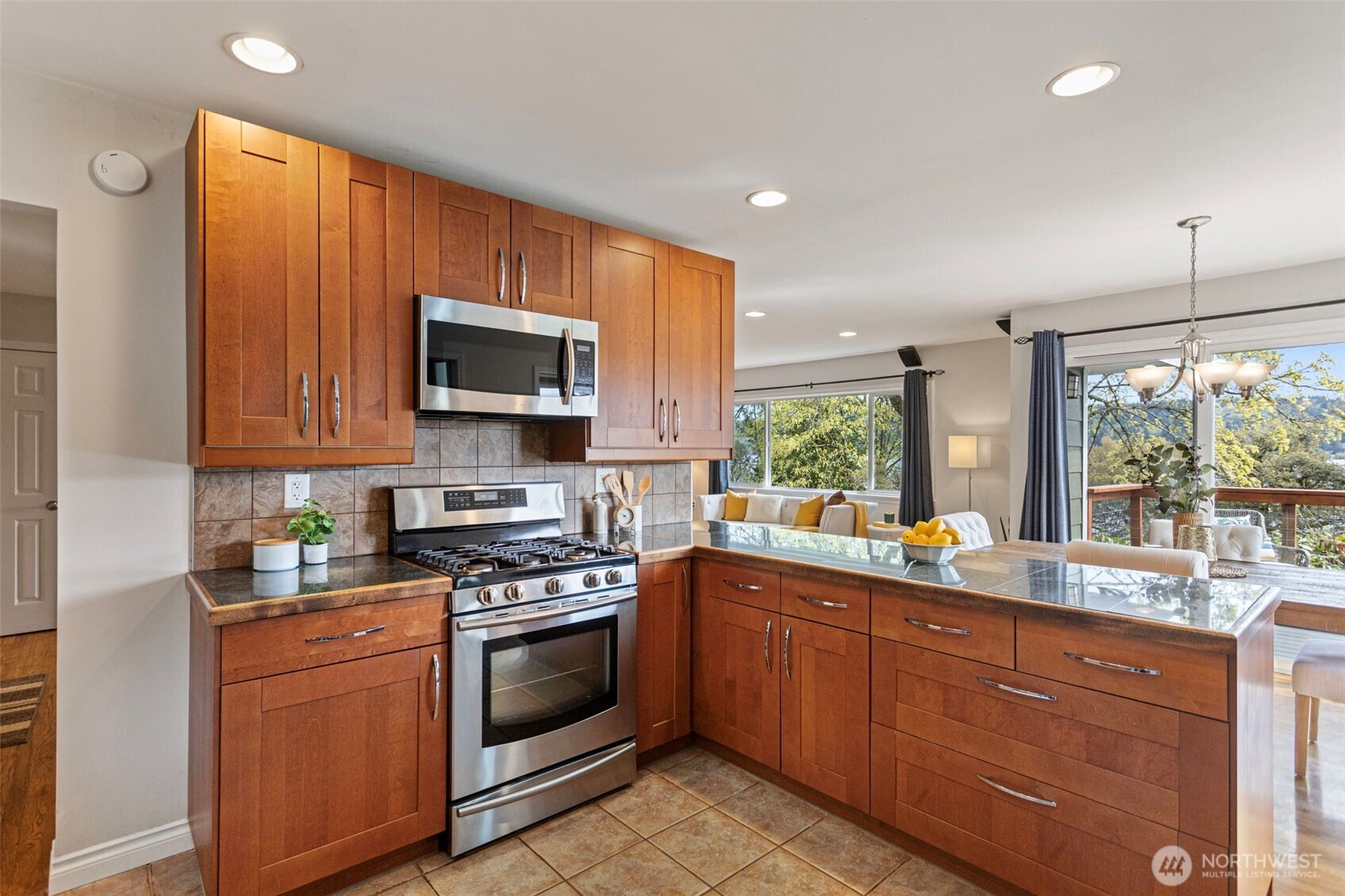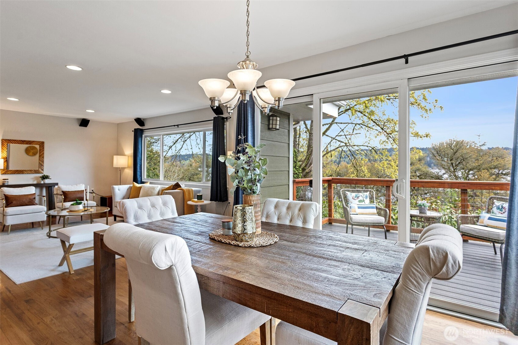 Located along the Burke-Gilman Trail on coveted Lakeside Ave, this beautifully updated home offers Lake WA water views from every level. A covered front porch welcomes you into a thoughtfully designed floor plan that blends mid-century charm with modern functionality. The open kitchen and dining area flow seamlessly to a spacious view deck—ideal for everyday living and entertaining. The main floor features two bedrooms, including the primary with lake views, and a fully updated bathroom. The lower level expands the home’s versatility with two more bedrooms, a large rec room, bathroom, and flexible space perfect for a second kitchen, hobby room, or workshop, plus an additional room for storage, office, or gym—all opening to the lower view deck. Extensively updated and truly move-in ready. Almost everything in this house has been replaced or updated, including the kitchen and baths, roof, windows, insulation, furnace, A/C, interior and exterior paint, water line, new/rebuilt decks, driveway and so much more. Ideally located adjacent to the Burke-Gilman Trail and just moments to Matthews Beach Park and Lake City Beach. Enjoy effortless access to the UW, Children's Hospital, U-Village, downtown Seattle, and nearby light rail for easy commuting. A rare opportunity to own a peaceful view retreat with timeless appeal and modern updates. Enjoy the daily changes on the lake with sunrises, seaplanes, Xmas boats, watch crew practice and enjoy the eagles and ospreys nesting in the trees!
