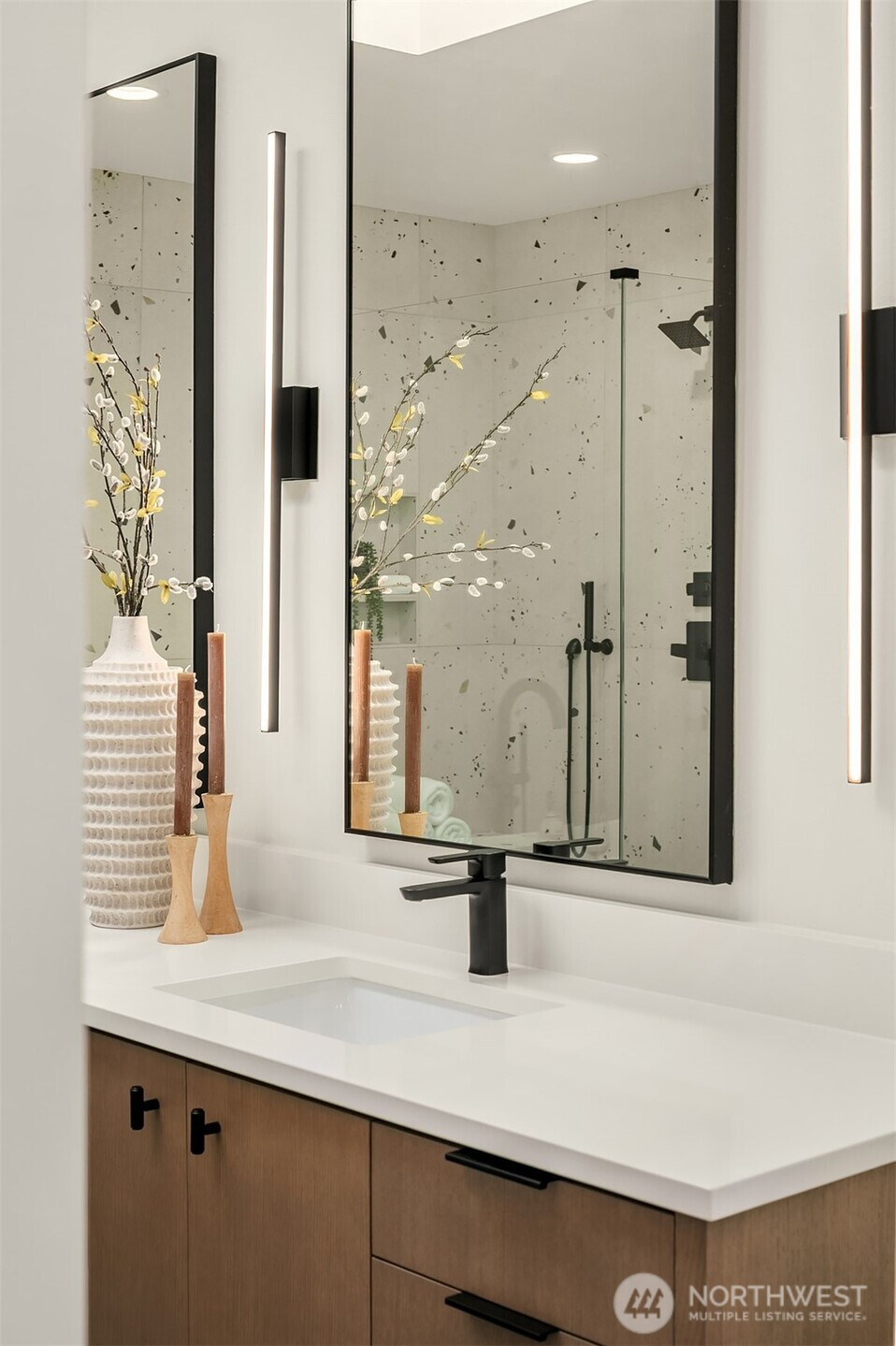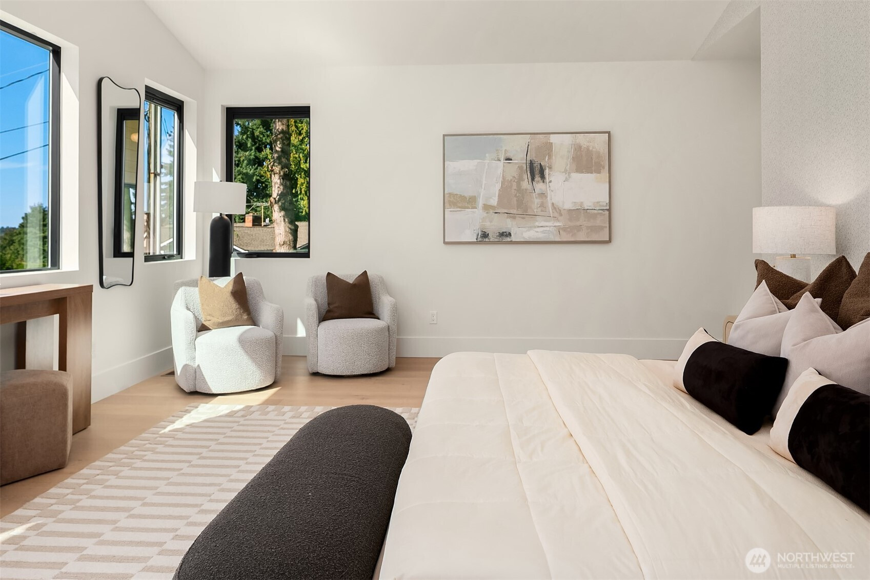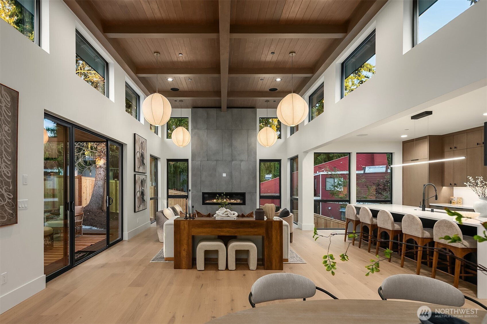 The Aspen by Enfort Homes — a masterfully crafted residence set within a cul-de-sac of just four new homes in the Highlands neighborhood. Surrounded by natural beauty, the home offers a rare sense of quiet seclusion, while the primary suite enjoys a coveted peekaboo water view — a privilege only a select few homes here can claim. A dramatic 10-foot entry door opens to an impressive great room with 14-foot exposed beam and tongue-and-groove ceilings. Just beyond, the covered patio invites year-round enjoyment with a gas fireplace, infrared heater, and built-in speakers. The chef’s kitchen centers around a striking double-waterfall quartz island with professional Thermador appliances and a spacious pantry with room for a second refrigerator — ideal for effortless entertaining. The primary suite offers a true retreat with a spa-inspired bath featuring heated floors, toe-kick lighting, and a generous walk-in closet with custom organizors, bathed in natural light from overhead skylights. A main-level office easily serves as a fourth bedroom. Downstairs, the lower level offers a spacious bonus room, private ensuite, and an additional bedroom for flexible living. A fully fenced yard, two utility rooms, — ideal for a future wine cellar, gym, or hobby room — complete the home. Minutes to top-ranked Schools, Parks, elevated Dining, and Freeway access.