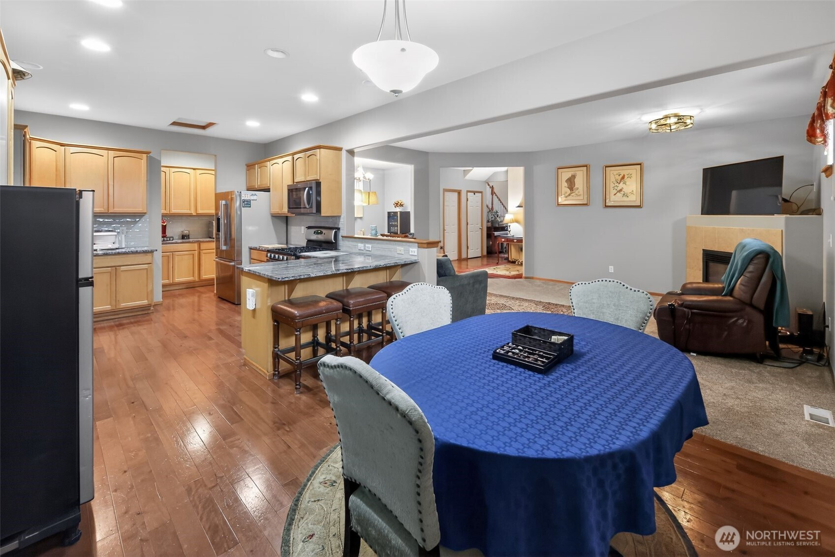 Beautiful 5-bedroom, 2.5-bath Craftsman-style home located in the desirable West Creek Court neighborhood with no HOA! This spacious home offers a functional and versatile layout perfect for everyday living and entertaining. The main floor features a bright great room with a cozy gas fireplace, dining areas, an office, an additional bedroom, and a convenient guest bath. The kitchen is well-appointed with granite tile countertops, stainless steel appliances, and a butler’s pantry for extra storage and prep space. Upstairs, you’ll find a large primary suite with a walk-in closet and a luxurious 5-piece bathroom, along with three additional bedrooms, a full bath, and a generous utility room. Quality finishes throughout include hardie plank siding, stone accents, a covered front porch, and 9-foot ceilings that create an open and inviting feel.