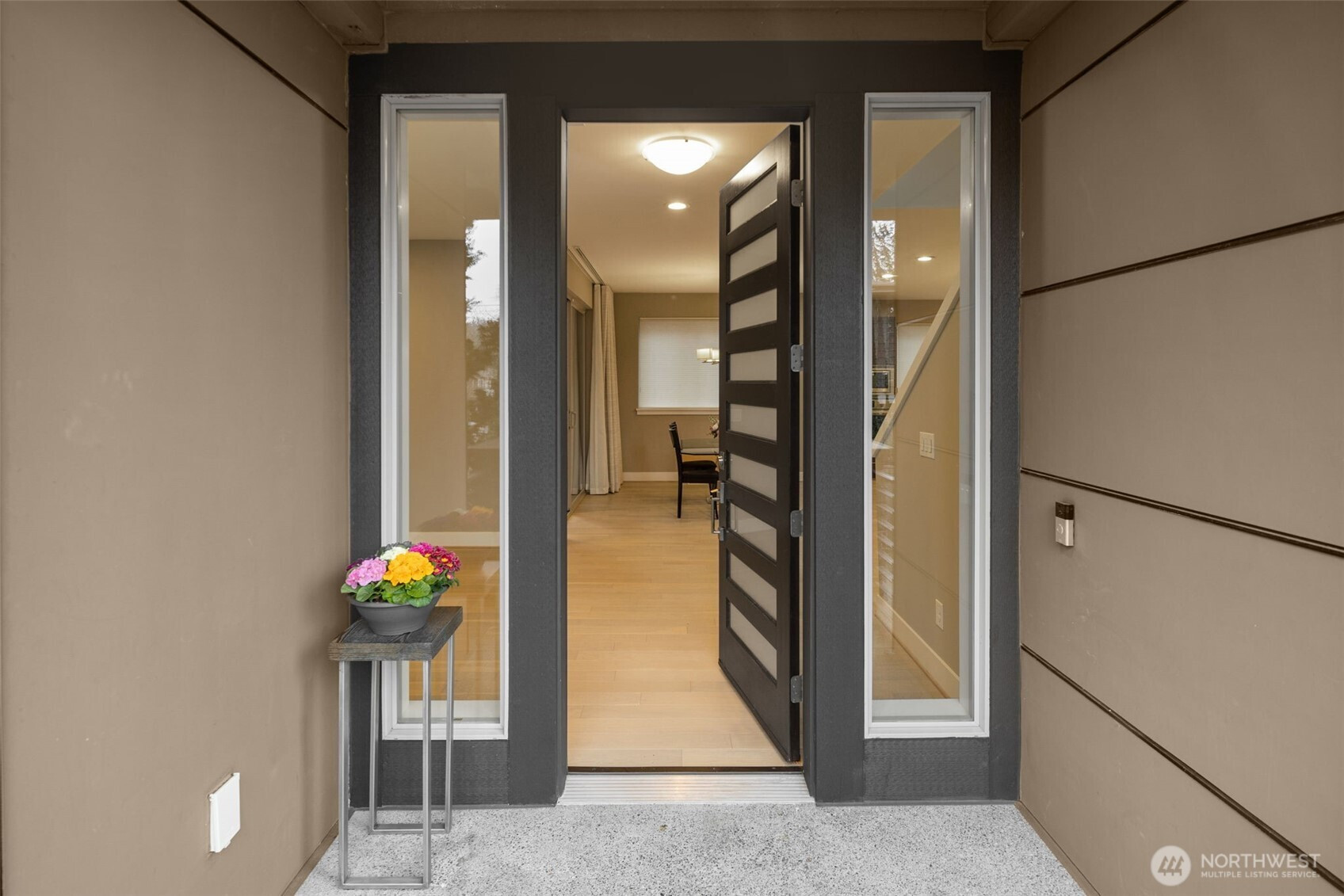 Located near Forbes Creek in a quiet cul-de-sac, this Pacific Northwest contemporary resale built in 2017 by Merit Homes showcases clean-lined architecture, privacy, & exceptional convenience. Beautiful front landscaping creates welcoming curb appeal & an outdoor-friendly lifestyle. Lightly lived in & thoughtfully designed, the home is filled with natural light & features hardwood floors throughout the main level. At its center is a chef’s kitchen with a half-moon island, quartz counters, & generous seating, perfect for everyday living. Dual sliding glass doors open to a large covered patio, creating seamless indoor-outdoor entertaining. The flexible lower level features a spacious rec room & guest suite with bath, ideal for visitors, extended stays, or conversion into a gym. Upstairs, the primary suite offers a five-piece spa bath & walk-in closet, along with two large bedrooms connected by a shared bath & a convenient laundry room. Enjoy a lifestyle location that can change your daily routine. With easy access to the Cross Kirkland Corridor, it is ideal for runners, cyclists, hikers, or evening walks. Two blocks to Alexander Graham Bell Elementary & minutes to Juanita High School, plus nearby Forbes Creek Park, Juanita Bay, & Juanita Beach Park. Totem Lake Village dining & shopping, transit park & ride, & I-405 are minutes away. Air conditioning, EV charger readiness in the garage, modern construction, & a prime Kirkland setting complete the package.