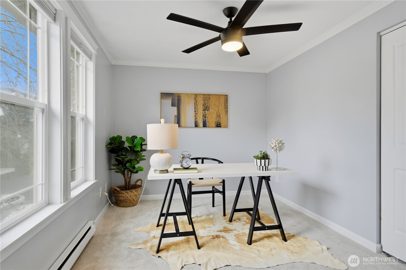 Embrace your lifestyle by design in this stunning two-story Craftsman, situated in a quiet and established community. This south-facing home fills with abundant natural light, while its warm tones create a homey and comfortable atmosphere throughout. The interior features gorgeous engineered hardwoods, new carpets, and accent paints. The oversized living room is ideal for gatherings, complemented by a dedicated dining room and a spacious chef's kitchen with quartz countertops and ample cabinetry storage, making everyday life and entertaining easy. Step directly from the kitchen into your private oasis: a large patio, a cozy firepit, and a manicured lawn. The flat and usable backyard is perfect for outdoor relaxation and gardening enthusiasts. Upstairs offers a beautiful primary bedroom that flows into an upgraded bathroom, along with three additional bedrooms. Two-car garage with workshop and RV parking! Enjoy a quick stroll to Edith Moulton Park, which offers trails, a playground, and an off-leash dog area. You are just minutes away from Totem Lake Village Shopping Center, with easy access to I-405, downtown Kirkland, and downtown Bellevue. Additional features include a new roof with a transferable warranty, the award-winning Northshore School District, and a pre-inspected status for your peace of mind.
