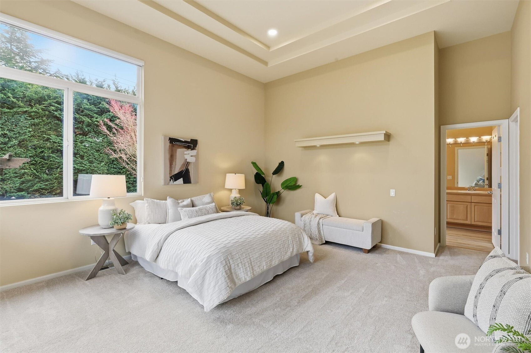 Discover refined living in this impeccably maintained Kirkland home. Elevated ceilings and an open-concept design create a light-filled, expansive feel, seamlessly blending the living, dining, and kitchen areas for effortless entertaining. The primary suite offers a private retreat, complete with a beautifully updated bath and generous walk-in closet. Outdoors, enjoy a meticulously landscaped backyard featuring a pergola, tranquil rockery waterfall, and fully fenced yard with iron gate for added privacy. Major updates include a new roof (2025), new carpet (2023), and hot water tank (2019), plus a pre-inspection for buyer confidence. Ideally located near Totem Lake Village’s premier dining and shopping and the waterfront beauty of Juanita Beach—offering comfort, elegance, and the best of Kirkland living.