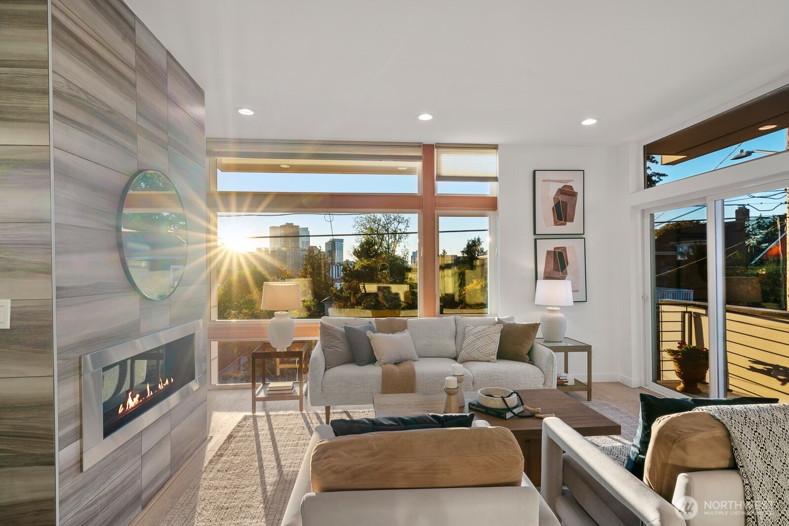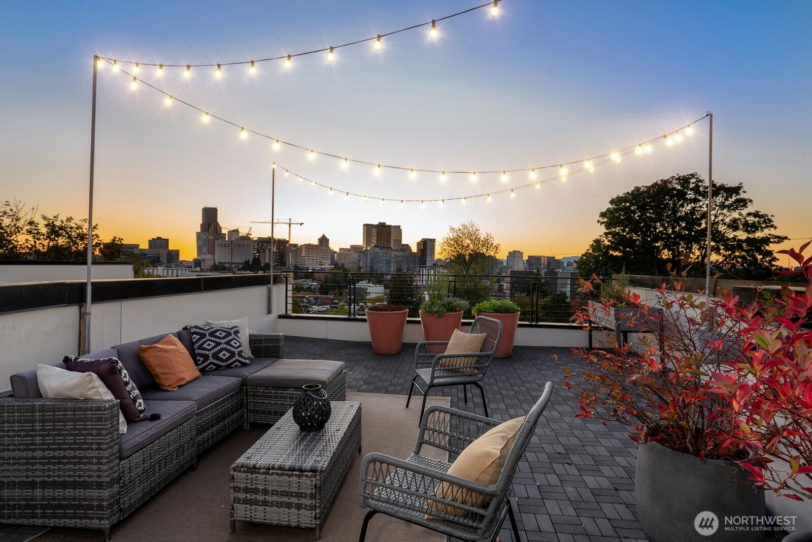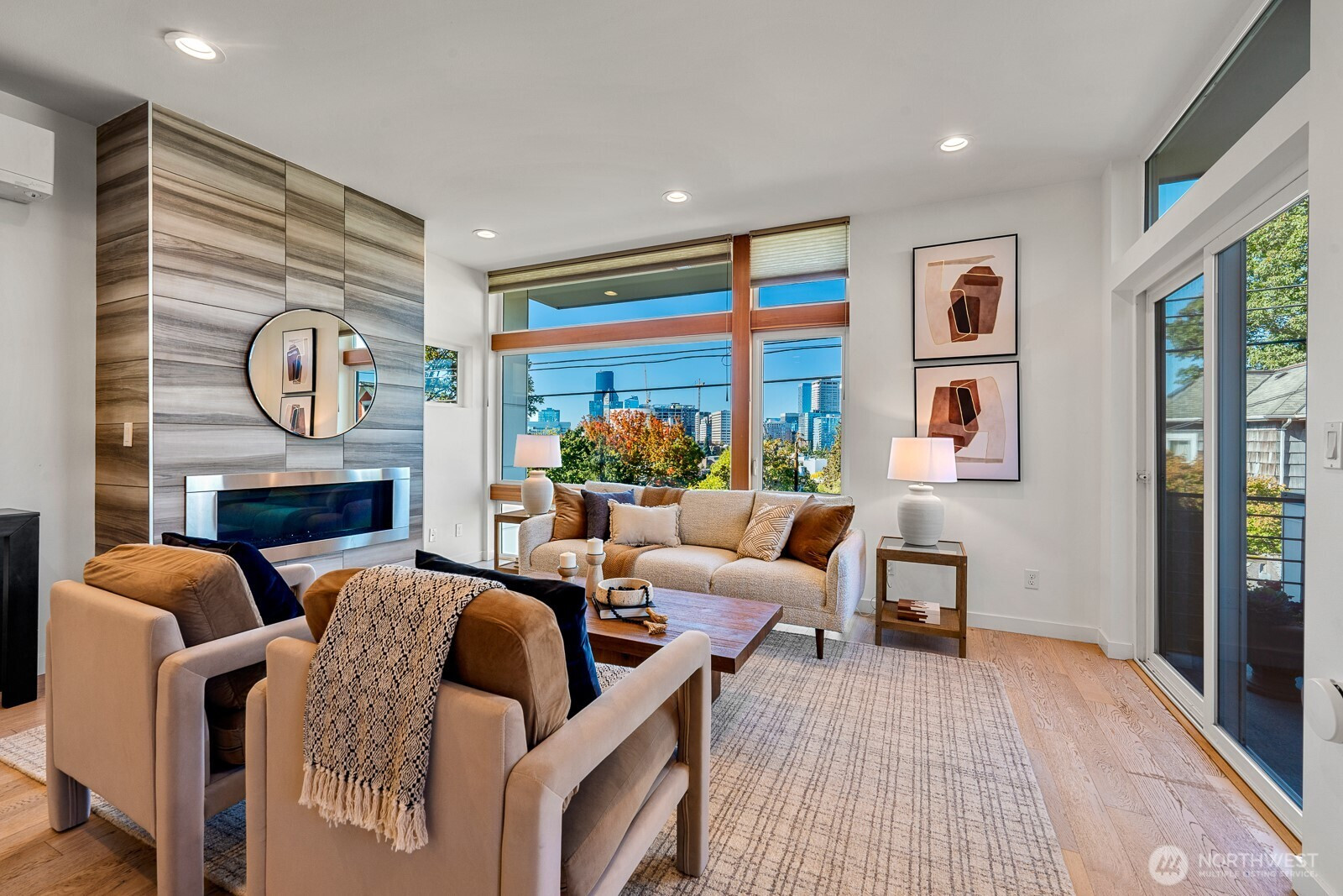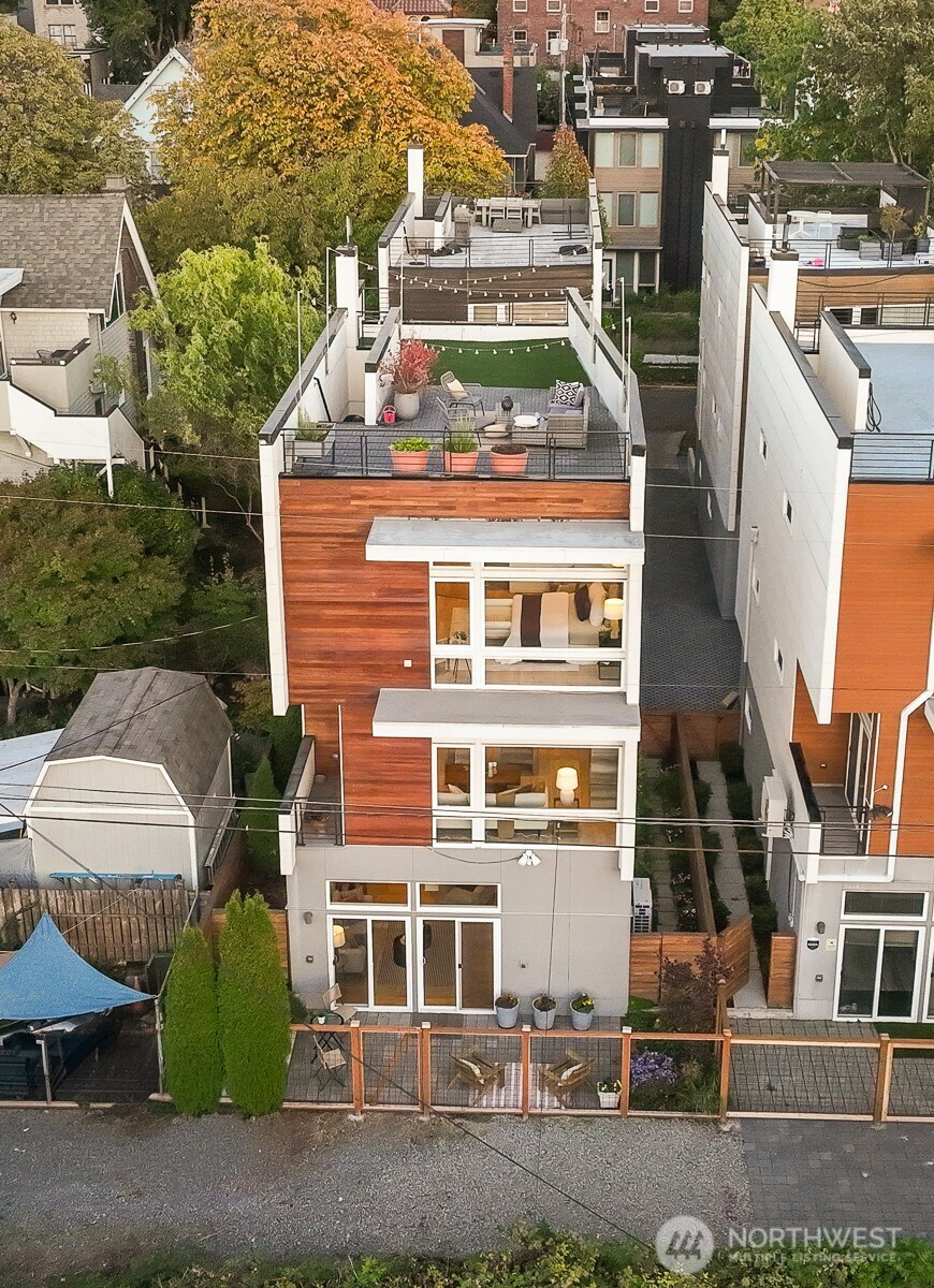 (503) 893-8874This modern, architecturally distinct stand-alone home has more than you thought you could hope for. Each space is bright and expansive. Unobstructed western views of the twinkling skyline and Olympics through walls of windows and from the breath taking roof deck. Every amenity is a delight. Each bedroom has an en-suite bath! Live in the heart of the city with remarkable spaces for entertaining. A first floor patio has easy gardens where every choice was well considered. The great room has living, kitchen, and dining that are connected yet distinct. The kitchen has recent premium appliances and a heart-of-the-home grand island. A new heat pump with AC gives year-round comfort. An attached garage, a walk score of 95, this is your happy home!