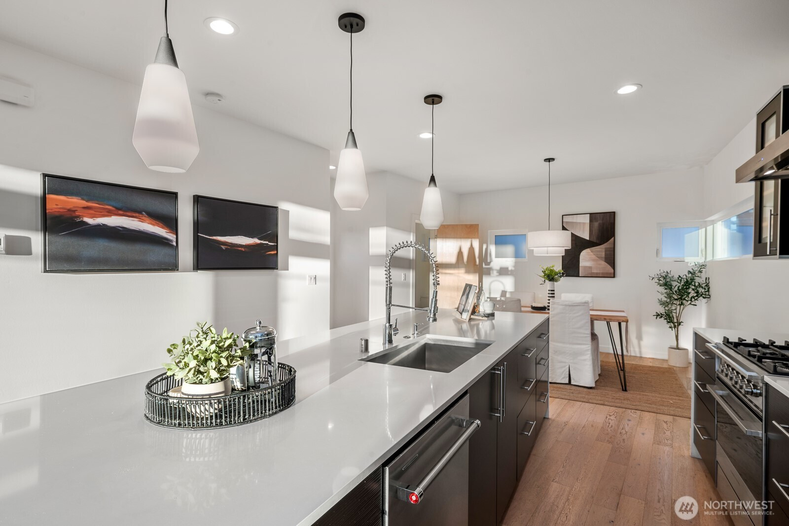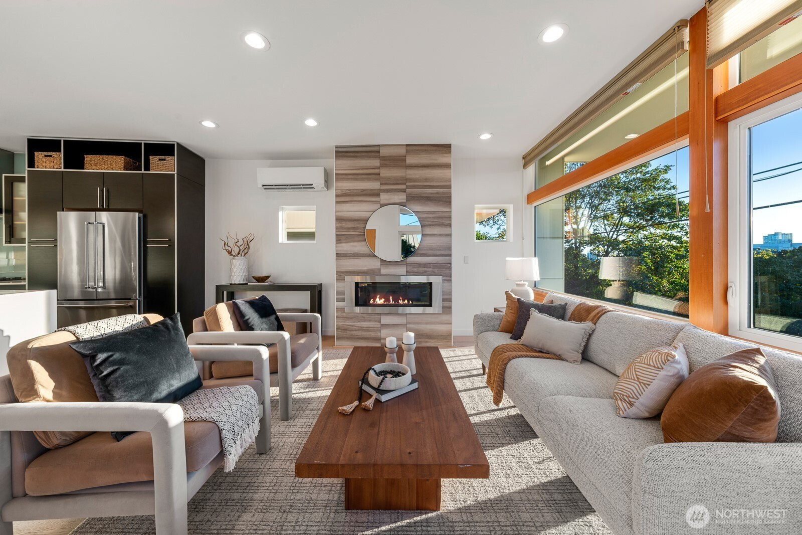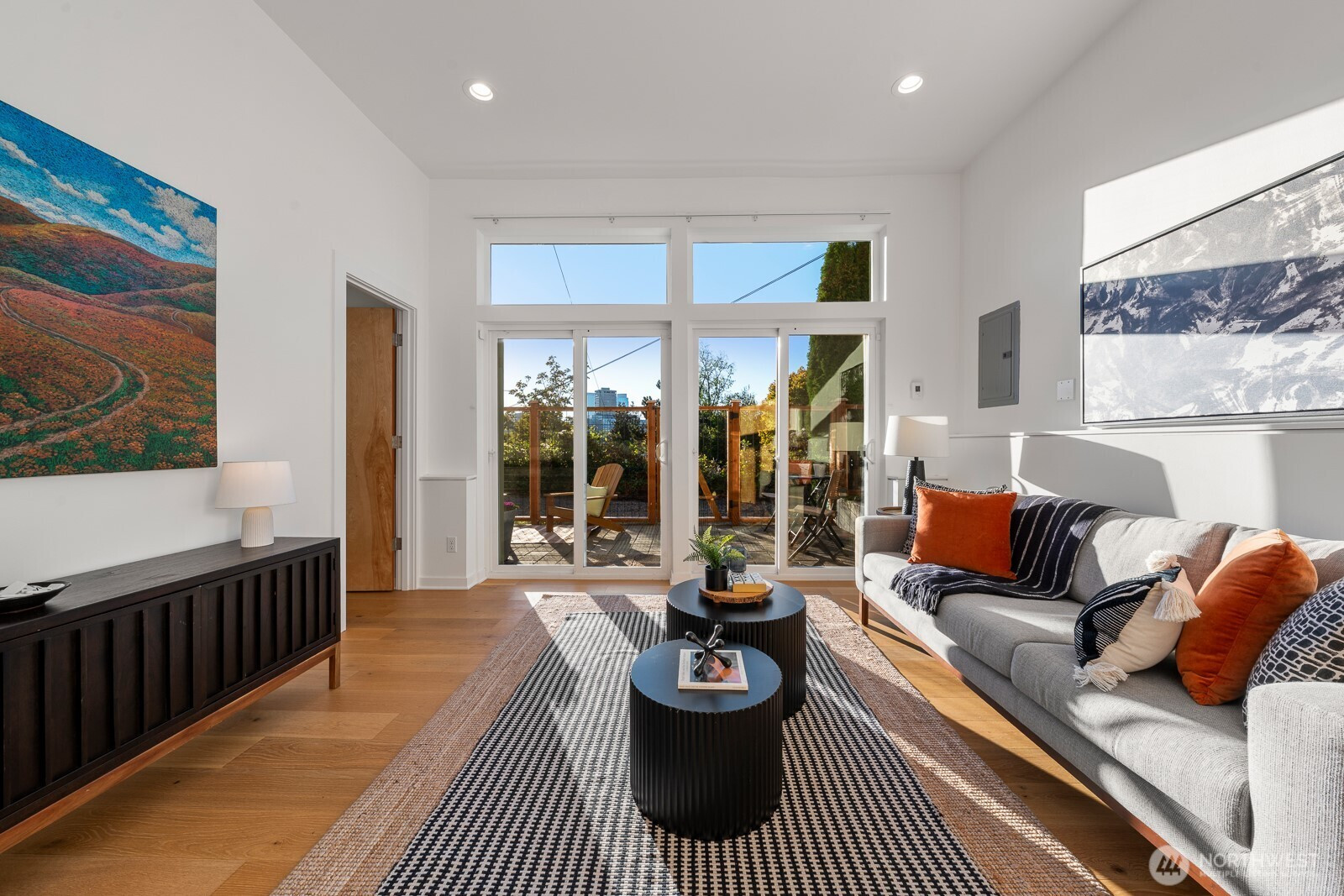 (503) 893-8874This modern, architecturally distinct stand-alone home has more than you thought you could hope for. Each space is bright and expansive. Unobstructed western views of the twinkling skyline and Olympics through walls of windows and from the breath taking roof deck. Every amenity is a delight. Each bedroom has an en-suite bath! Live in the heart of the city with remarkable spaces for entertaining. A first floor patio has easy gardens where every choice was well considered. The great room has living, kitchen, and dining that are connected yet distinct. The kitchen has recent premium appliances and a heart-of-the-home grand island. A new heat pump with AC gives year-round comfort. An attached garage, a walk score of 95, this is your happy home!