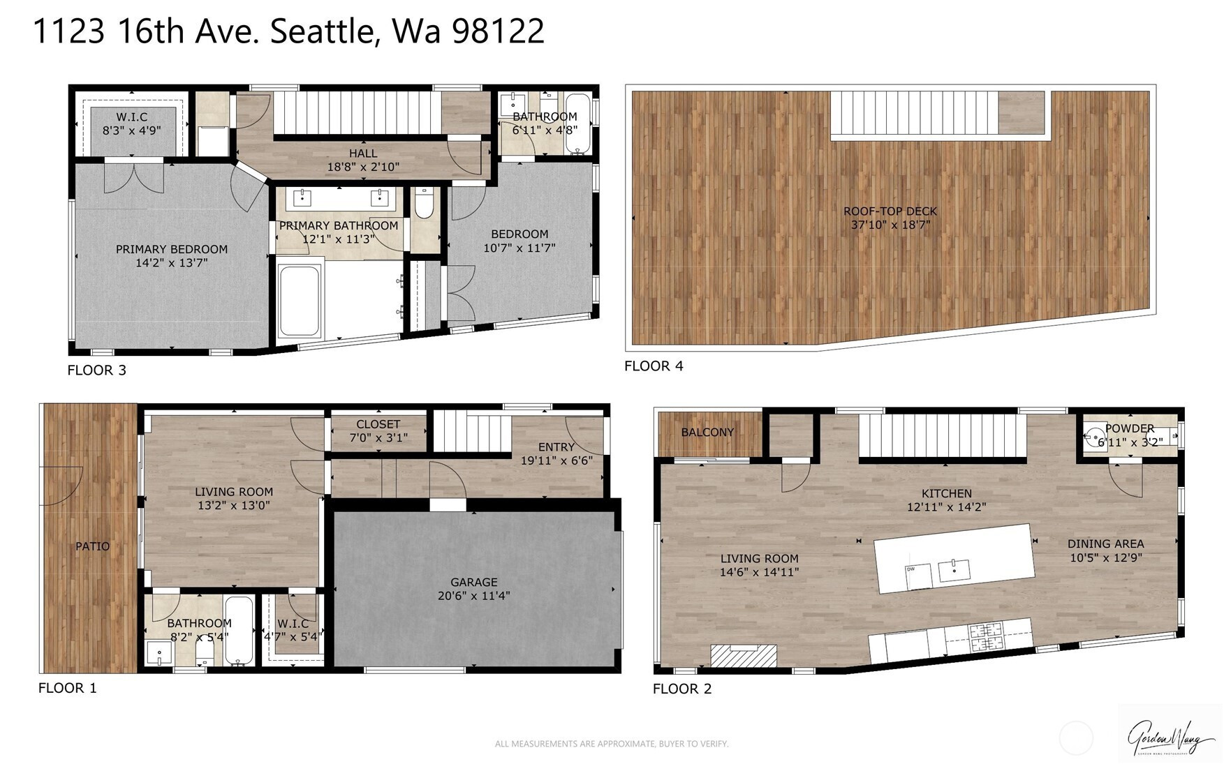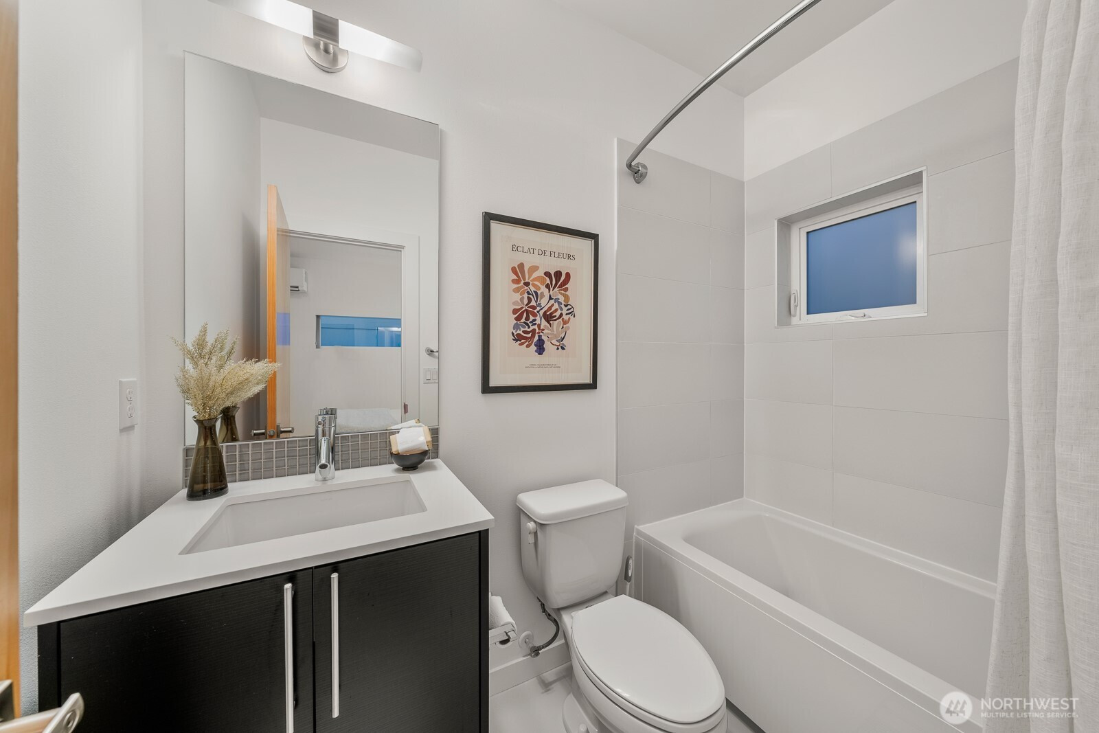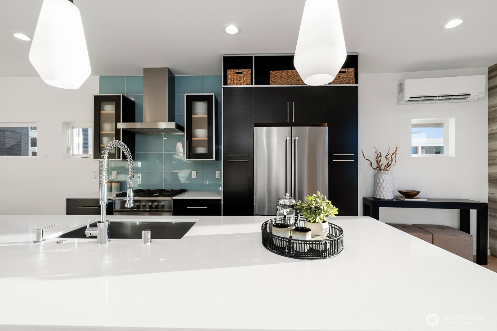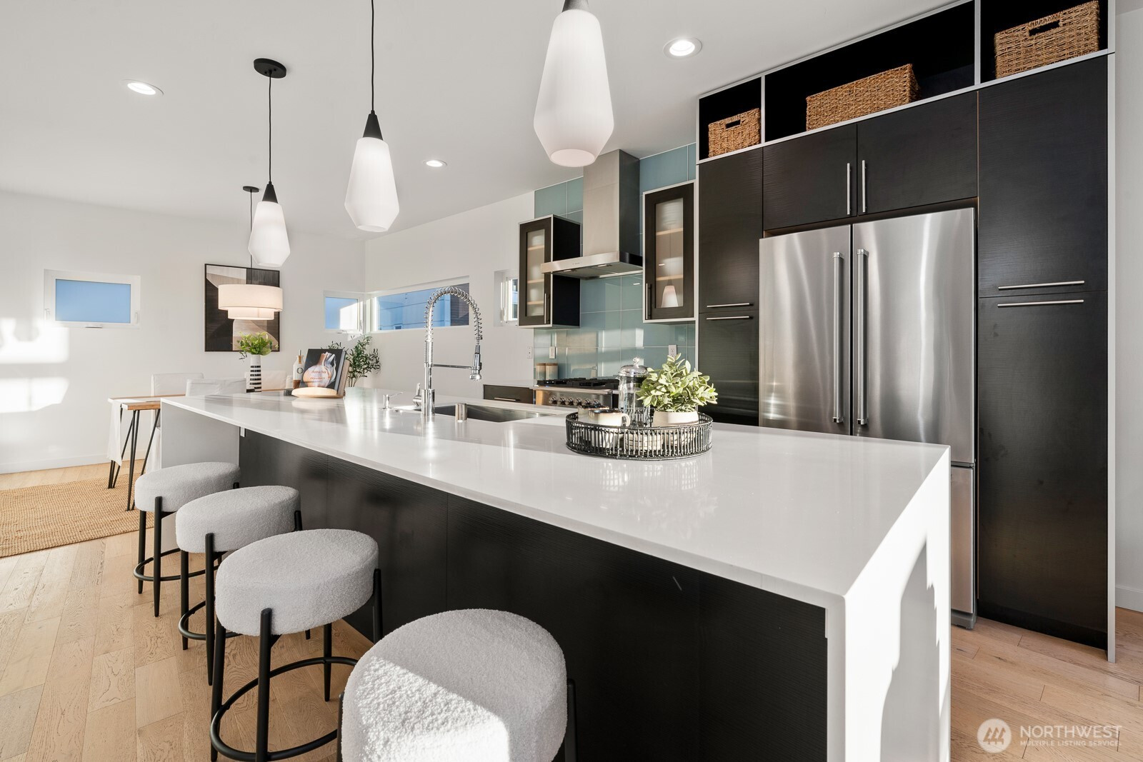 (503) 893-8874This modern, architecturally distinct stand-alone home has more than you thought you could hope for. Each space is bright and expansive. Unobstructed western views of the twinkling skyline and Olympics through walls of windows and from the breath taking roof deck. Every amenity is a delight. Each bedroom has an en-suite bath! Live in the heart of the city with remarkable spaces for entertaining. A first floor patio has easy gardens where every choice was well considered. The great room has living, kitchen, and dining that are connected yet distinct. The kitchen has recent premium appliances and a heart-of-the-home grand island. A new heat pump with AC gives year-round comfort. An attached garage, a walk score of 95, this is your happy home!