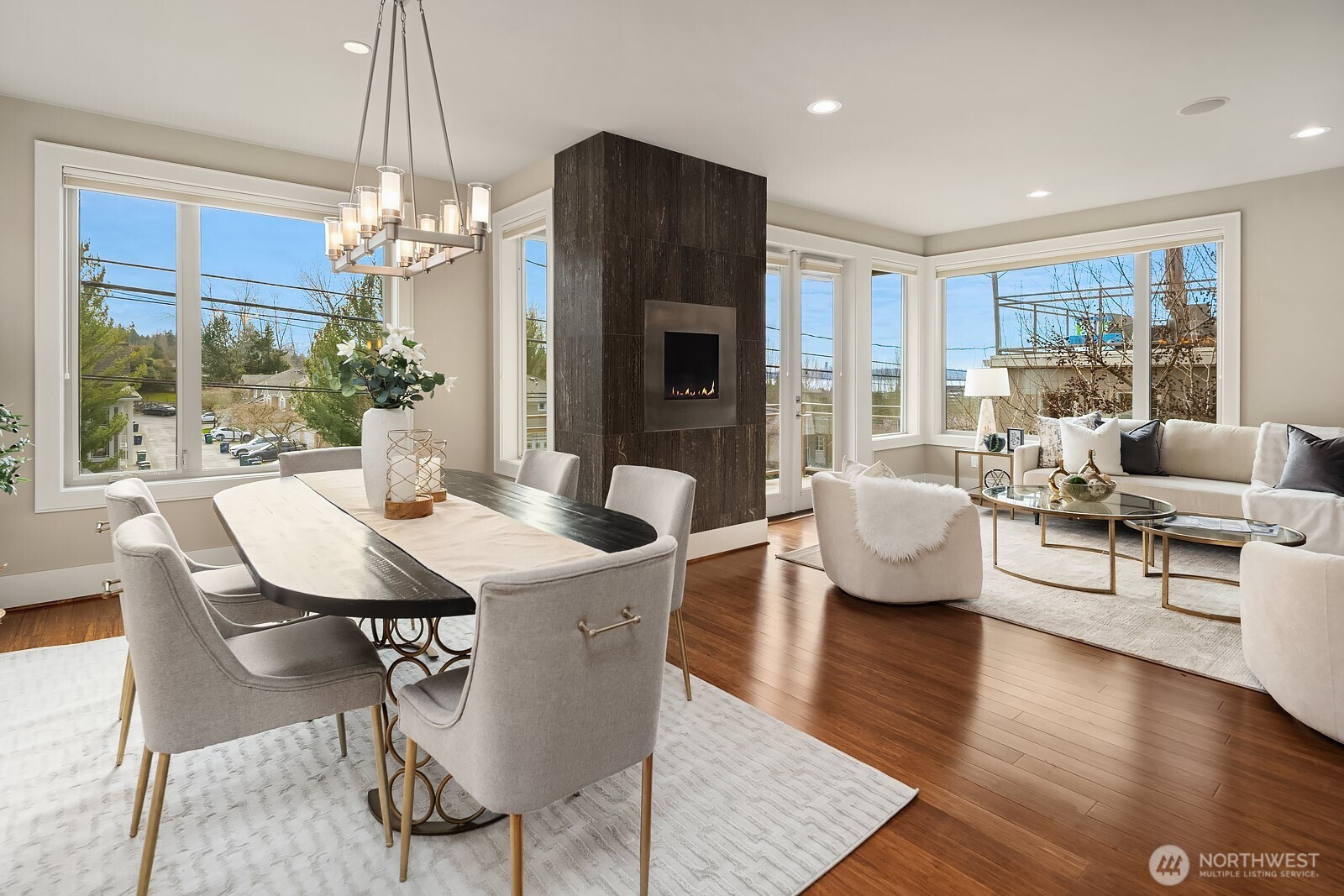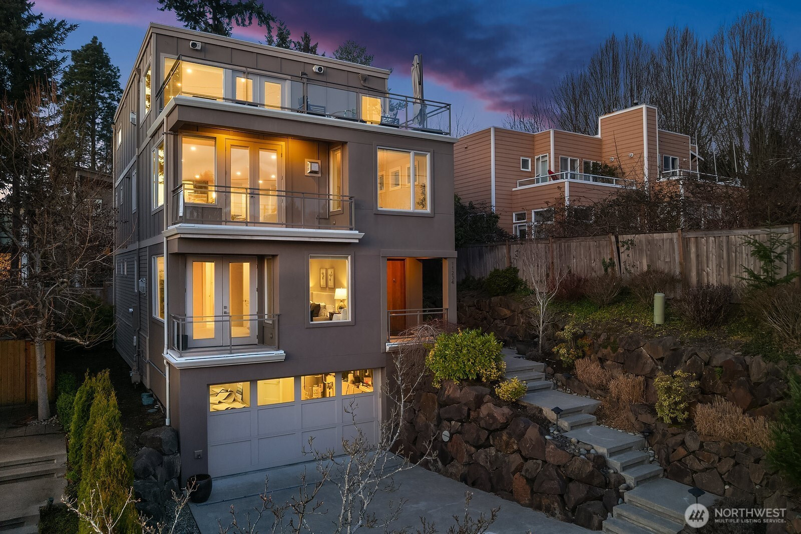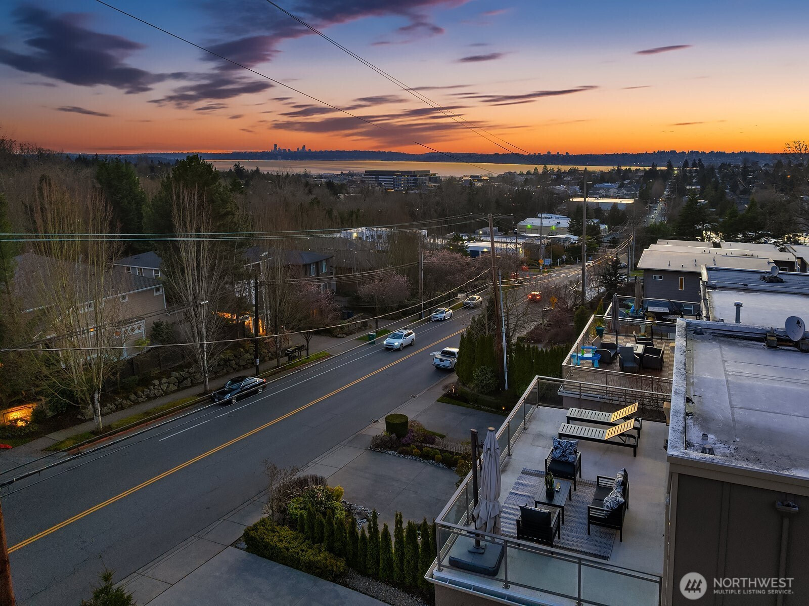Enjoy lake, mountain and city views from multiple levels of this gorgeous Kirkland home with nearly 4,000 square feet of luxurious living. Warm and inviting great room seamlessly integrates the dining room, family room and chef's kitchen. Entry level primary suite with gas fireplace, private view balcony, ensuite bath and walk-in closet. Just down the hall is a second ensuite bedroom or home office with patio access. Upper-level recreation room with incredible sunset views opens to an extra large balcony, perfect for relaxation or entertaining. Home office, a 4th bedroom and full bath complete the space. Lower-level media, bonus room or home gym. Built-in speakers throughout. Extensive storage and wonderful outdoor spaces on every level. Central A/C ensures year-round comfort. Oversized garage accommodates 3 vehicles. Elevator provides access to all floors of the home, creating a multi-generational opportunity. Desirable location near shopping, dining, the Cross Kirkland Corridor trail, Kirkland Urban and top-rated schools. Commuting is a breeze with nearby I-405 and the upcoming 85th Street Transit Center. Welcome home!