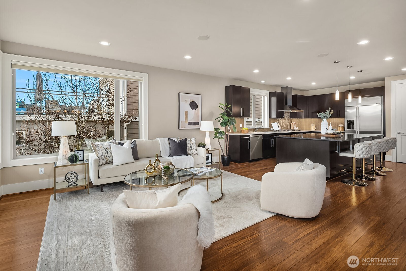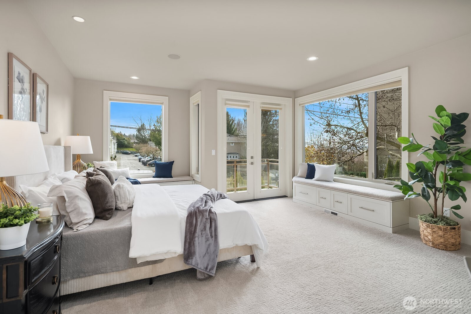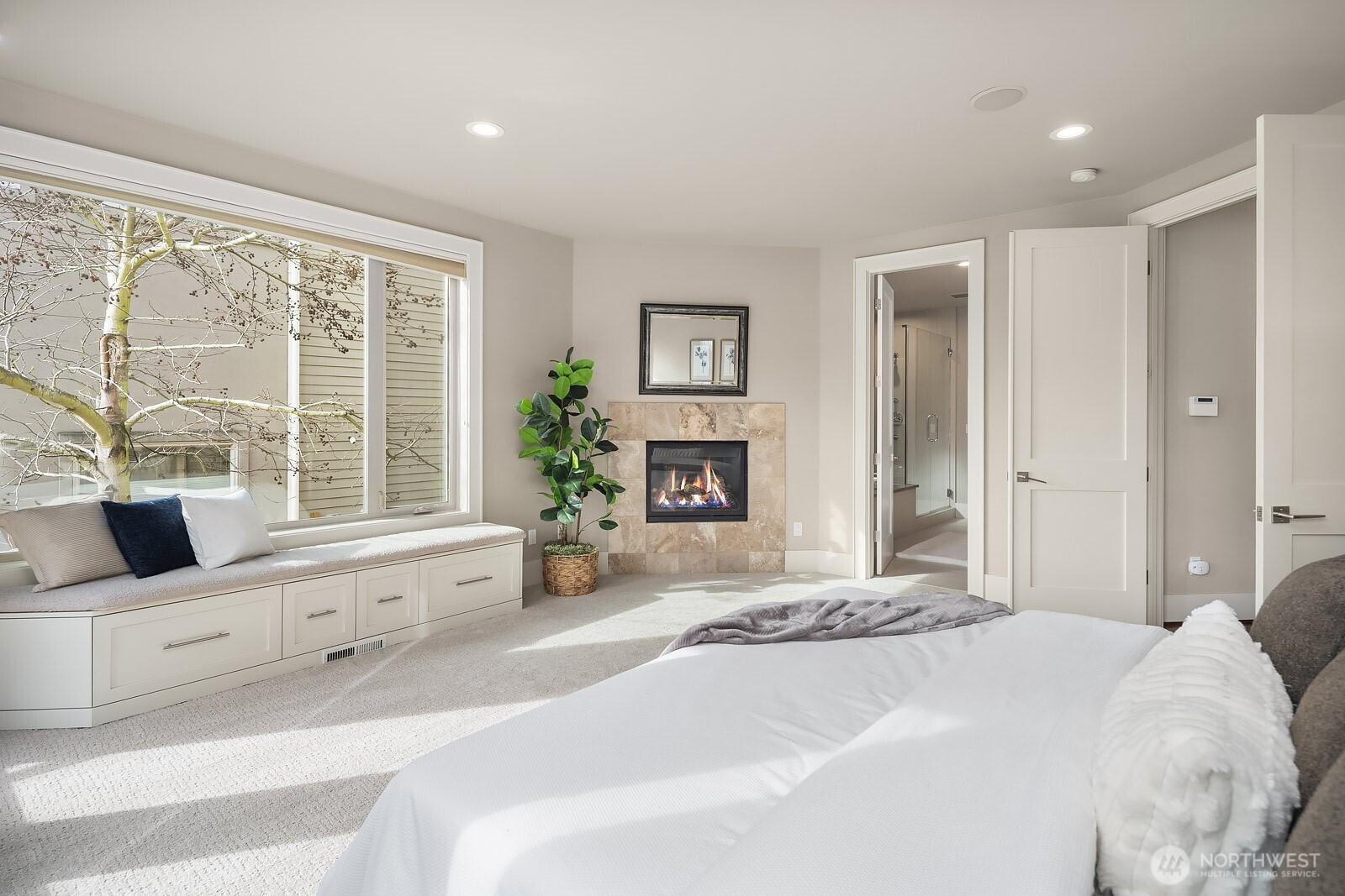 Enjoy lake, mountain and city views from multiple levels of this gorgeous Kirkland home with nearly 4,000 square feet of luxurious living. Warm and inviting great room seamlessly integrates the dining room, family room and chef's kitchen. Entry level primary suite with gas fireplace, private view balcony, ensuite bath and walk-in closet. Just down the hall is a second ensuite bedroom or home office with patio access. Upper-level recreation room with incredible sunset views opens to an extra large balcony, perfect for relaxation or entertaining. Home office, a 4th bedroom and full bath complete the space. Lower-level media, bonus room or home gym. Built-in speakers throughout. Extensive storage and wonderful outdoor spaces on every level. Central A/C ensures year-round comfort. Oversized garage accommodates 3 vehicles. Elevator provides access to all floors of the home, creating a multi-generational opportunity. Desirable location near shopping, dining, the Cross Kirkland Corridor trail, Kirkland Urban and top-rated schools. Commuting is a breeze with nearby I-405 and the upcoming 85th Street Transit Center. Welcome home!