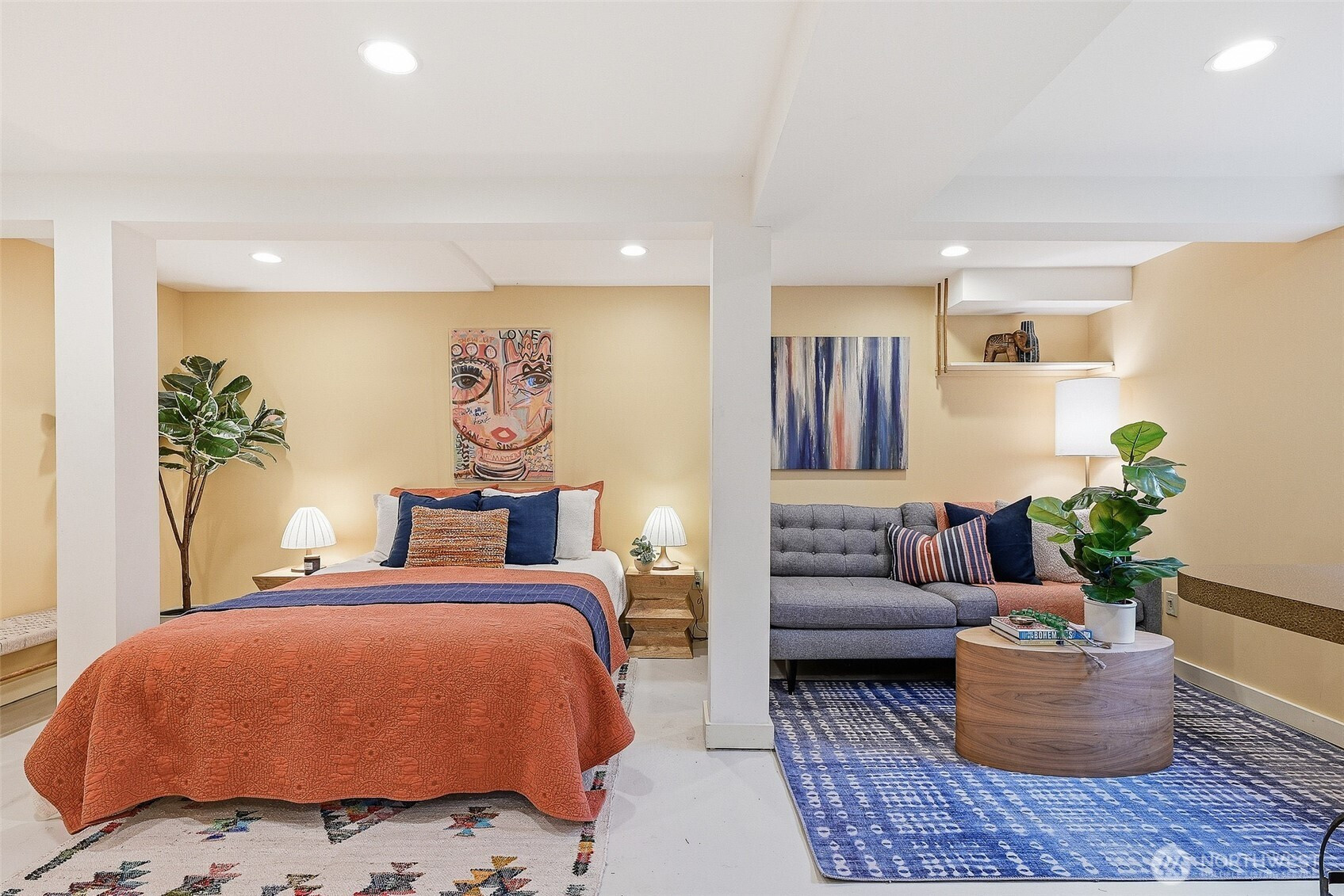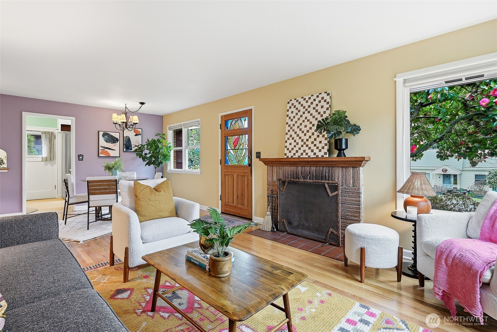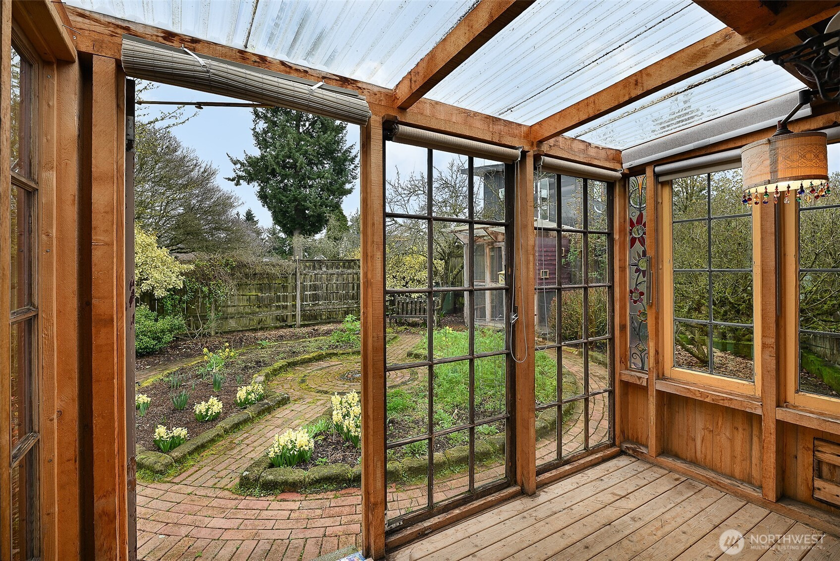 Sweet sweet sweet 2-bed 1-bath up with pleasing basement apartment. Sunny living room and dining room. Adorable kitchen and 2 large and light main floor bedrooms. Artistic touches throughout the house including fabulous stained-glass. Magical private backyard with garage converted to project studio. Handy alley. There is further room to grow in the big basement. Hop on the interurban trail for a jog or a bike commute! Great walking neighborhood and very convenient to transit and shopping. Updated Plumbing, Electrical and earthquake retrofitted! Please see video walkthrough.