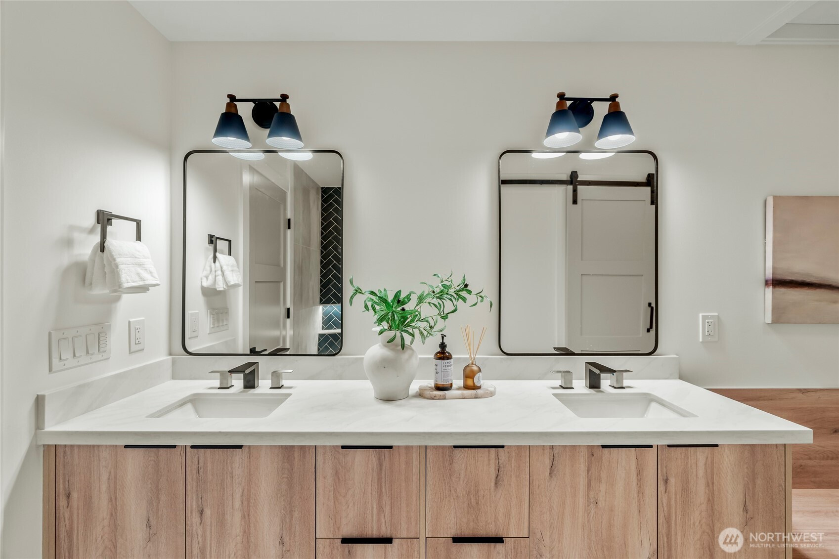 Standout new construction featuring elevated design, premium finishes, and a flexible layout perfectly suited for modern living. This thoughtfully designed home offers 3 bedrooms plus a versatile main-level 4th bedroom/flex space or office with a convenient ¾ bath, ideal for guests or remote work. The chef’s kitchen features custom cabinetry, quartz countertops, and gourmet appliances, opening to a bright and spacious living area with soaring ceilings, a dramatic fireplace feature wall, and stylish entertainment bar—perfect for hosting and everyday living. Upstairs, retreat to the luxurious primary suite with a spa-inspired bath, expansive tiled walk-in shower, heated floors, and a custom walk-in closet. Two additional bedrooms share a beautifully finished full bath with designer tile details, while upper-level laundry adds everyday convenience. Enjoy a fully fenced backyard with space to relax, play, and entertain, plus an EV ready 2-car garage, upgraded lighting and modern finishes. A rare blend of style, comfort, and thoughtful craftsmanship throughout.