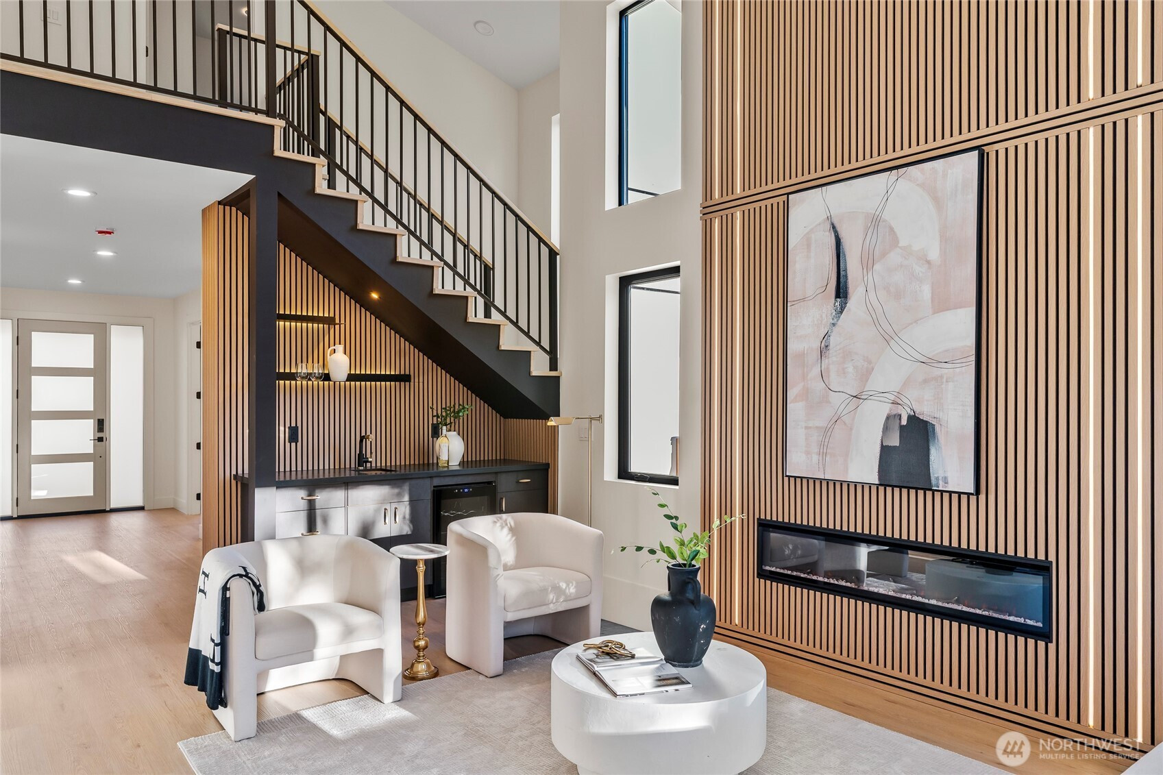 Standout new construction featuring elevated design, premium finishes, and a flexible layout perfectly suited for modern living. This thoughtfully designed home offers 3 bedrooms plus a versatile main-level 4th bedroom/flex space or office with a convenient ¾ bath, ideal for guests or remote work. The chef’s kitchen features custom cabinetry, quartz countertops, and gourmet appliances, opening to a bright and spacious living area with soaring ceilings, a dramatic fireplace feature wall, and stylish entertainment bar—perfect for hosting and everyday living. Upstairs, retreat to the luxurious primary suite with a spa-inspired bath, expansive tiled walk-in shower, heated floors, and a custom walk-in closet. Two additional bedrooms share a beautifully finished full bath with designer tile details, while upper-level laundry adds everyday convenience. Enjoy a fully fenced backyard with space to relax, play, and entertain, plus an EV ready 2-car garage, upgraded lighting and modern finishes. A rare blend of style, comfort, and thoughtful craftsmanship throughout.