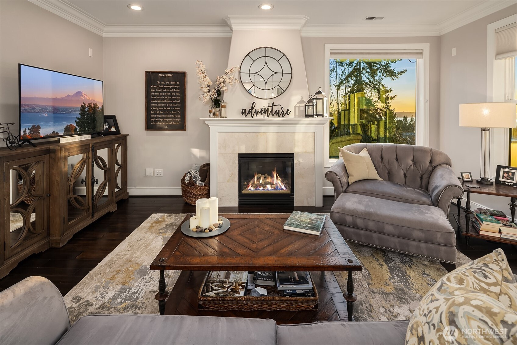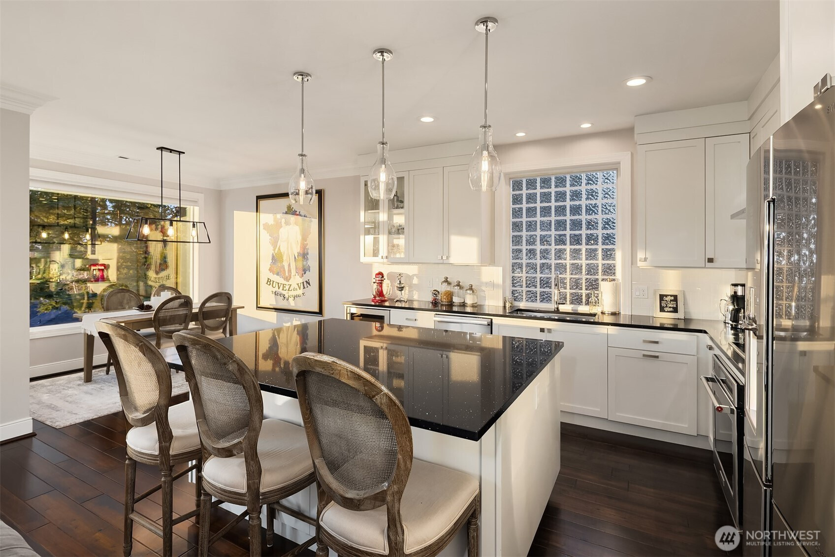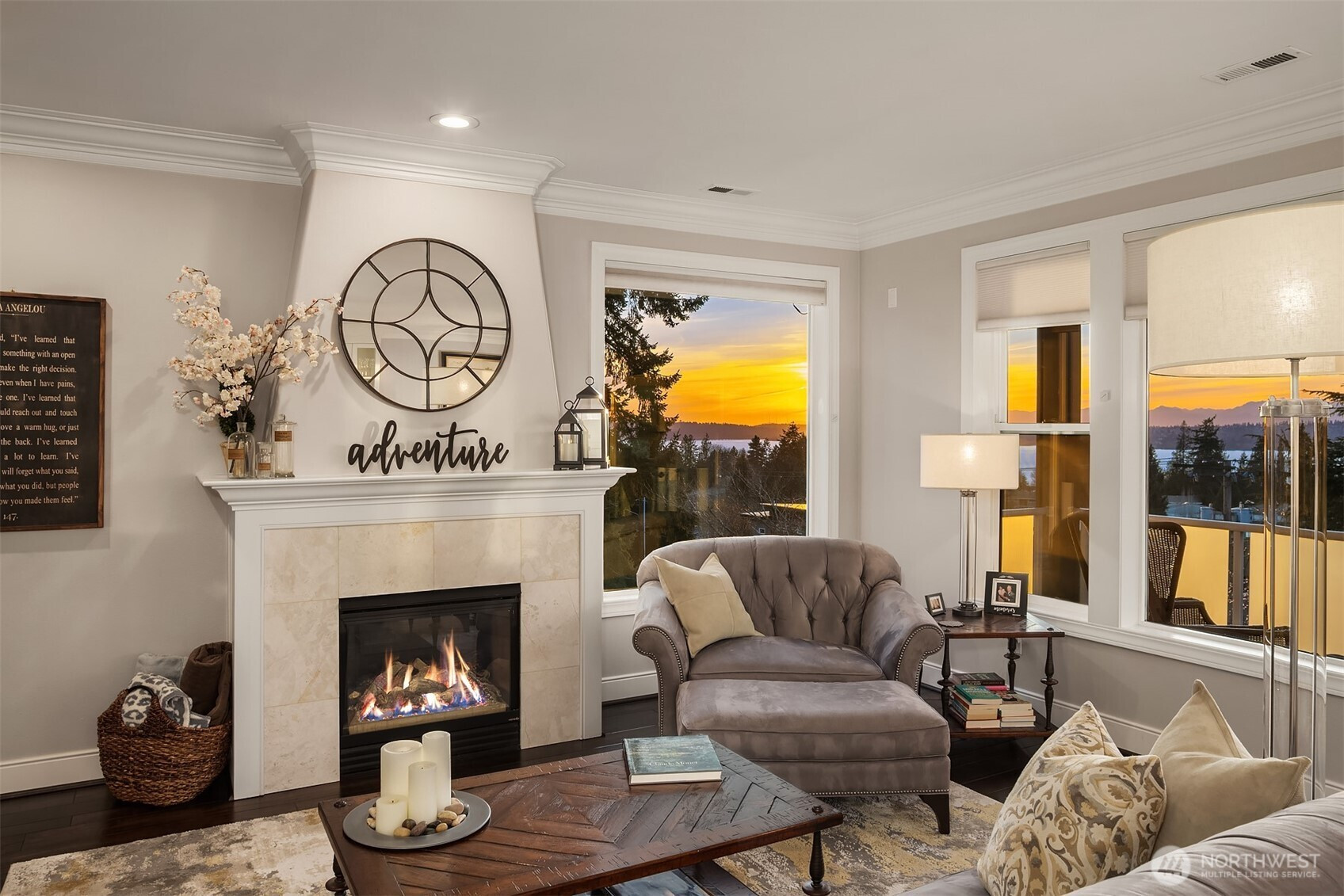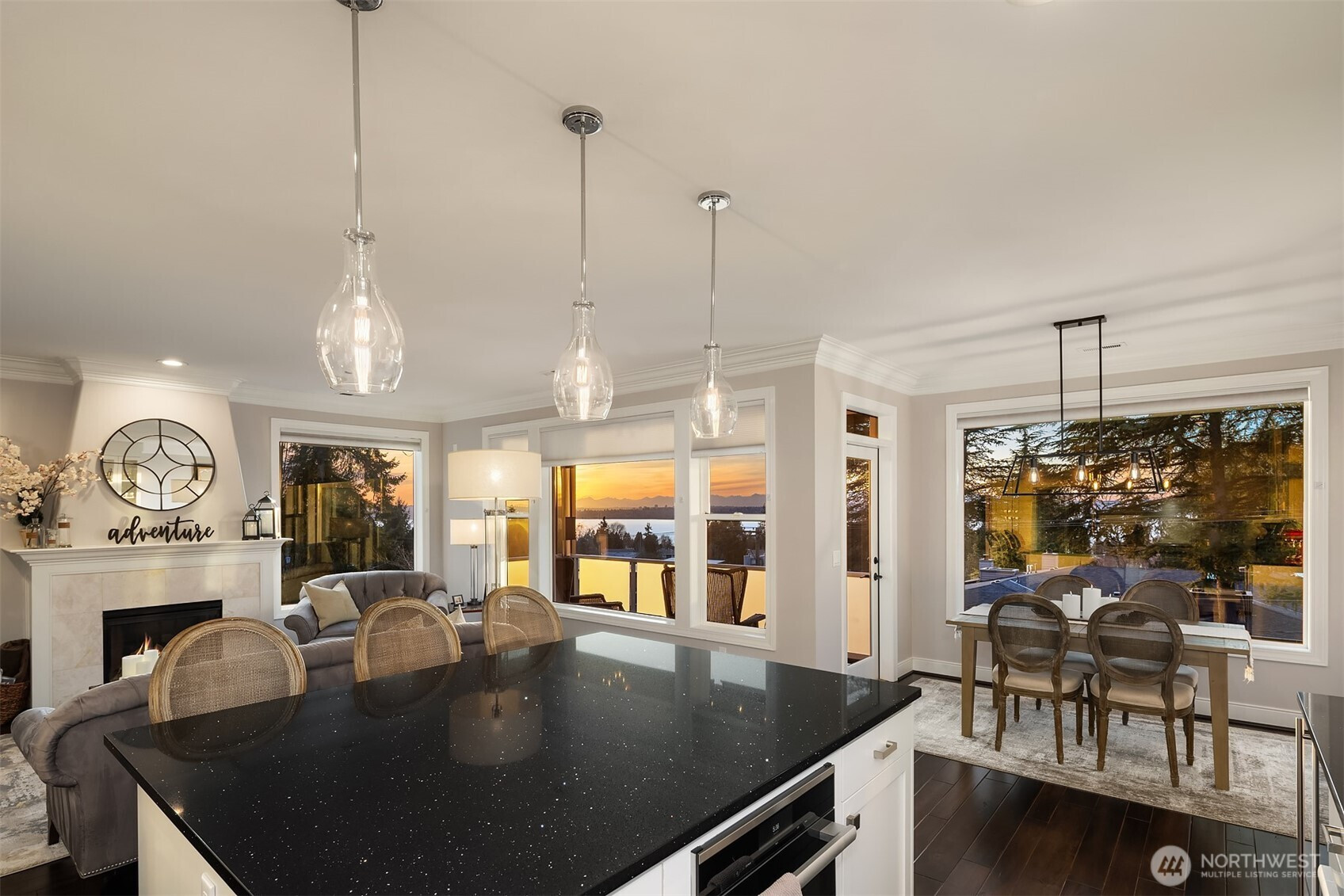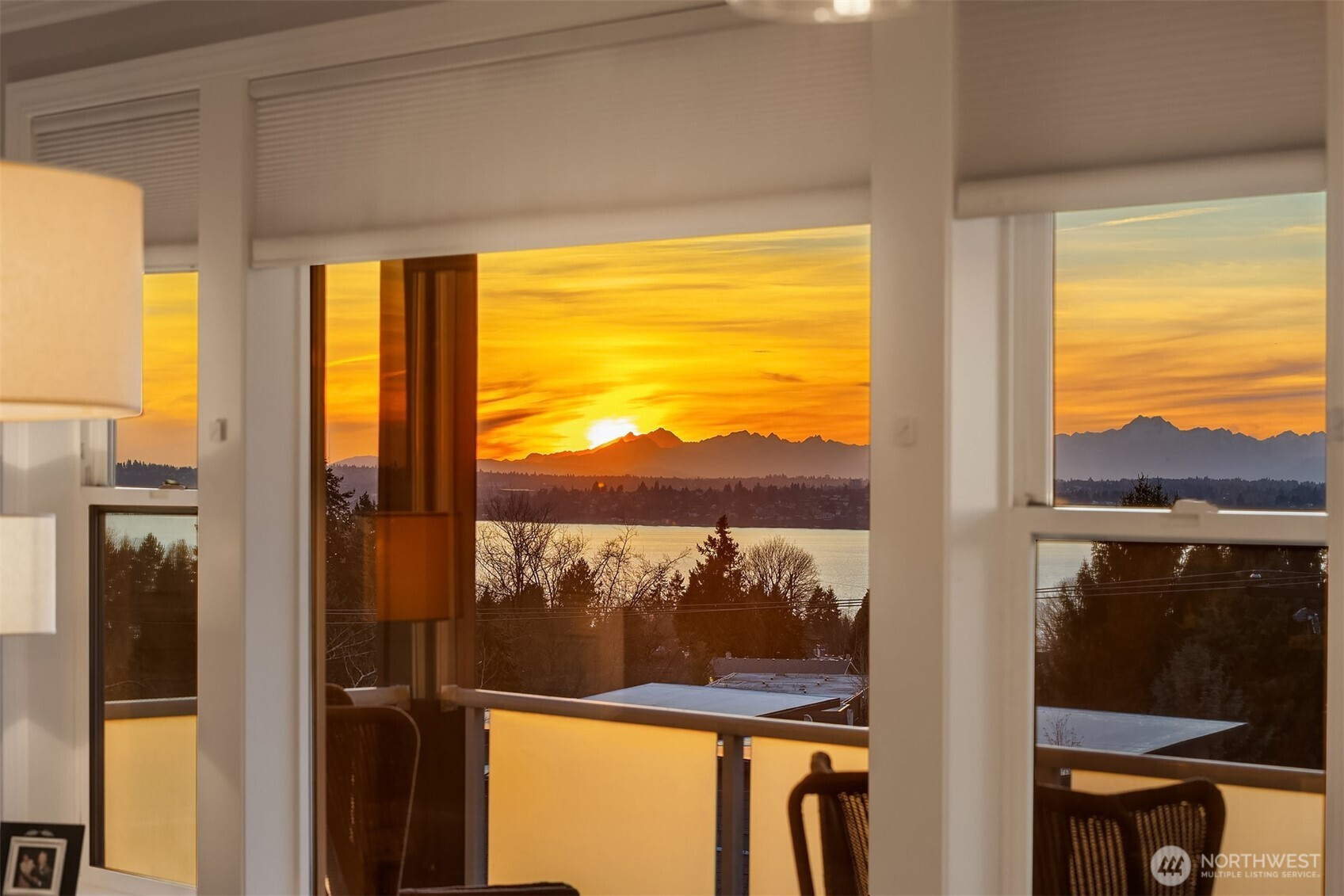Dreamy sunsets sparkle off the lake from this top floor Houghton condo. Warm and inviting finishes draw you in to a sunlit great room. The family room with gas fireplace, dining room and beautifully appointed chef's kitchen all enjoy large picture windows that flood the interior with natural light. Spacious view deck for grilling or relaxing. Luxurious primary with a large walk-in closet and ensuite 5-piece bath featuring freestanding tub and tile shower surround with frameless glass. Second bedroom with walk-in closet and adjacent full bath. Spacious utility room includes full size washer & dryer, linen closet & hanging storage. Newer, efficient hydronic heat pump system & central A/C. Tandem garage with parking for 2, plus massive storage room. Quick and easy freeway access and convenient nearby transit. Blocks to Google & Met Market and just minutes to the Kirkland waterfront or downtown Bellevue. A rare opportunity within this boutique community for those seeking comfort, convenience and location!
