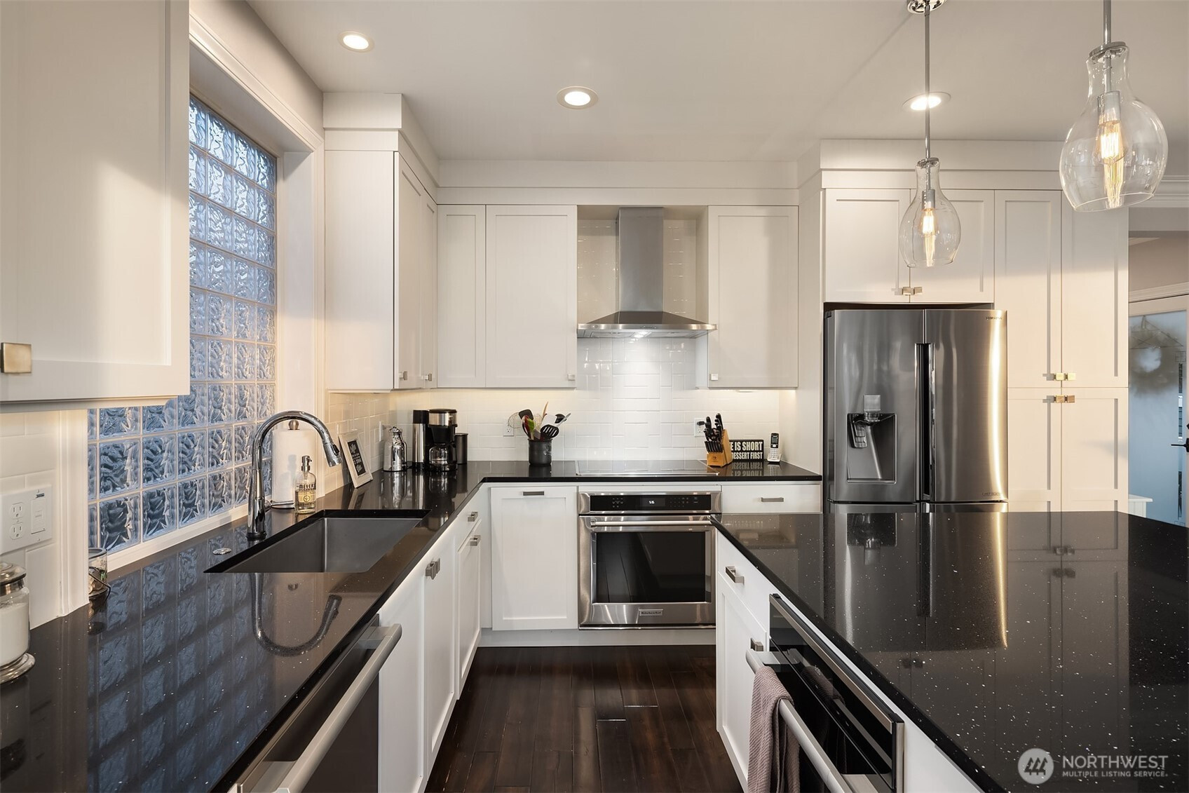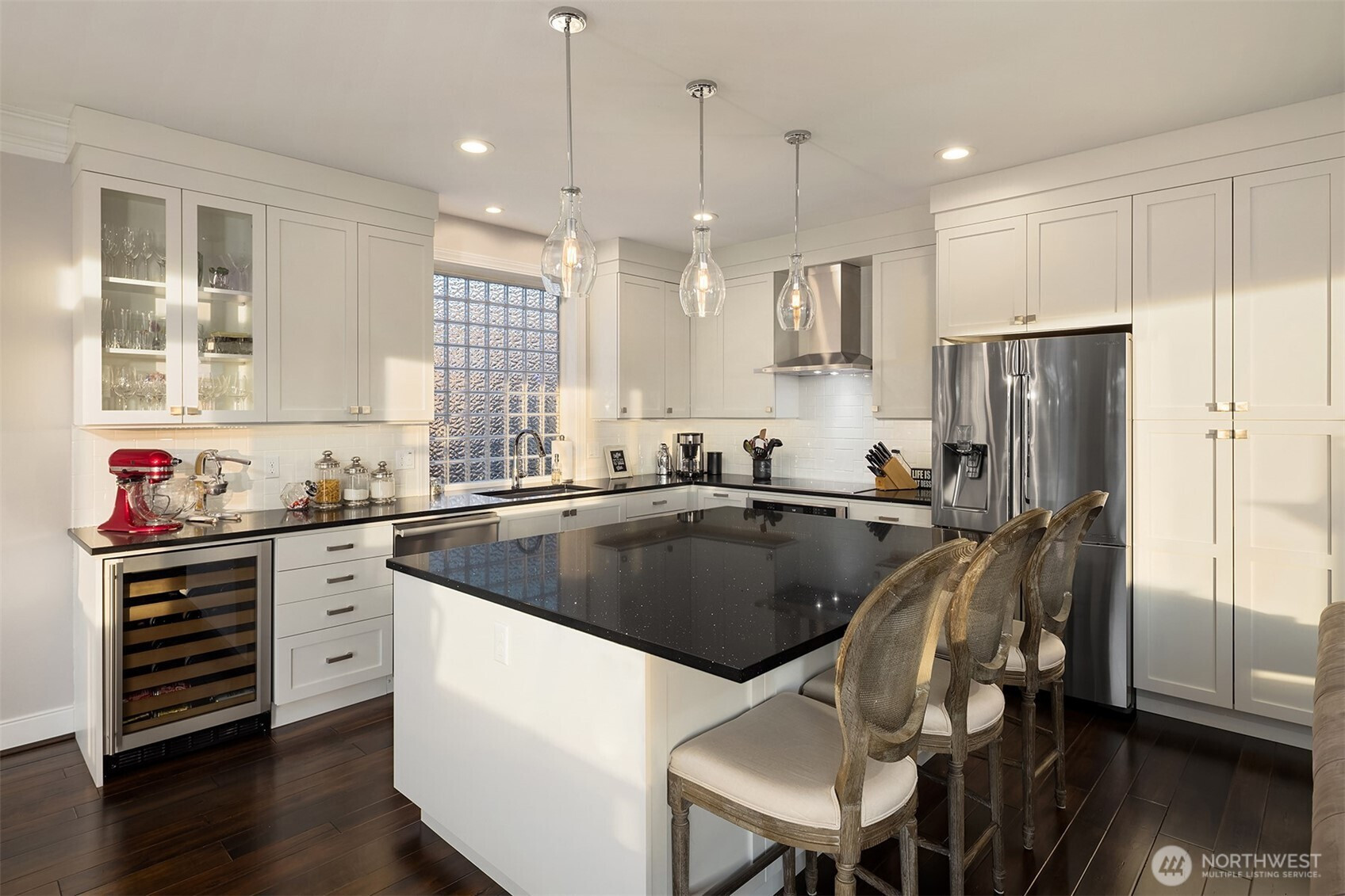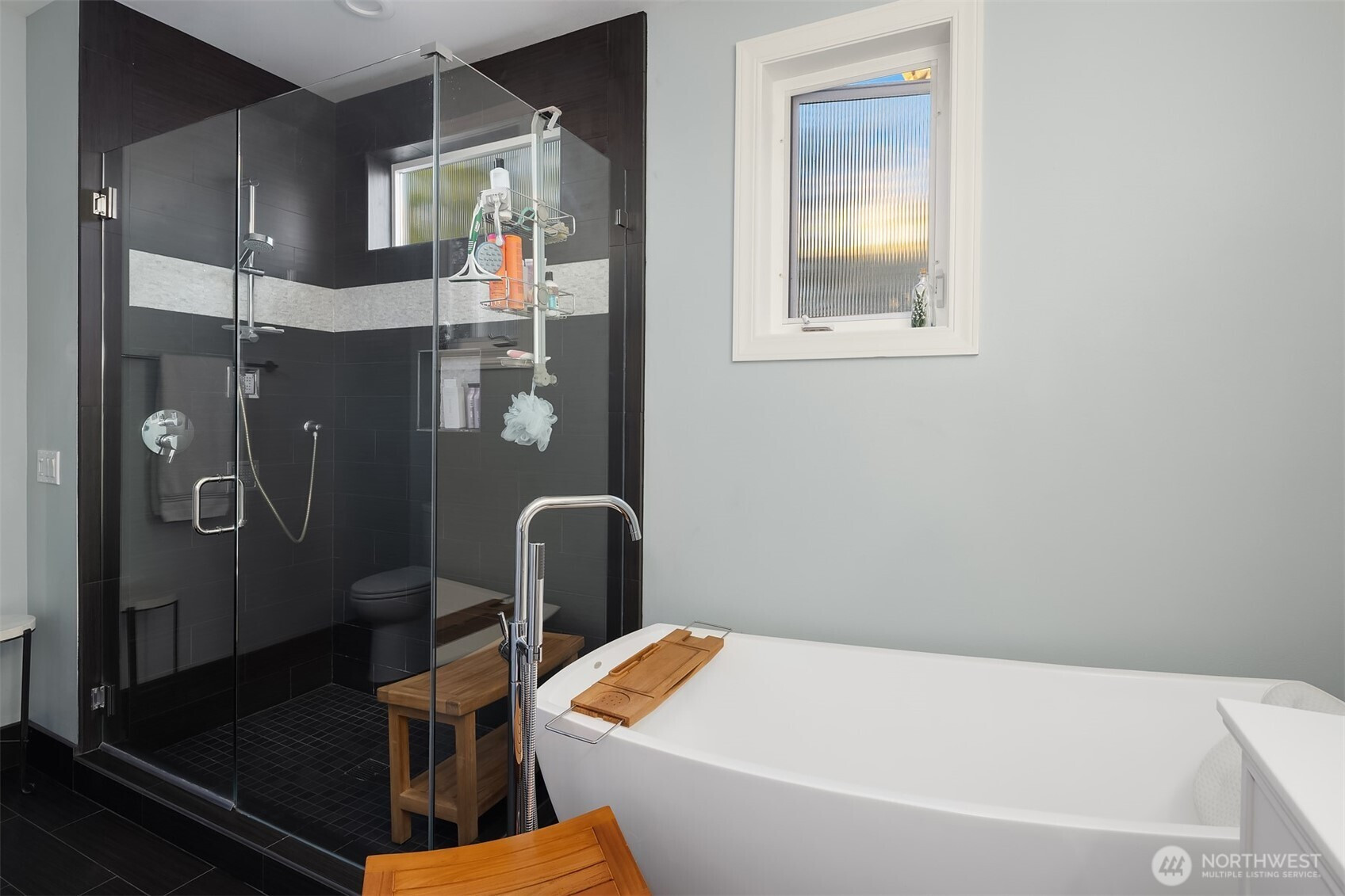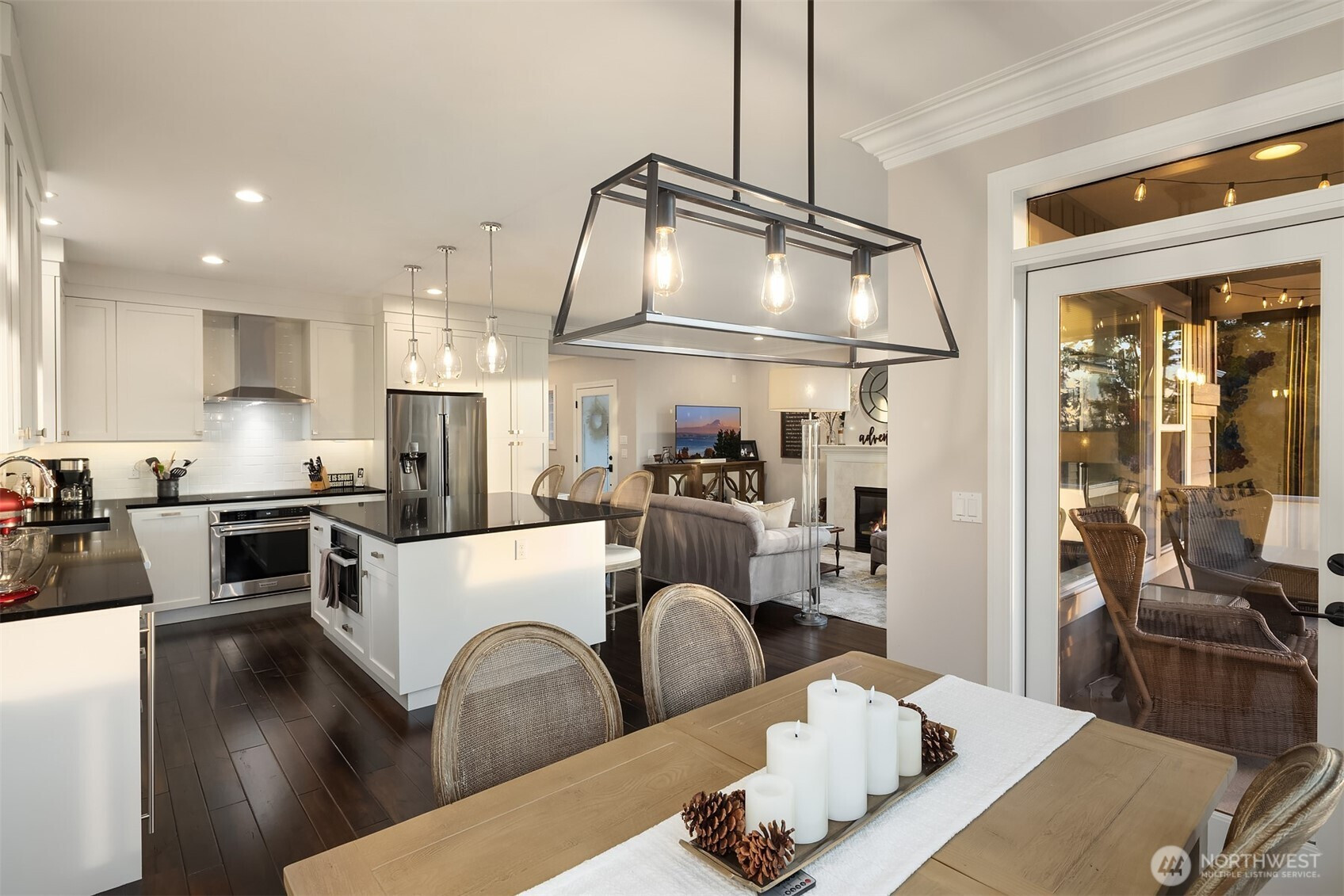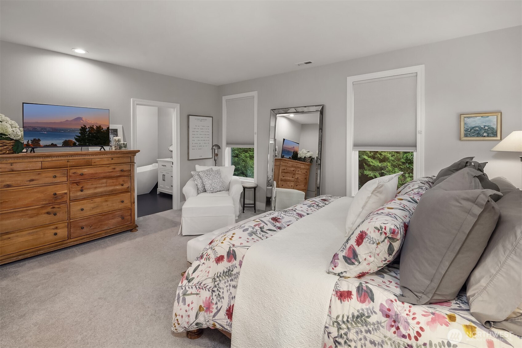 Dreamy sunsets sparkle off the lake from this top floor Houghton condo. Warm and inviting finishes draw you in to a sunlit great room. The family room with gas fireplace, dining room and beautifully appointed chef's kitchen all enjoy large picture windows that flood the interior with natural light. Spacious view deck for grilling or relaxing. Luxurious primary with a large walk-in closet and ensuite 5-piece bath featuring freestanding tub and tile shower surround with frameless glass. Second bedroom with walk-in closet and adjacent full bath. Spacious utility room includes full size washer & dryer, linen closet & hanging storage. Newer, efficient hydronic heat pump system & central A/C. Tandem garage with parking for 2, plus massive storage room. Quick and easy freeway access and convenient nearby transit. Blocks to Google & Met Market and just minutes to the Kirkland waterfront or downtown Bellevue. A rare opportunity within this boutique community for those seeking comfort, convenience and location!