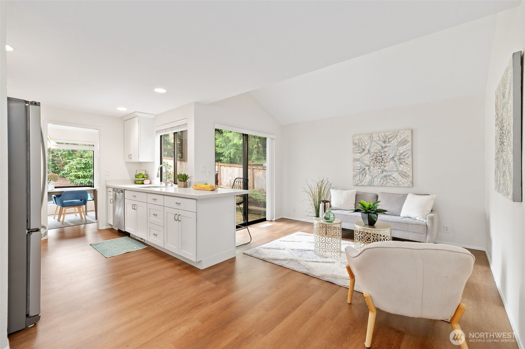 Privacy abounds on a quiet, dead end street, this one level home has it all! Beautiful curb appeal, easy parking w/ an attached 2 car garage at the font of the house + driveway. This one-story home boasts plenty of natural light, circular floorplan, oversized windows & multiple slider doors to an oasis of a back yard. Feels rural right in the city close to transit and shopping and a commuters dream. Spacious living room w/ wood burning fireplace & formal dining room. Newer kitchen w/ white cabinets, quartz countertops, undermount sink, full height glass tile backsplash & stainless steel appliances with smooth top range. Adjoining family room w/another slider to the backyard + convenient laundry. Primary bedroom features a 3rd sliding door to the expansive back patio w/ hot tub hookups, perfect for enjoying your morning coffee. Attached updated full primary bathroom with tub/shower. Two additional bedrooms and updated hallway full bathroom. Fenced backyard w/ beautiful custom patio pavers and thoughtfully designed retaining wall provides plenty of outdoor living and garden space. Mature landscaping to enjoy year round. Newer forced air furnace & hot water tank, flooring, interior paint & more! No HOA! Pre-inspected. Don't miss this Matthew's Beach home.
