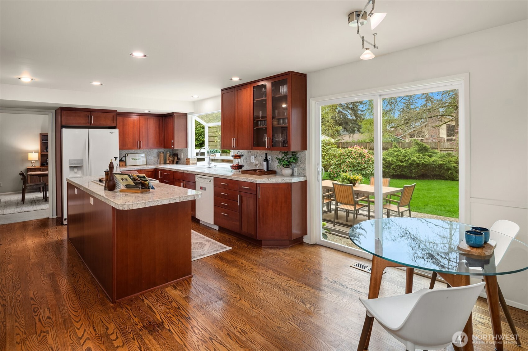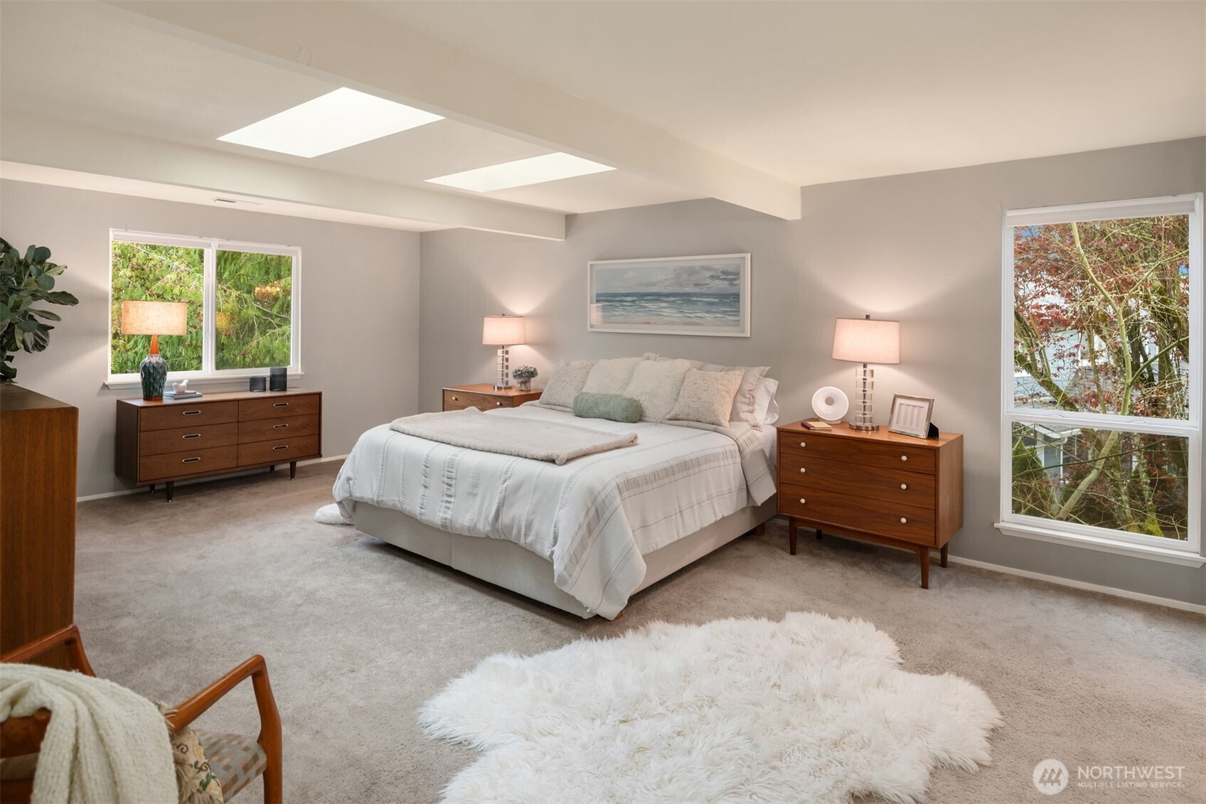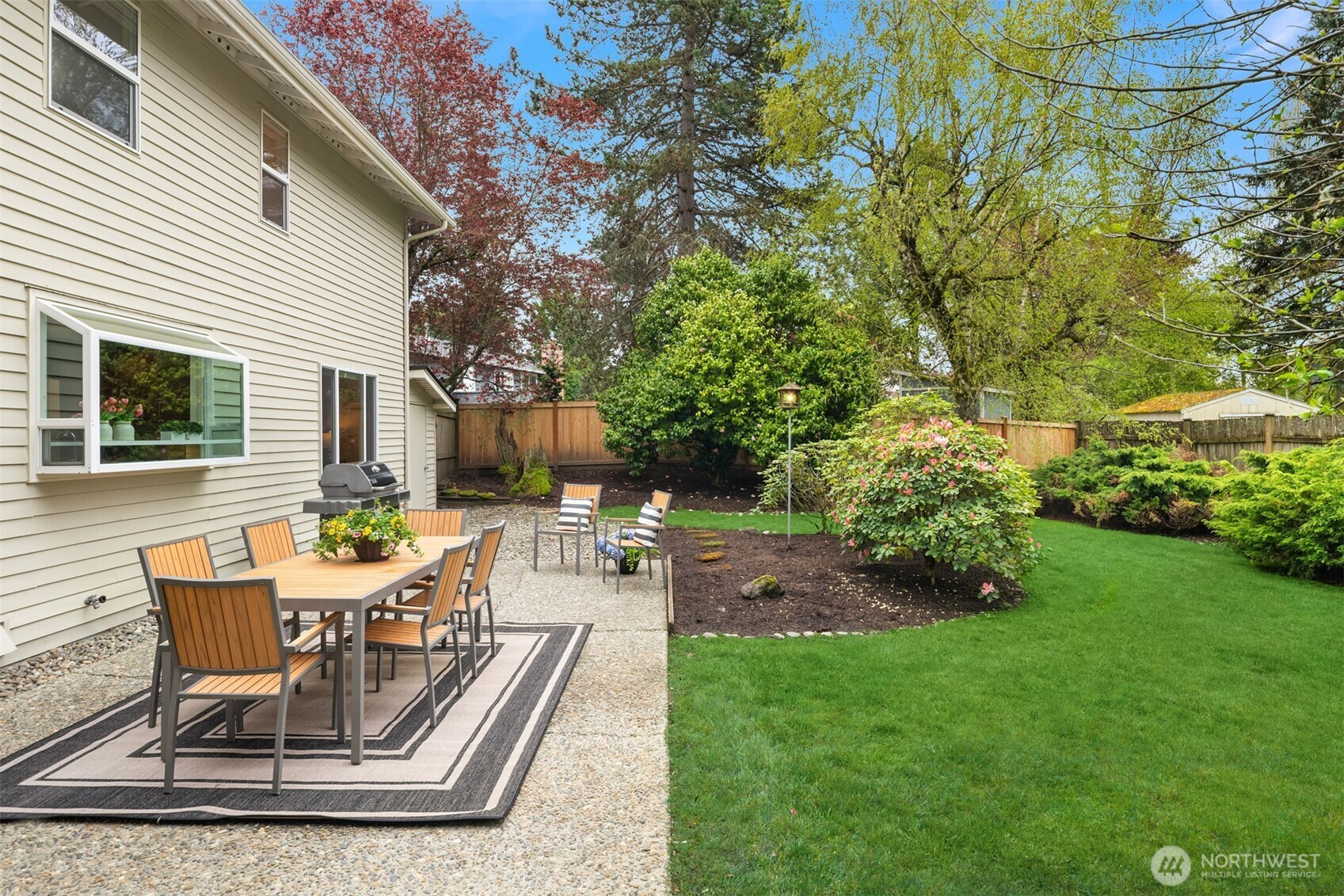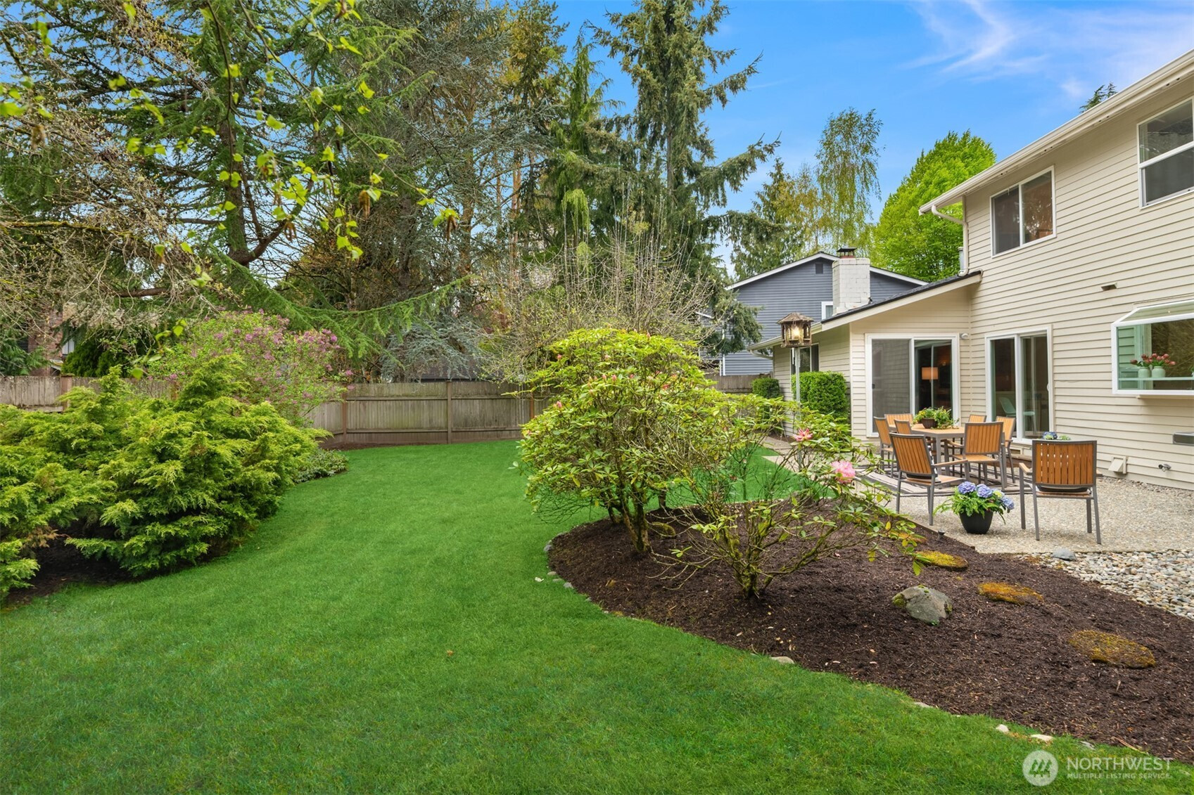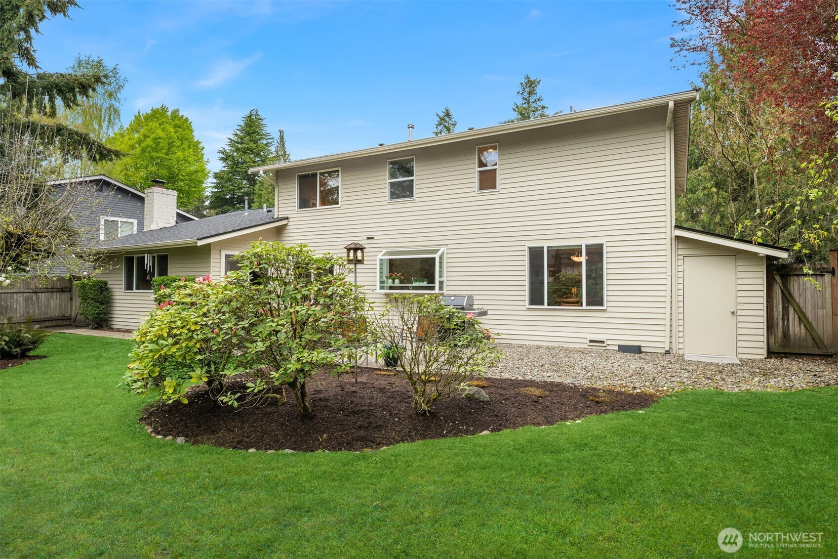 This beautifully updated 5-bedroom 3.25 bath, two-story classic in the heart of Kirkland's Finn Hill is well appointed with stylish comforts and room for all. Sited on a fully fenced 8,640 sq ft lot with serene outlooks, it's an oasis in the Hermosa Vista neighborhood. You'll love the natural light and desirable floorplan hosting a large culinary kitchen, spacious living, dining and family rooms. The expansive primary suite impresses with skylights, dual closets, and a private ensuite bath. Three additional inviting bedrooms complete the upper level, while the main floor features a spacious 5th bedroom or office with an adjacent ¾ bath and powder room. Enjoy the outdoors; a fully fenced yard, lovely patio and yard perfect for gathering and play. Convenient shed houses all your gardening needs. Recent upgrades include a brand-new roof, interior paint and lighting. Noteworthy's include; energy efficient heat pump heating, A/C, peek-a-boo Lake WA views, pull-down-stair garage storage and a third space driveway RV parking pad. Such a lovely friendly neighborhood to walk and take in the Lake Washington views. Convenient to shopping, schools, restaurants and coffee. Nearby to Denny, St Edward's and Juanita Beach parks. Highly rated Lake Washington schools. Preinspected + 1Yr Home Warranty. Welcome home!