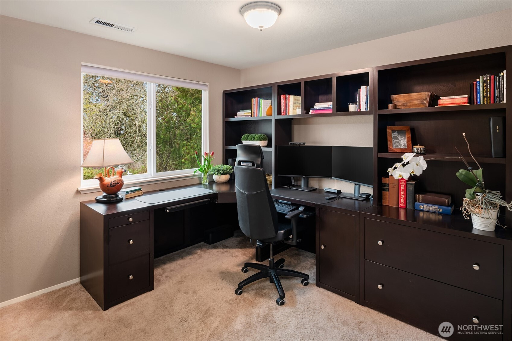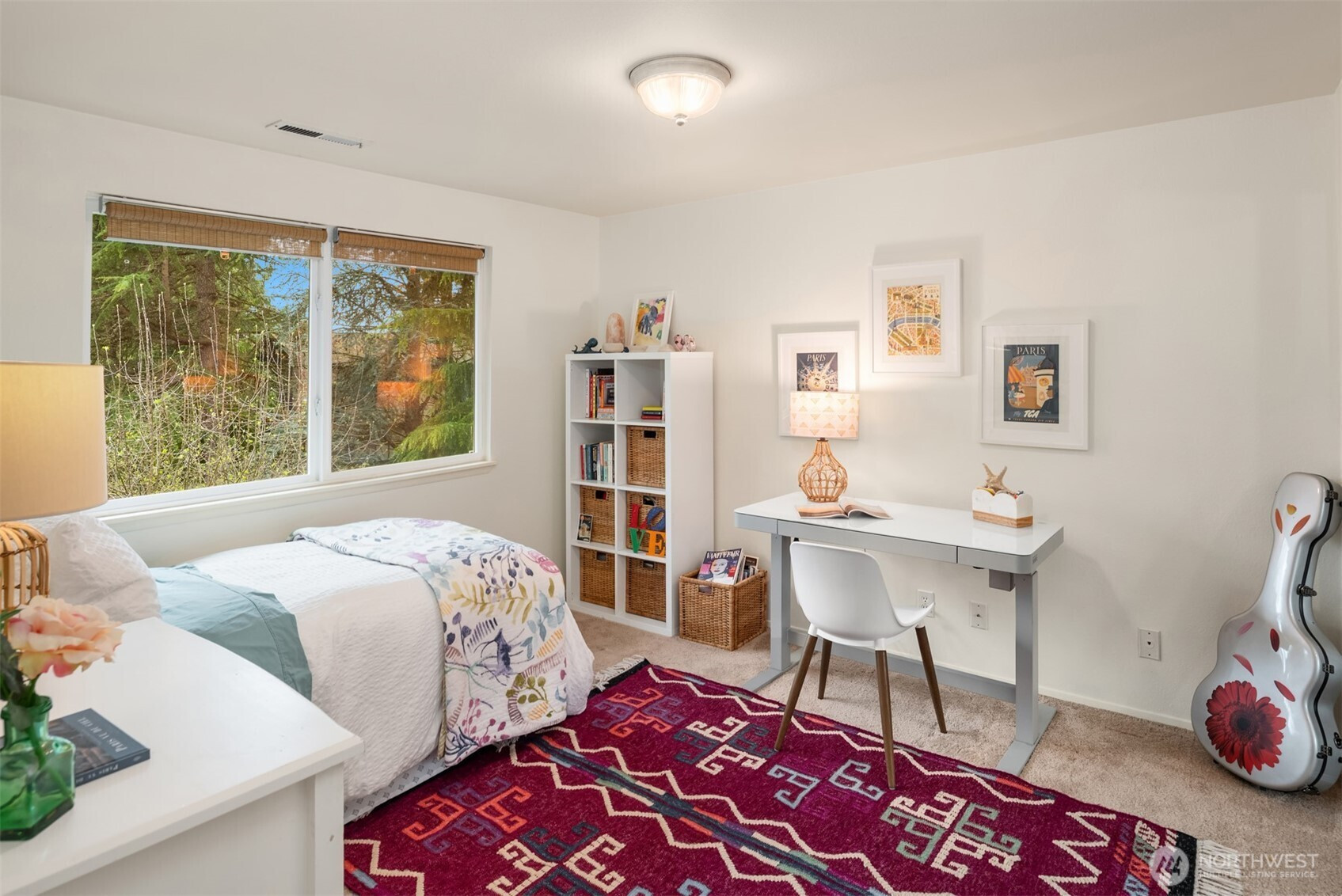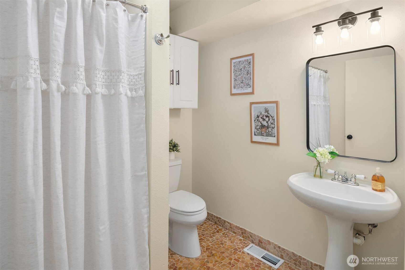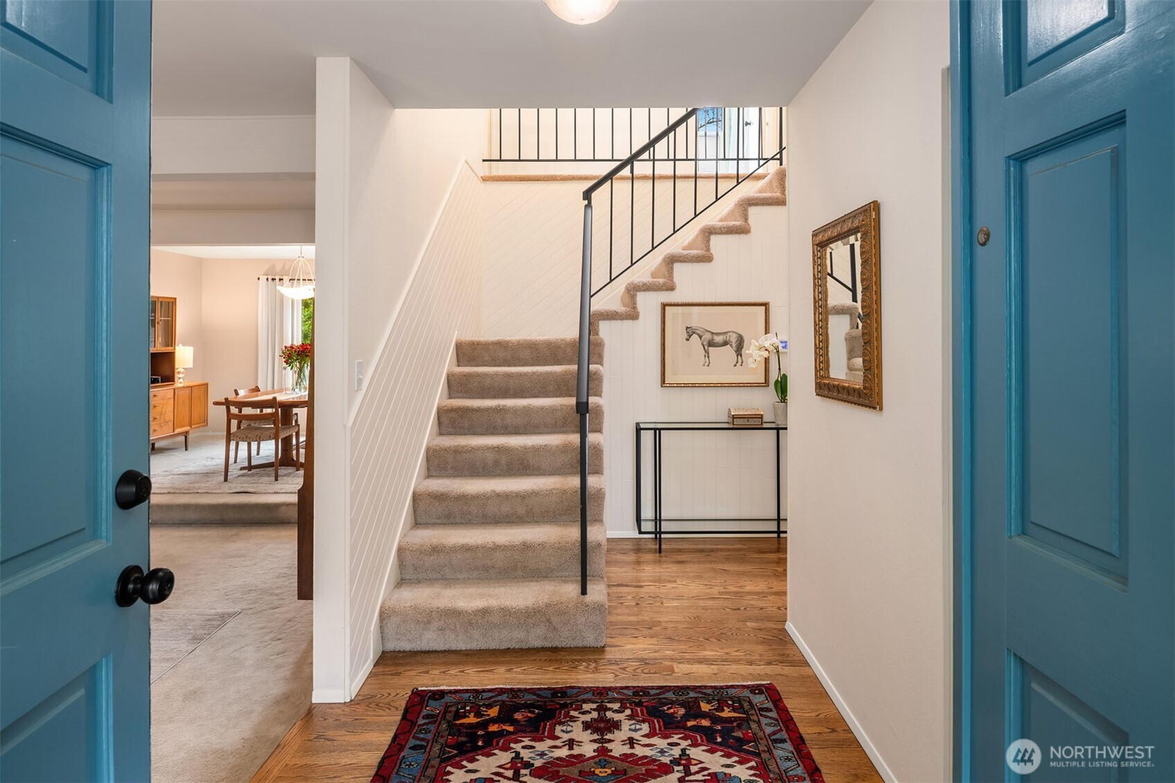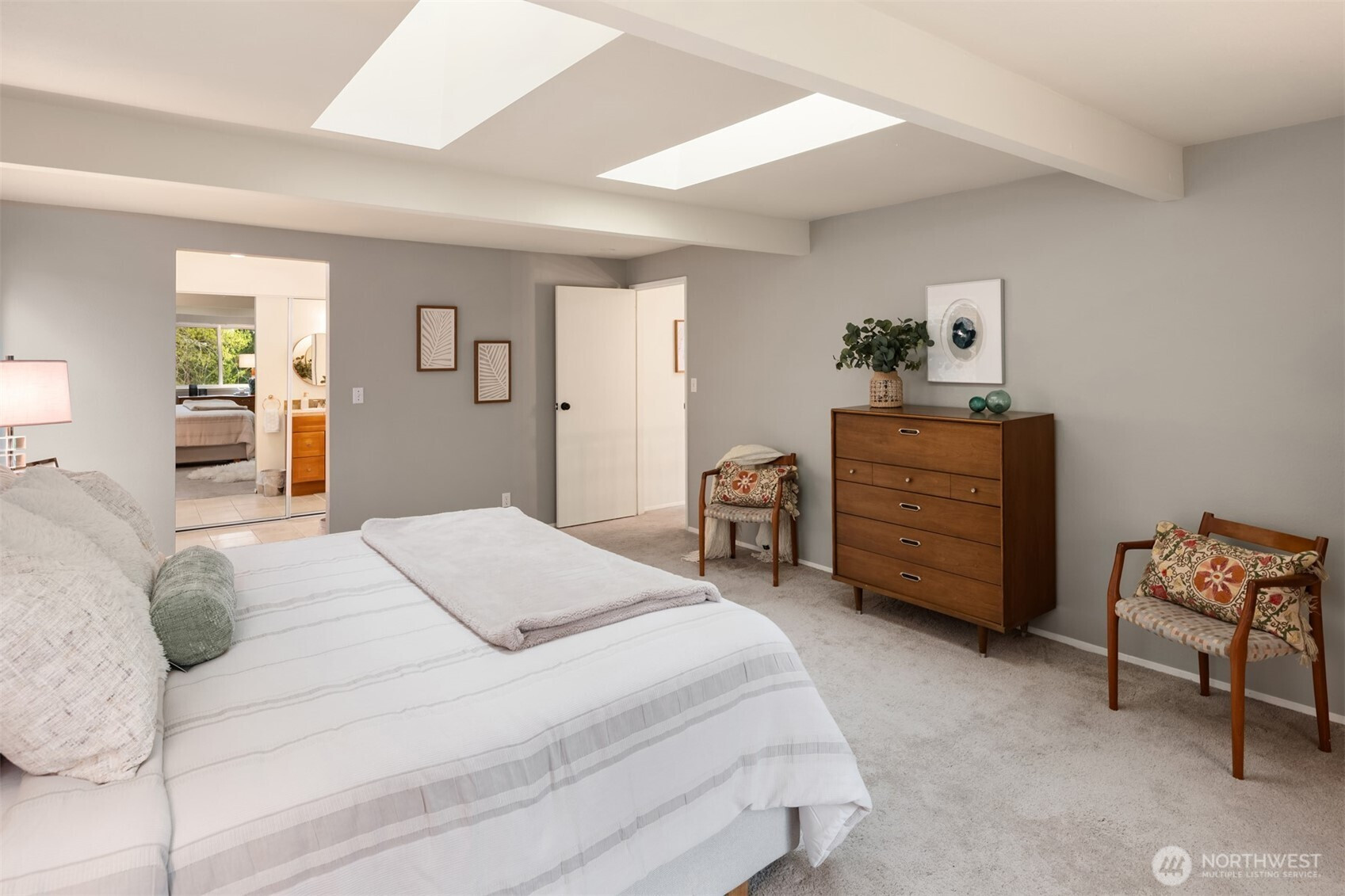This beautifully updated 5-bedroom 3.25 bath, two-story classic in the heart of Kirkland's Finn Hill is well appointed with stylish comforts and room for all. Sited on a fully fenced 8,640 sq ft lot with serene outlooks, it's an oasis in the Hermosa Vista neighborhood. You'll love the natural light and desirable floorplan hosting a large culinary kitchen, spacious living, dining and family rooms. The expansive primary suite impresses with skylights, dual closets, and a private ensuite bath. Three additional inviting bedrooms complete the upper level, while the main floor features a spacious 5th bedroom or office with an adjacent ¾ bath and powder room. Enjoy the outdoors; a fully fenced yard, lovely patio and yard perfect for gathering and play. Convenient shed houses all your gardening needs. Recent upgrades include a brand-new roof, interior paint and lighting. Noteworthy's include; energy efficient heat pump heating, A/C, peek-a-boo Lake WA views, pull-down-stair garage storage and a third space driveway RV parking pad. Such a lovely friendly neighborhood to walk and take in the Lake Washington views. Convenient to shopping, schools, restaurants and coffee. Nearby to Denny, St Edward's and Juanita Beach parks. Highly rated Lake Washington schools. Preinspected + 1Yr Home Warranty. Welcome home!