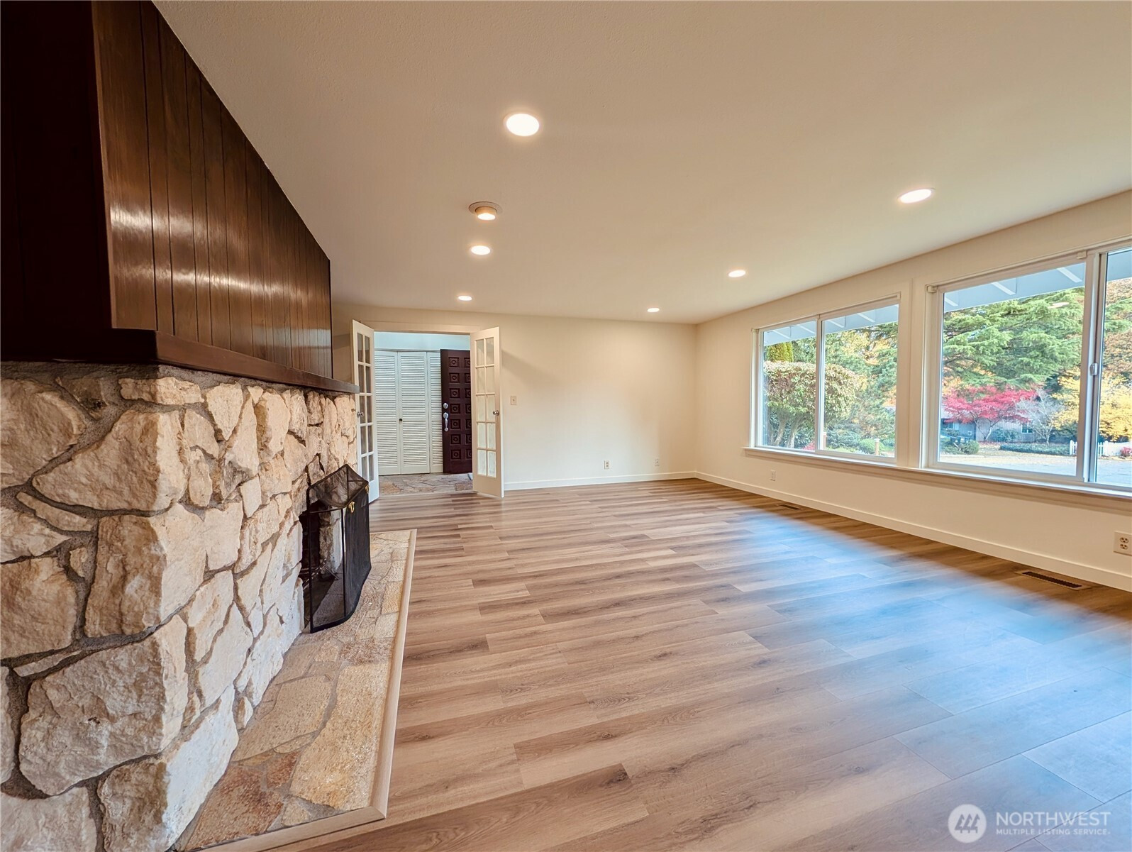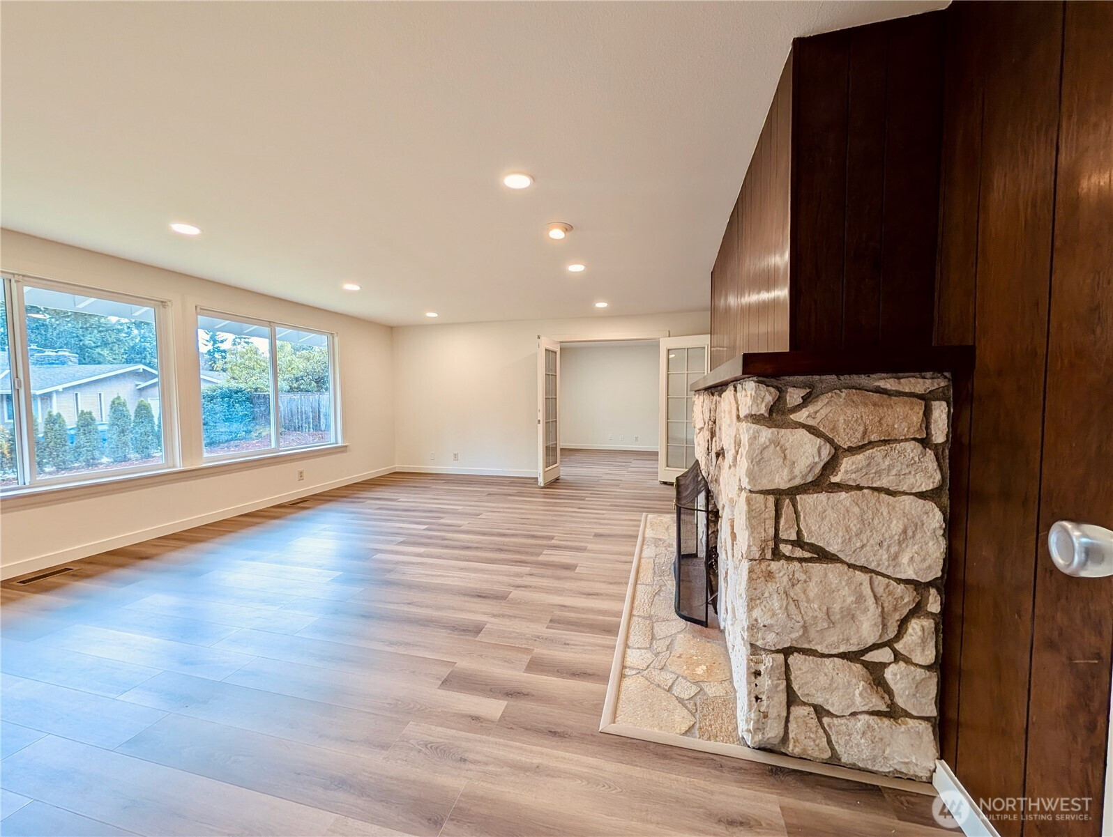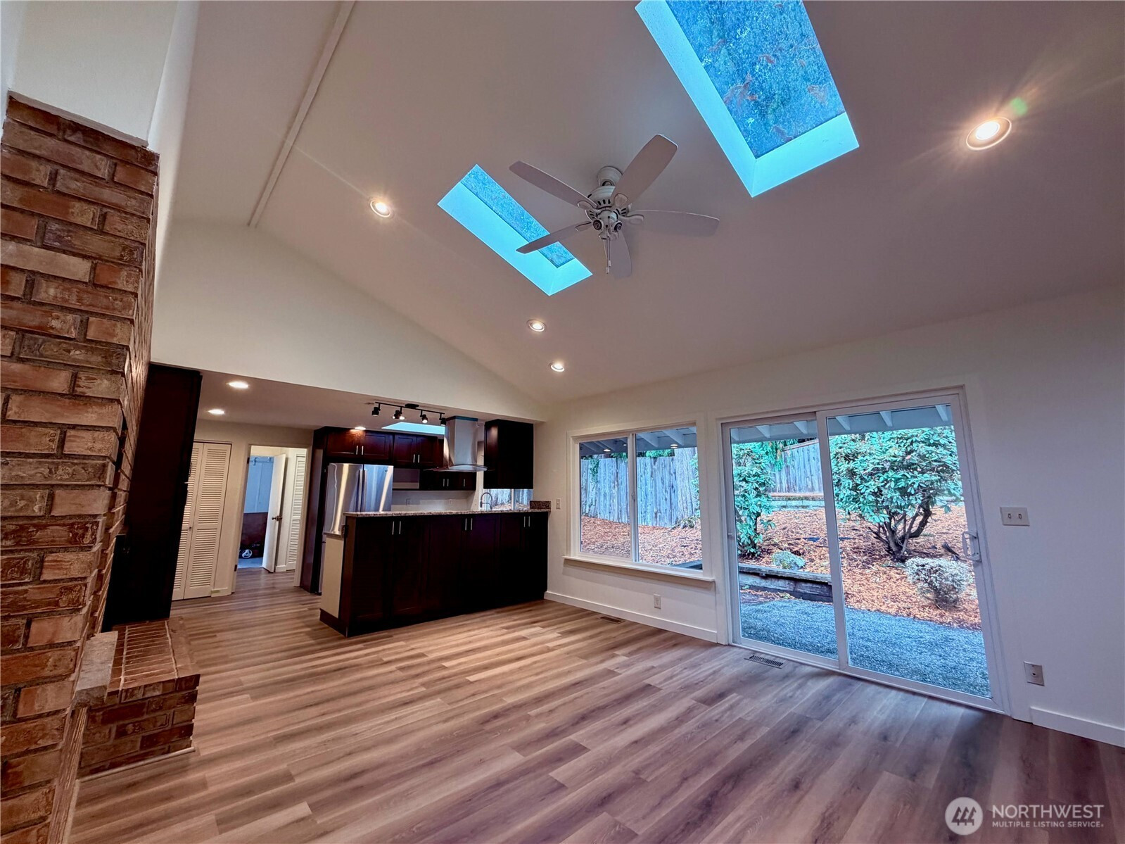 If you are looking for a home in Bellevue with a convenient location, ample off street parking, and multi-generational possibilities, then this listing is a must see! The tri-level design offers a family room, living room, and den/office on the main floor in addition to the kitchen, laundry room, and half bathroom. The wood burning fireplace features an indoor BBQ for those rainy days when grilling outside is not an option. The upper floor boasts the master bedroom with attached 3/4 bathroom and two additional bedrooms. The lower level has the forth bedroom and two additional finished rooms for your use as playrooms, additional family room, or a quiet sitting room with lots of natural light! The interior has new vinyl plank flooring, has been newly painted, and has all new kitchen appliances. The large lot provides an uncovered patio in the backyard with gardening areas, an ample front yard, and fencing on three sides.