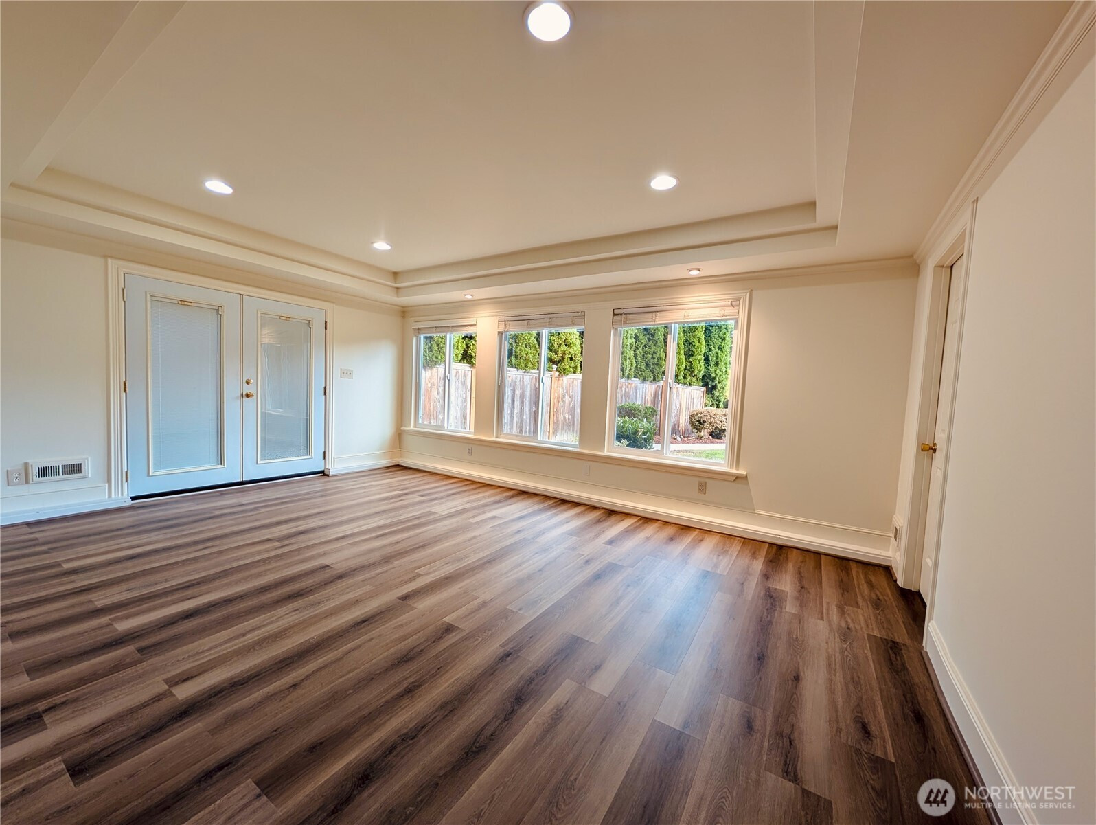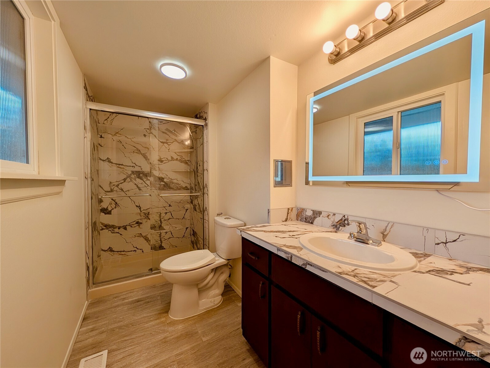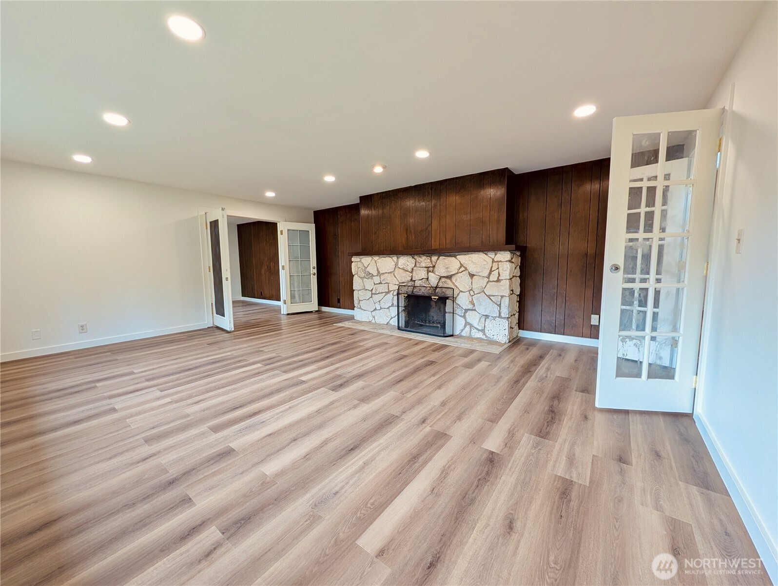 If you are looking for a home in Bellevue with a convenient location, ample off street parking, and multi-generational possibilities, then this listing is a must see! The tri-level design offers a family room, living room, and den/office on the main floor in addition to the kitchen, laundry room, and half bathroom. The wood burning fireplace features an indoor BBQ for those rainy days when grilling outside is not an option. The upper floor boasts the master bedroom with attached 3/4 bathroom and two additional bedrooms. The lower level has the forth bedroom and two additional finished rooms for your use as playrooms, additional family room, or a quiet sitting room with lots of natural light! The interior has new vinyl plank flooring, has been newly painted, and has all new kitchen appliances. The large lot provides an uncovered patio in the backyard with gardening areas, an ample front yard, and fencing on three sides.