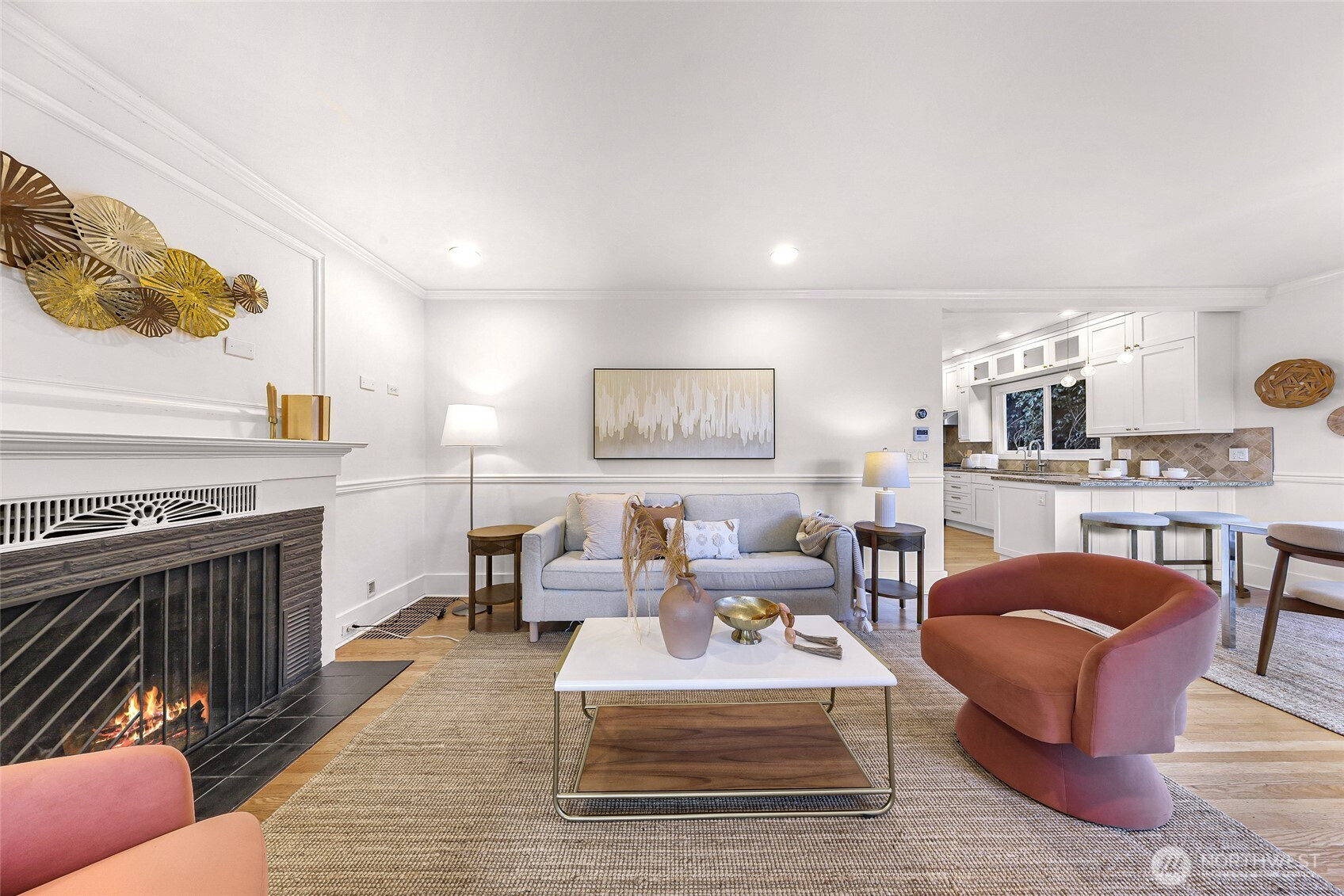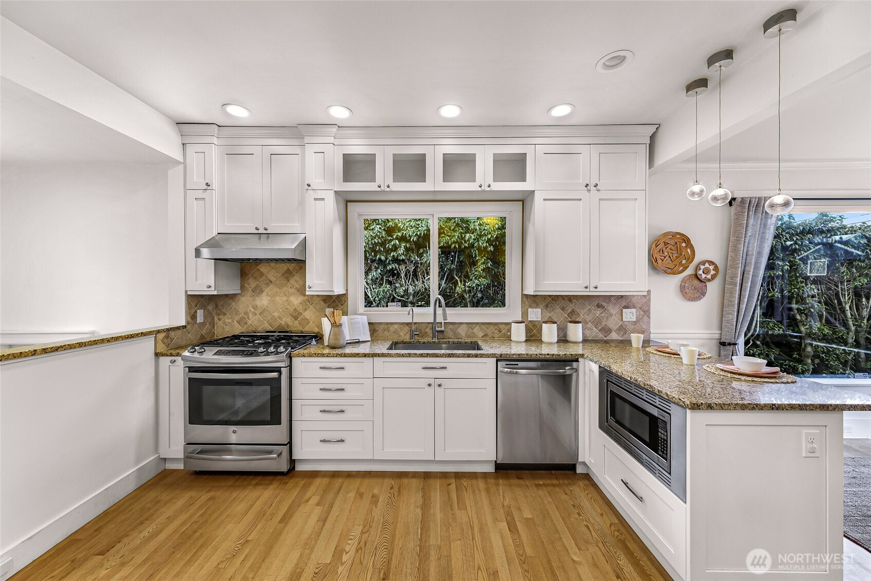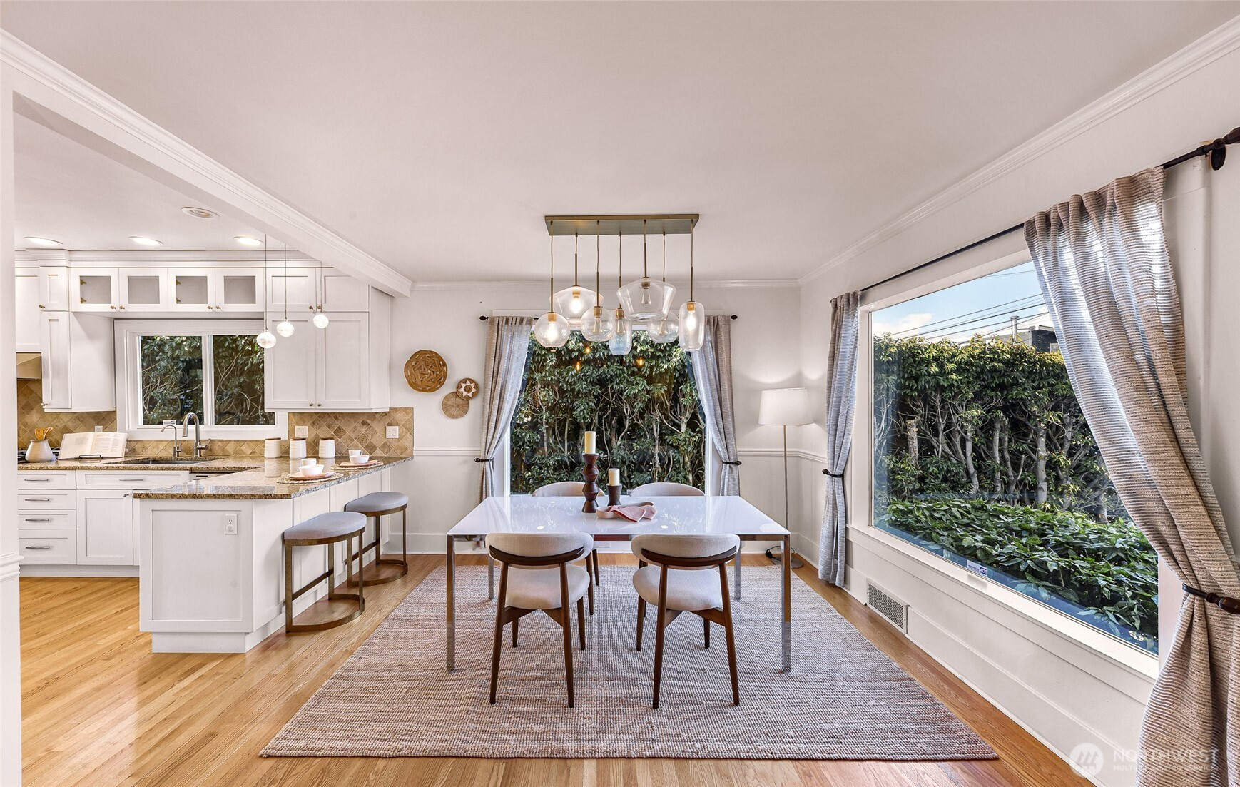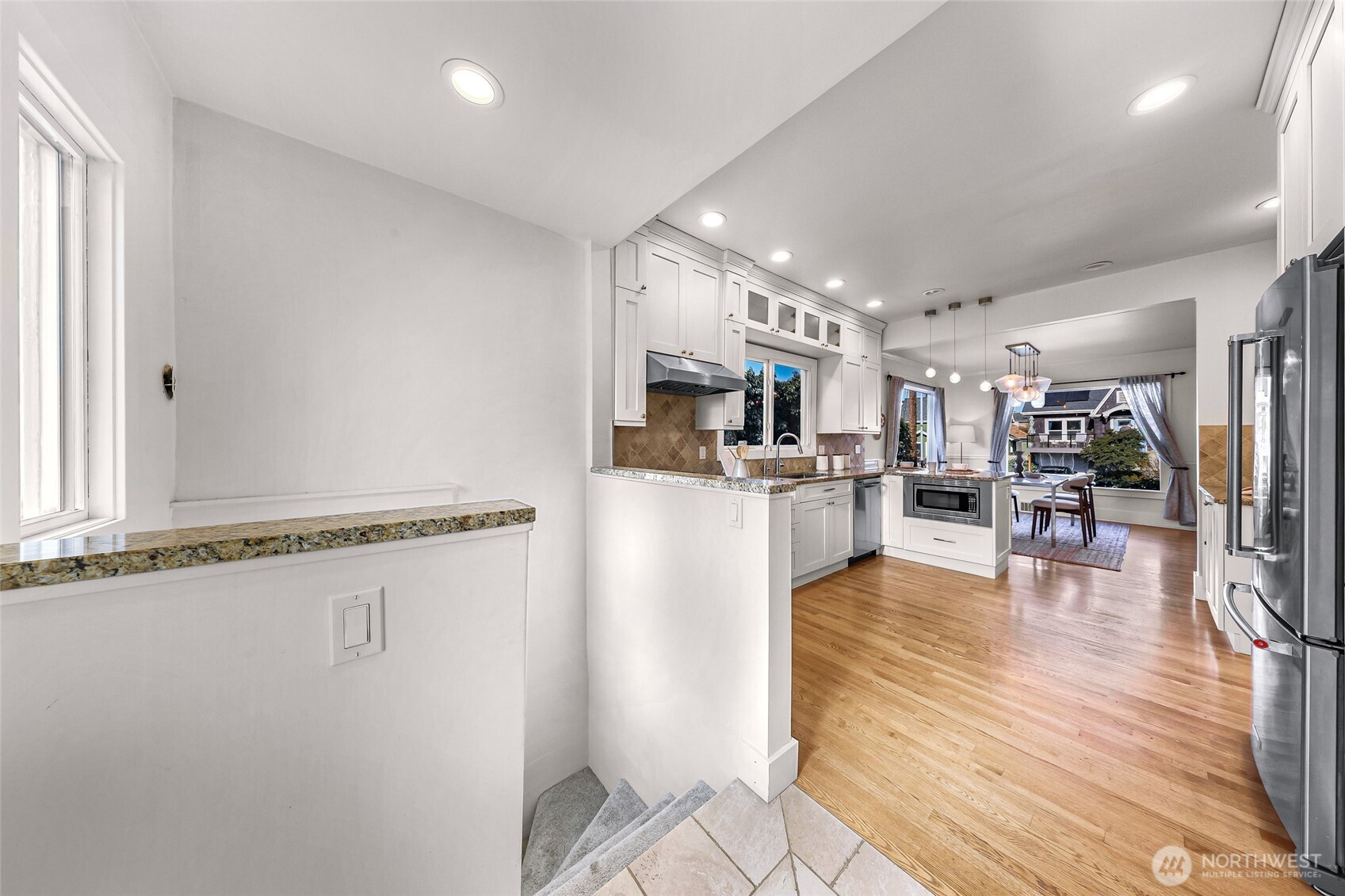 Beautifully updated 3-bedroom, 1.75-bath residence just blocks from Green Lake with easy access to Downtown Seattle, UW, major tech campuses, and SR-520. The open-concept main level is designed for both everyday comfort and effortless entertaining, featuring a cozy fireplace and a thoughtfully remodeled kitchen with stainless steel appliances, custom soft-close cabinetry, hardwood floors, instant hot water, and a gas tankless water heater. The spacious primary suite offers a spa-inspired ensuite with walk-in shower, dual shower heads, heated towel rack, and custom California Closets. A fully finished lower level provides exceptional flexibility with additional bedrooms, bath, and family/media space—ideal for guests or remote work. Recent renovations elevate both form and function, including a newly rebuilt expansive deck and patio that enhance seamless indoor-outdoor living in the private, gated backyard—complete with covered storage below for tools and seasonal items. The front entry stairs and exterior paint have also been recently updated, enhancing overall curb appeal, while the now insulated and heated garage has been transformed into a versatile flex space, ideal for a private office, fitness studio, or creative retreat.