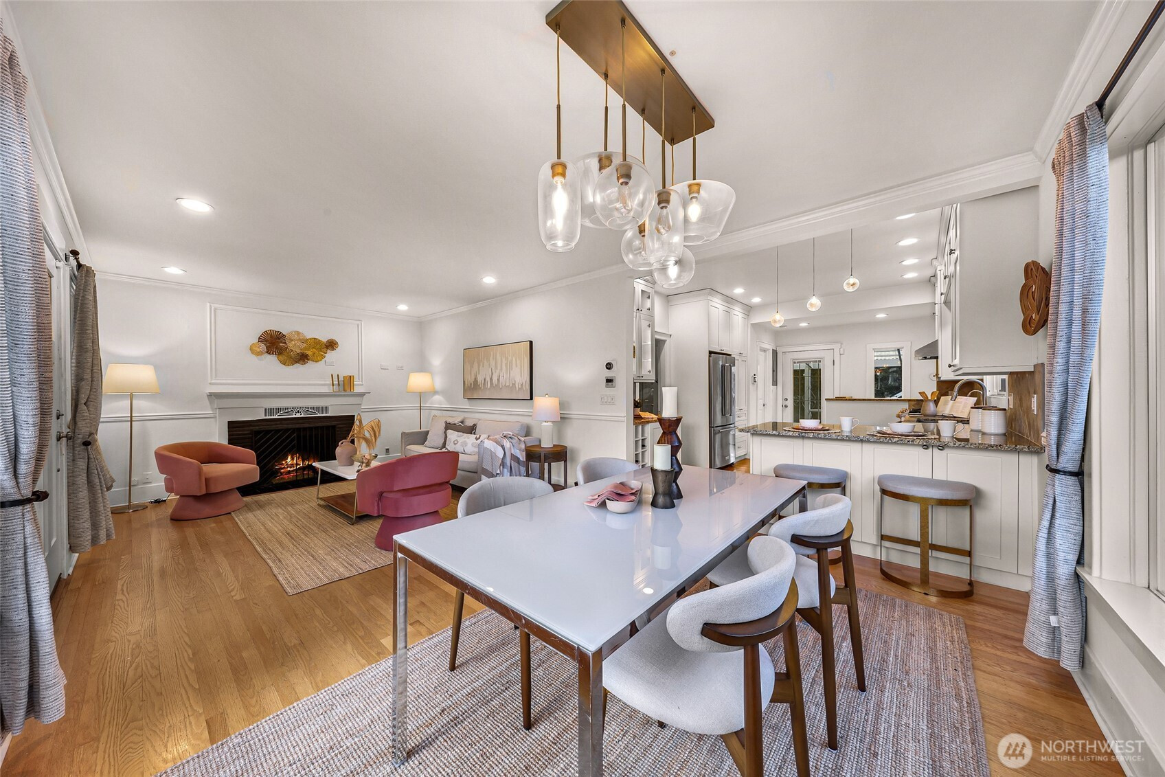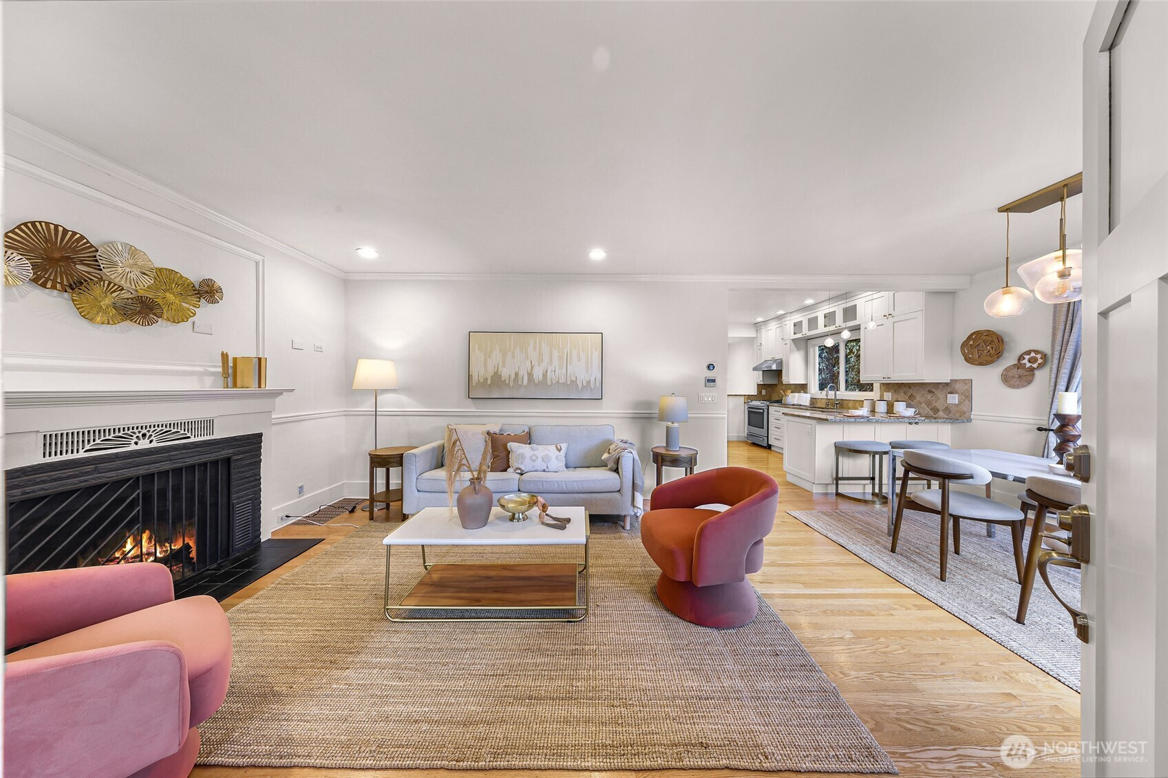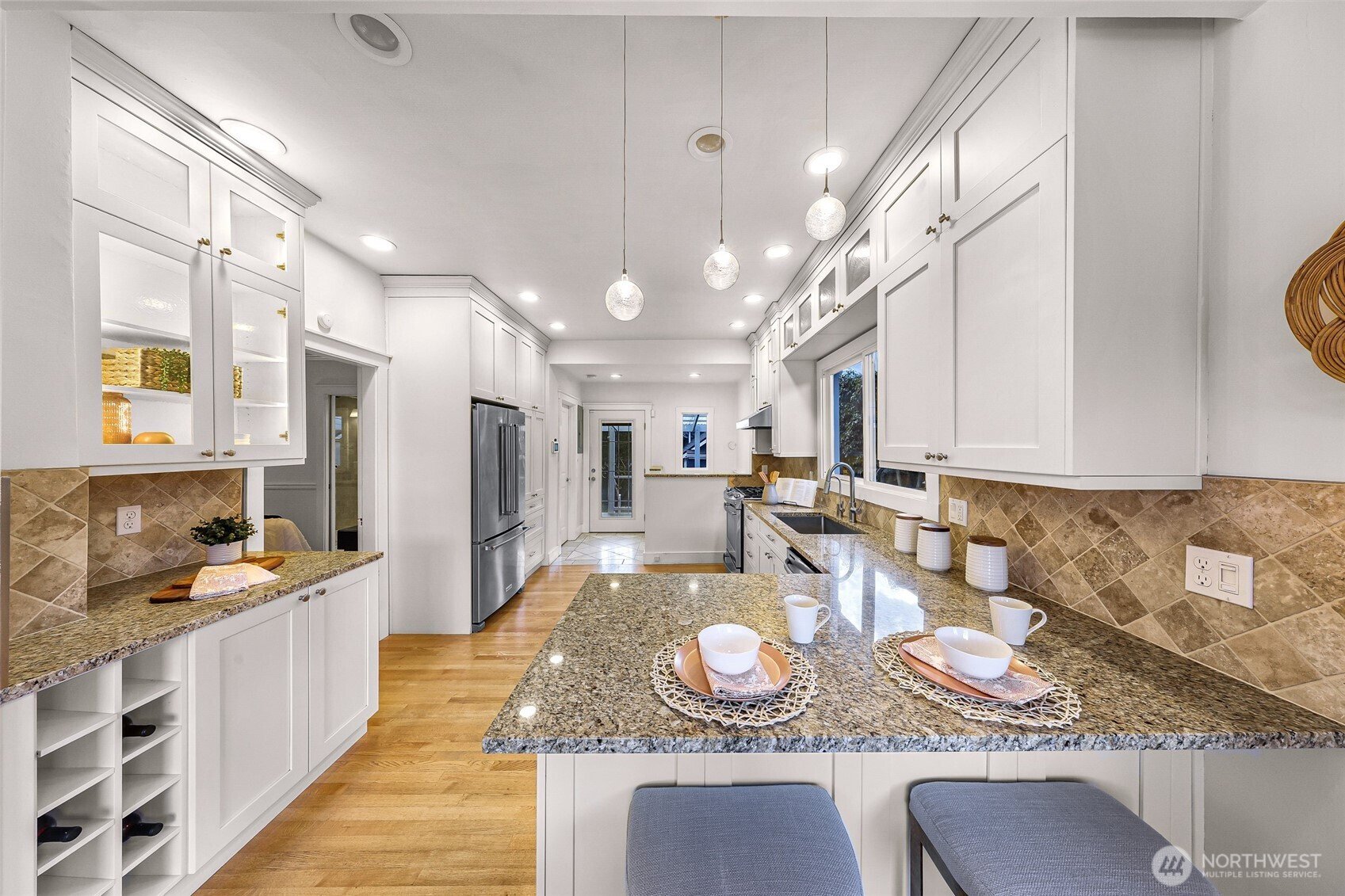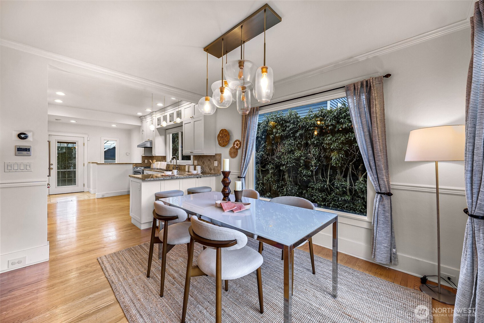 Beautifully updated 3-bedroom, 1.75-bath residence just blocks from Green Lake with easy access to Downtown Seattle, UW, major tech campuses, and SR-520. The open-concept main level is designed for both everyday comfort and effortless entertaining, featuring a cozy fireplace and a thoughtfully remodeled kitchen with stainless steel appliances, custom soft-close cabinetry, hardwood floors, instant hot water, and a gas tankless water heater. The spacious primary suite offers a spa-inspired ensuite with walk-in shower, dual shower heads, heated towel rack, and custom California Closets. A fully finished lower level provides exceptional flexibility with additional bedrooms, bath, and family/media space—ideal for guests or remote work. Recent renovations elevate both form and function, including a newly rebuilt expansive deck and patio that enhance seamless indoor-outdoor living in the private, gated backyard—complete with covered storage below for tools and seasonal items. The front entry stairs and exterior paint have also been recently updated, enhancing overall curb appeal, while the now insulated and heated garage has been transformed into a versatile flex space, ideal for a private office, fitness studio, or creative retreat.