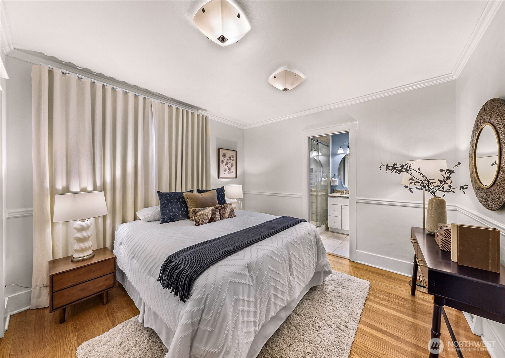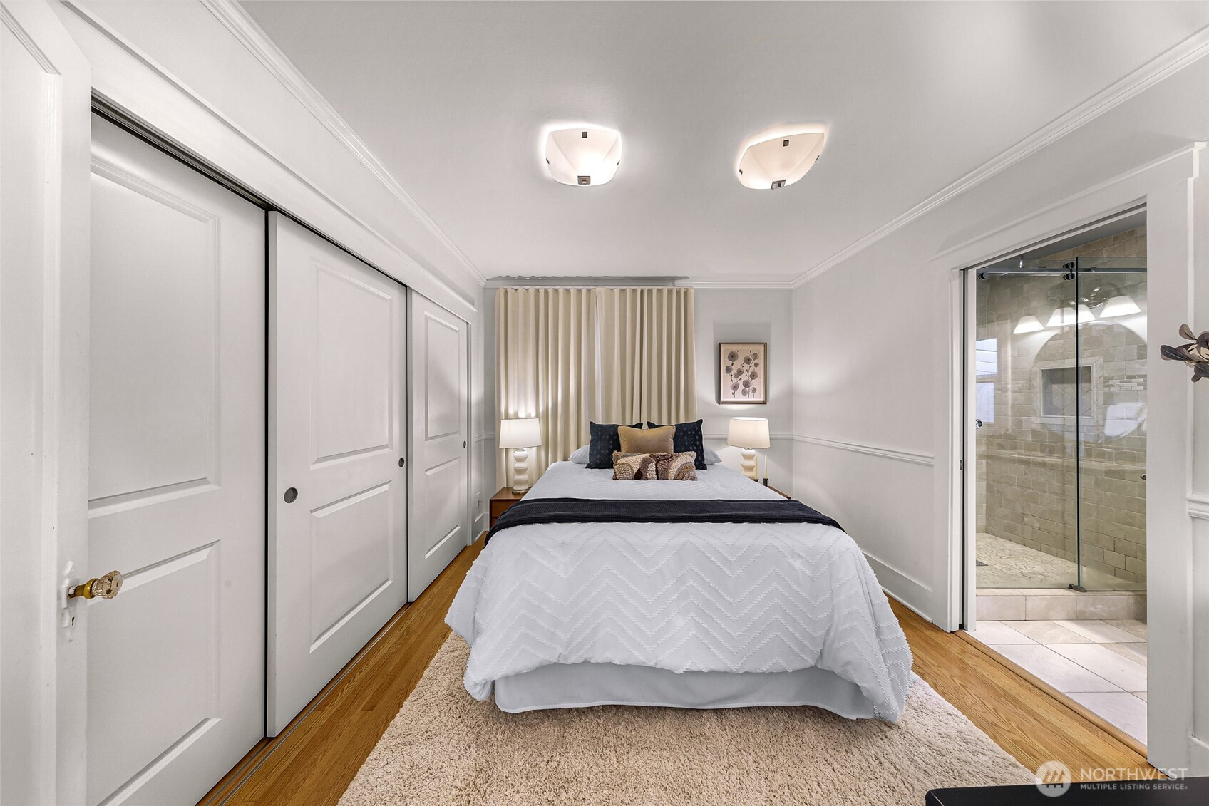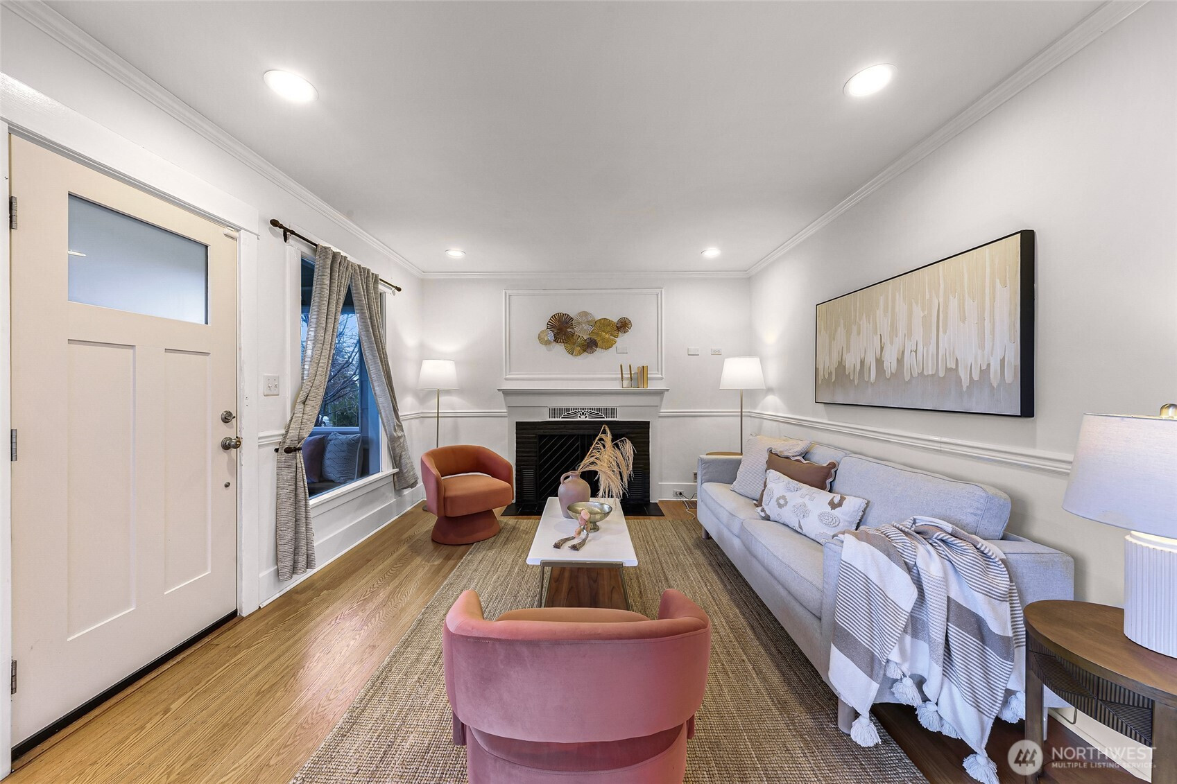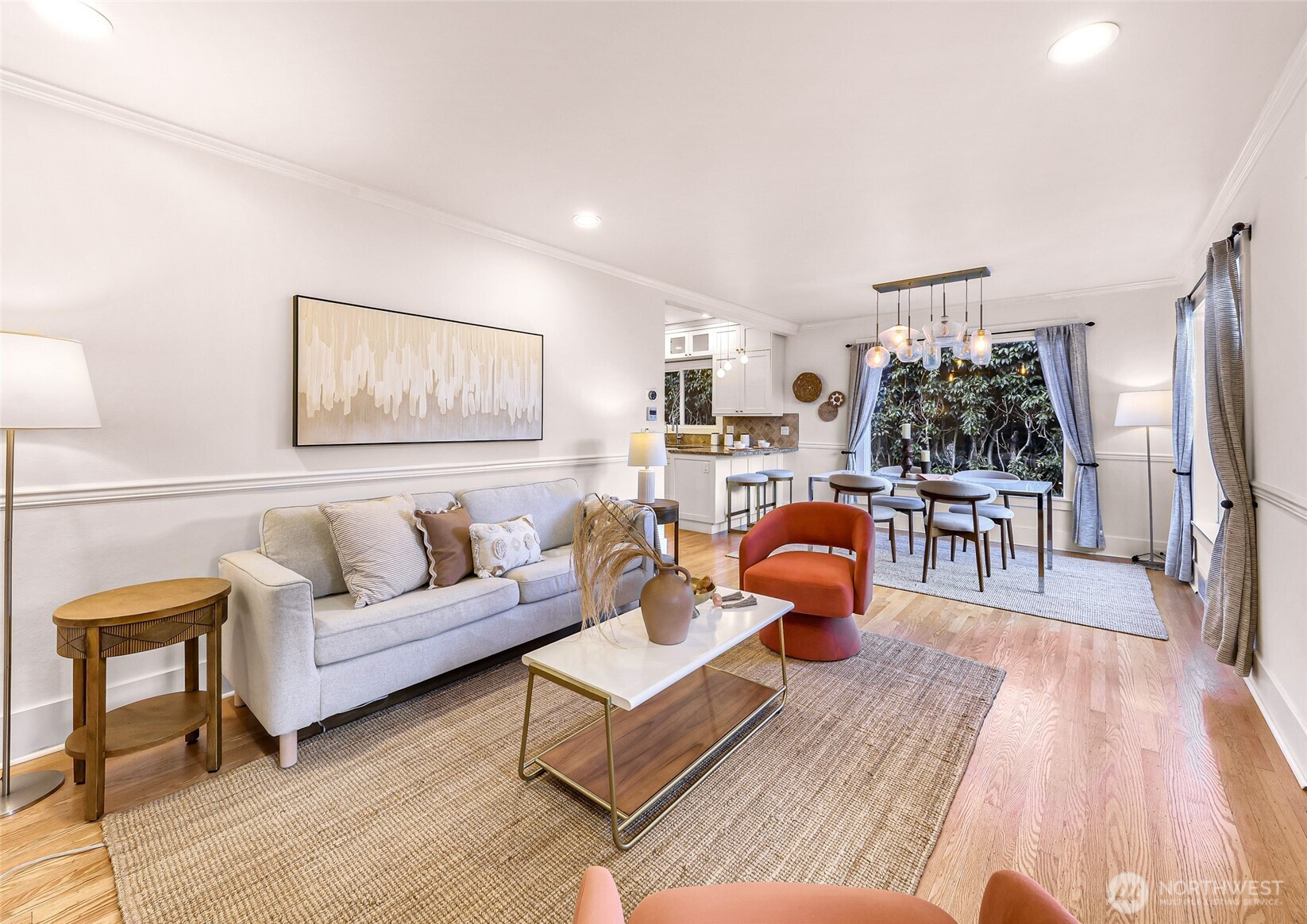 Beautifully updated 3-bedroom, 1.75-bath residence just blocks from Green Lake with easy access to Downtown Seattle, UW, major tech campuses, and SR-520. The open-concept main level is designed for both everyday comfort and effortless entertaining, featuring a cozy fireplace and a thoughtfully remodeled kitchen with stainless steel appliances, custom soft-close cabinetry, hardwood floors, instant hot water, and a gas tankless water heater. The spacious primary suite offers a spa-inspired ensuite with walk-in shower, dual shower heads, heated towel rack, and custom California Closets. A fully finished lower level provides exceptional flexibility with additional bedrooms, bath, and family/media space—ideal for guests or remote work. Recent renovations elevate both form and function, including a newly rebuilt expansive deck and patio that enhance seamless indoor-outdoor living in the private, gated backyard—complete with covered storage below for tools and seasonal items. The front entry stairs and exterior paint have also been recently updated, enhancing overall curb appeal, while the now insulated and heated garage has been transformed into a versatile flex space, ideal for a private office, fitness studio, or creative retreat.