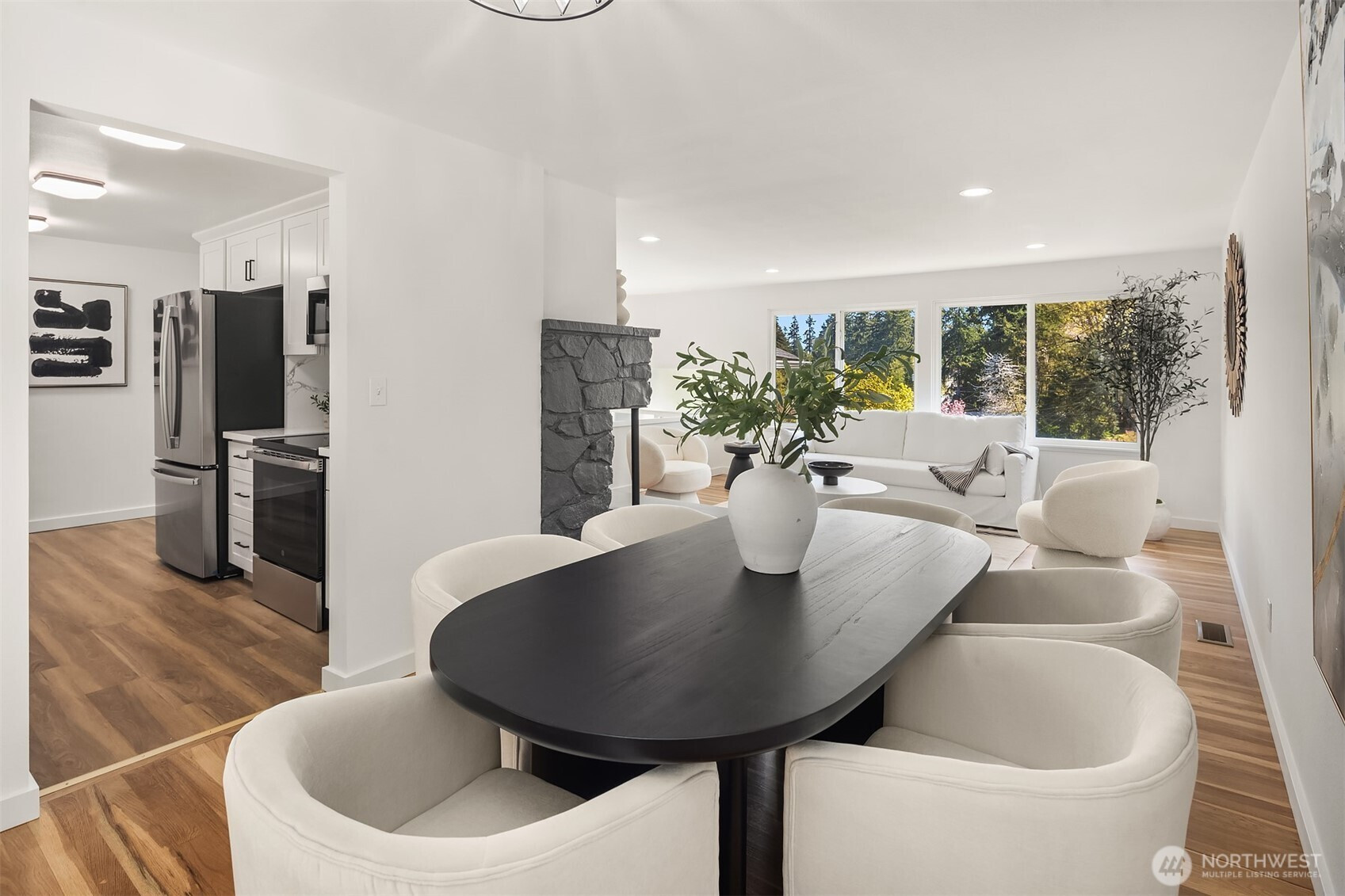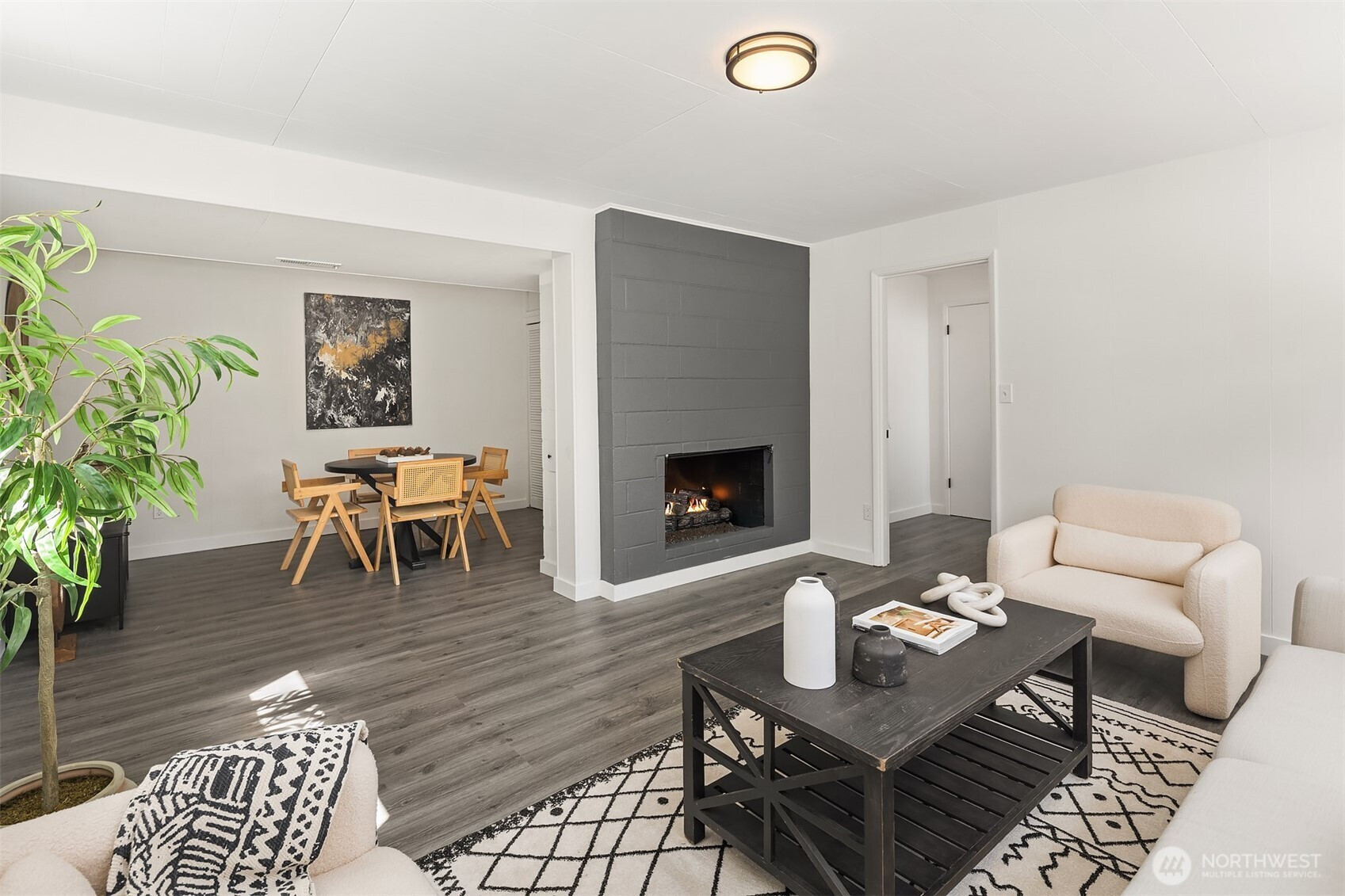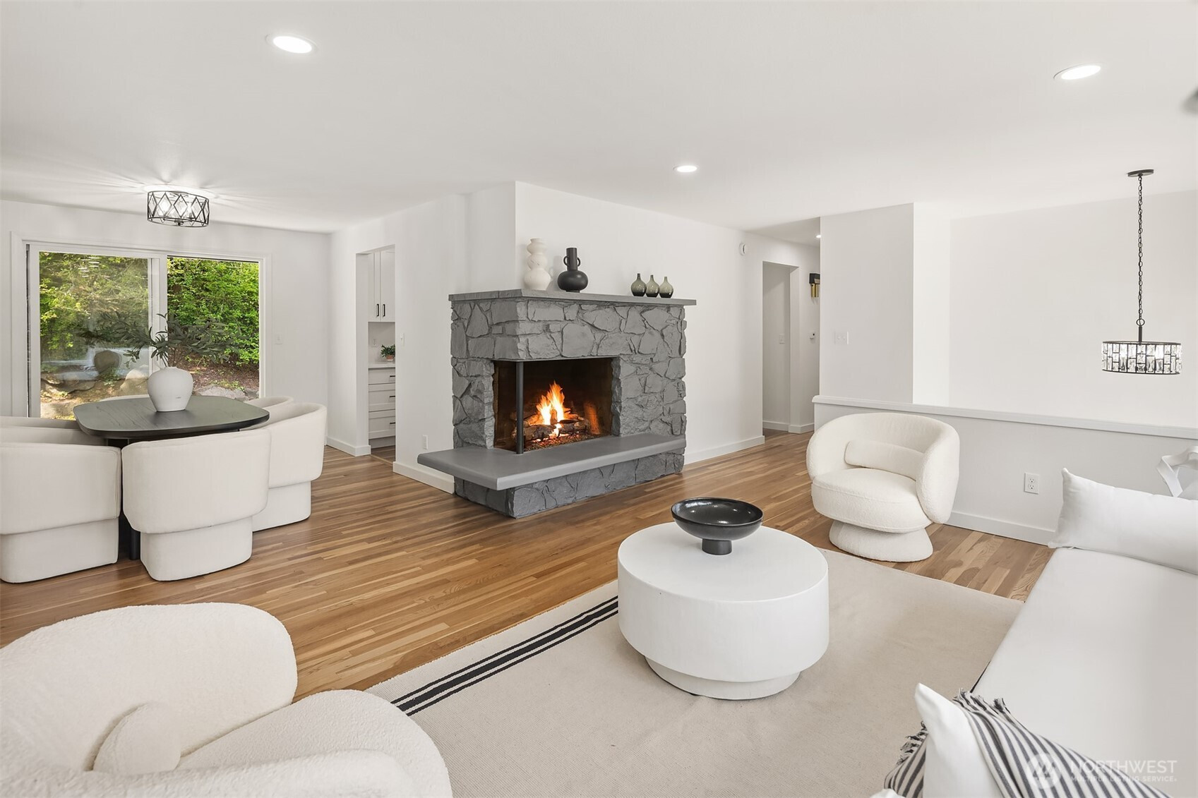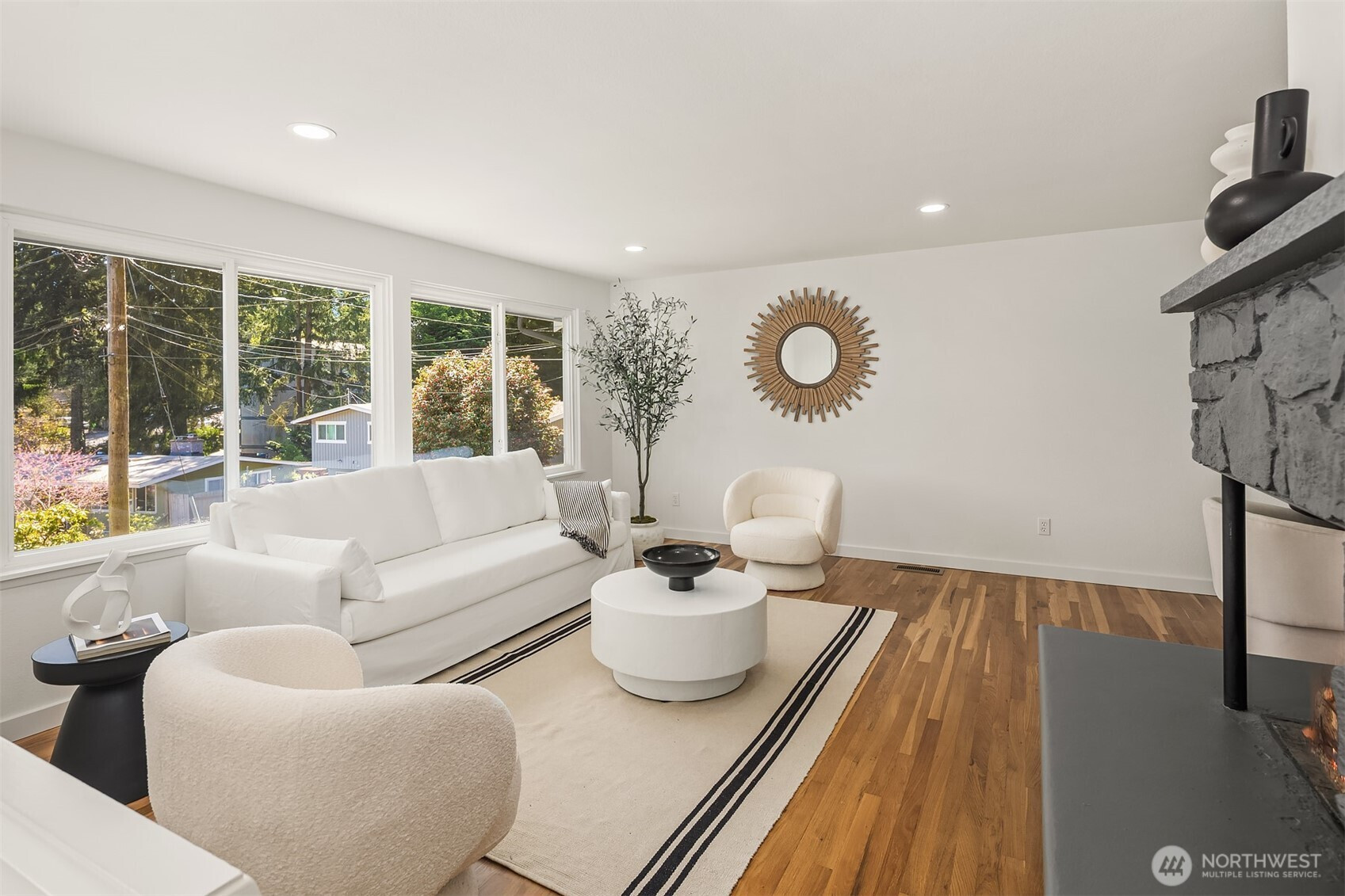 Tucked away on a quiet cul-de-sac at vibrant border of Seattle & Shoreline, this beautifully renovated residence offers a true turn-key living. Step inside to a light-filled interior where every detail has been meticulously curated. Brand new kitchen w/timeless white shaker cabinetry, quartz countertops, farmhouse sink & SS appliances. All bathrooms are tastefully remodeled w/designer finishes. Sunlit living room w/fireplace, 3 spacious bedrooms & rec room on lower level w/2nd fireplace. Additional recent upgrades include, newly refinished hardwood floors, new LVP flooring, new interior & exterior paint, gas furnace (2024), newer roof. Sought-after Shoreline SD. Minutes away from LR station & highways. Close to all amenities. Pre-inspected!
