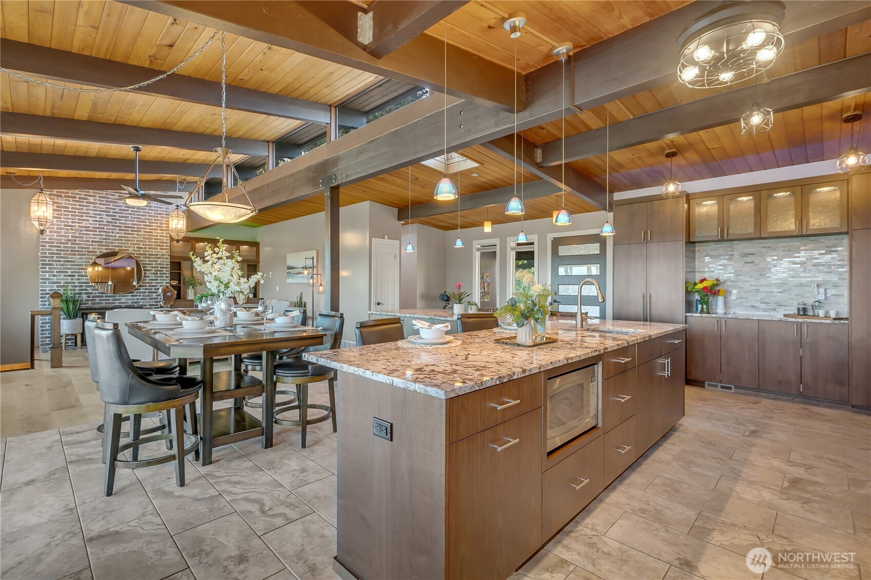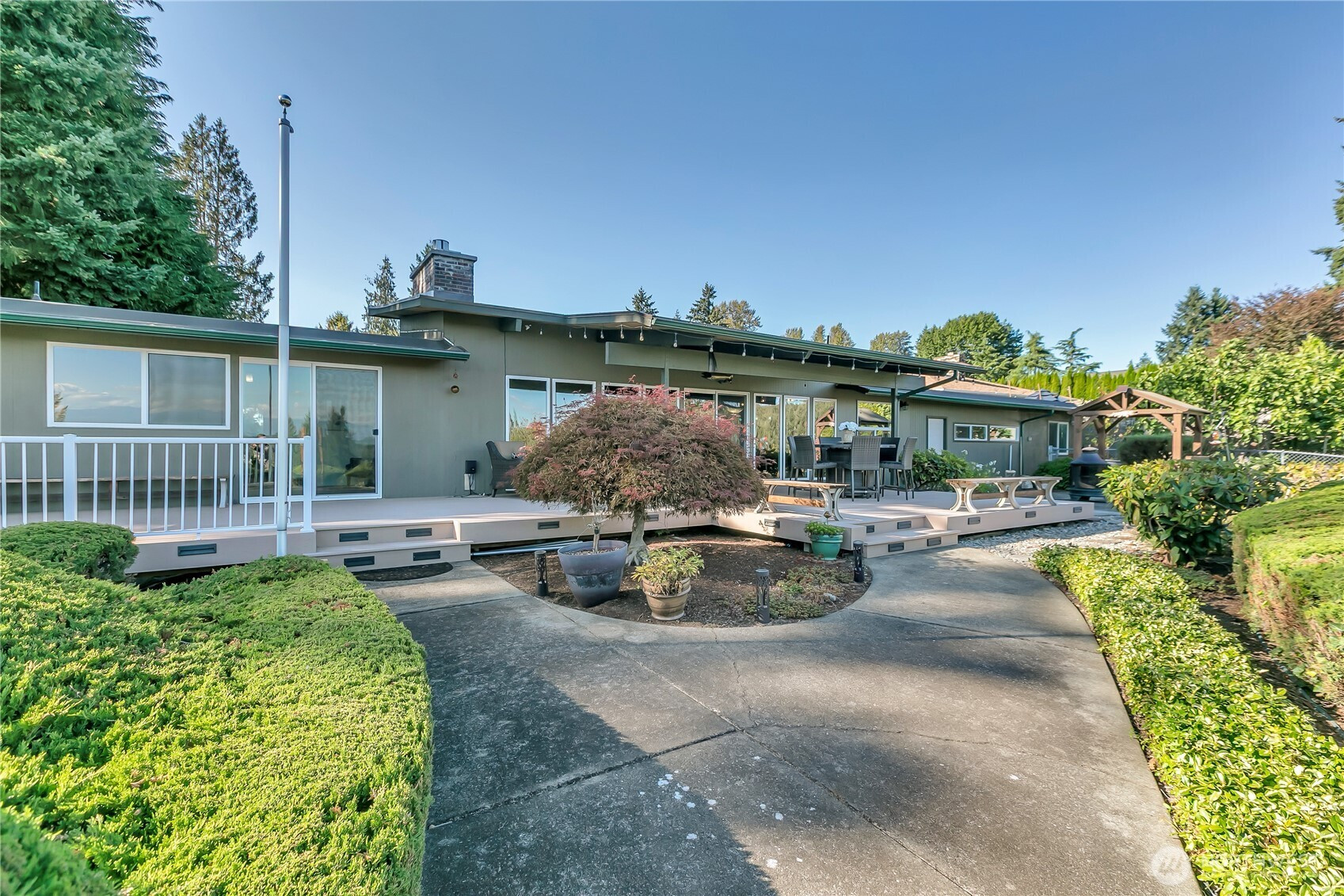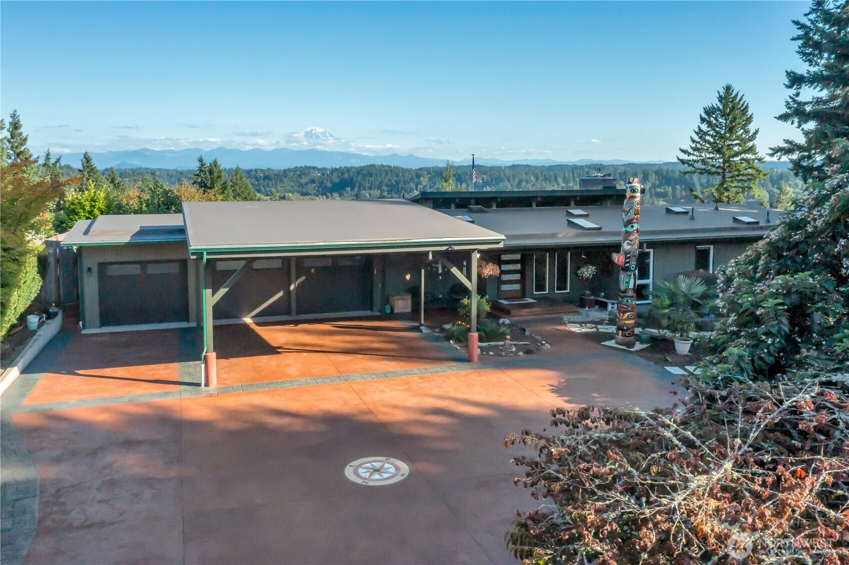 This one-of-a-kind home is the epitome of our NW lifestyle. Welcome to this exquisite mid-century modern luxury rambler offering a perfect balance of timeless design & modern upgrades. Panoramic Mt. Rainier foothills to peak view, Green Valley vistas across the sky from the expansive deck & backyard oasis. One level living w/quality finishes & upgrades. Bonus room/large bedroom downstairs designed for home theater. From new doors, new floors to the completely renovated bathrooms, quality & craftsmanship shine through in every space. Includes a new roof, repiped water lines, a sewer connection ensuring peace of mind. Dream 3-car garage with newly epoxied floors, gorgeous stamped concrete driveway, RV parking & designer carport. Pre-Inspected